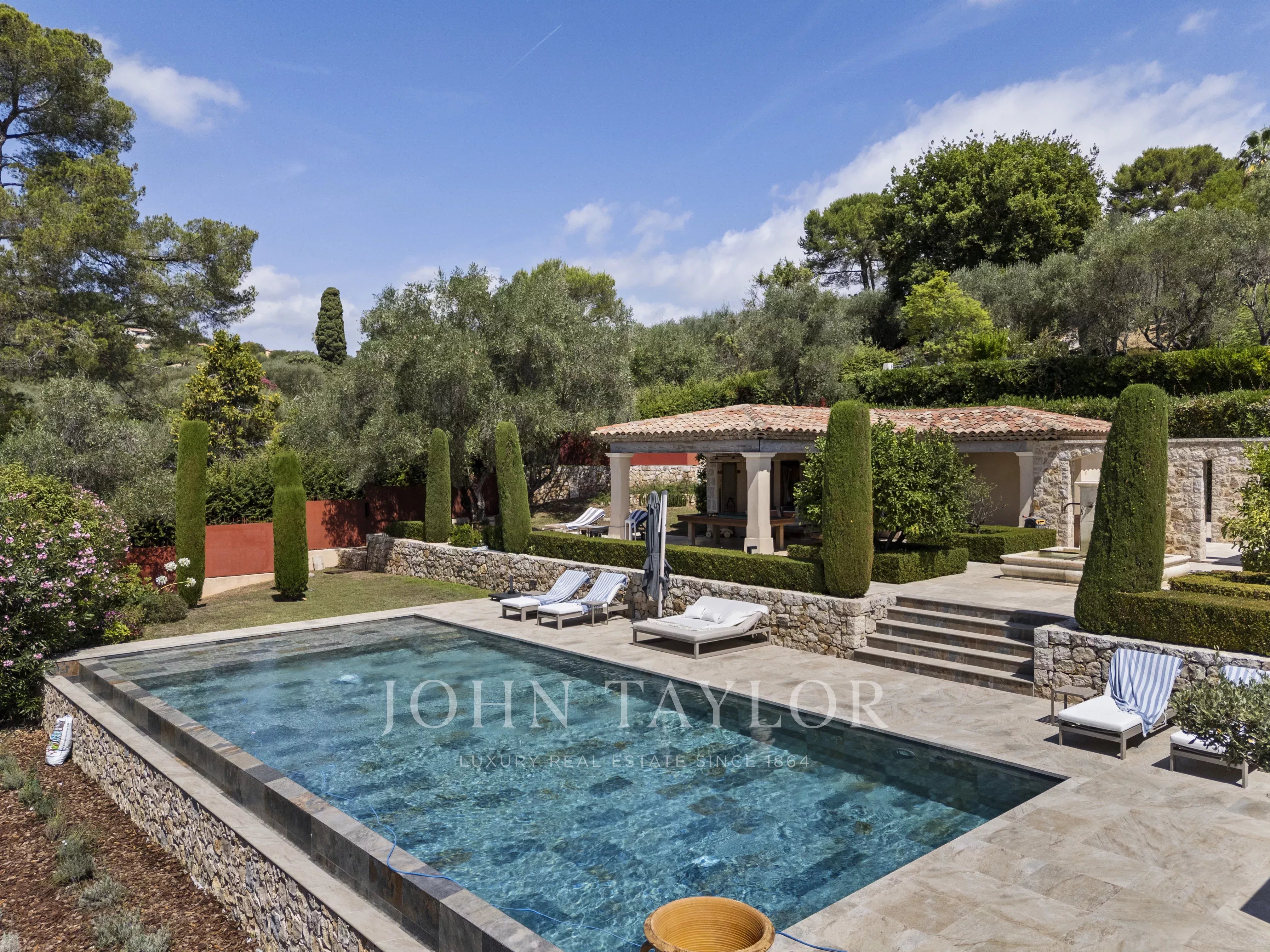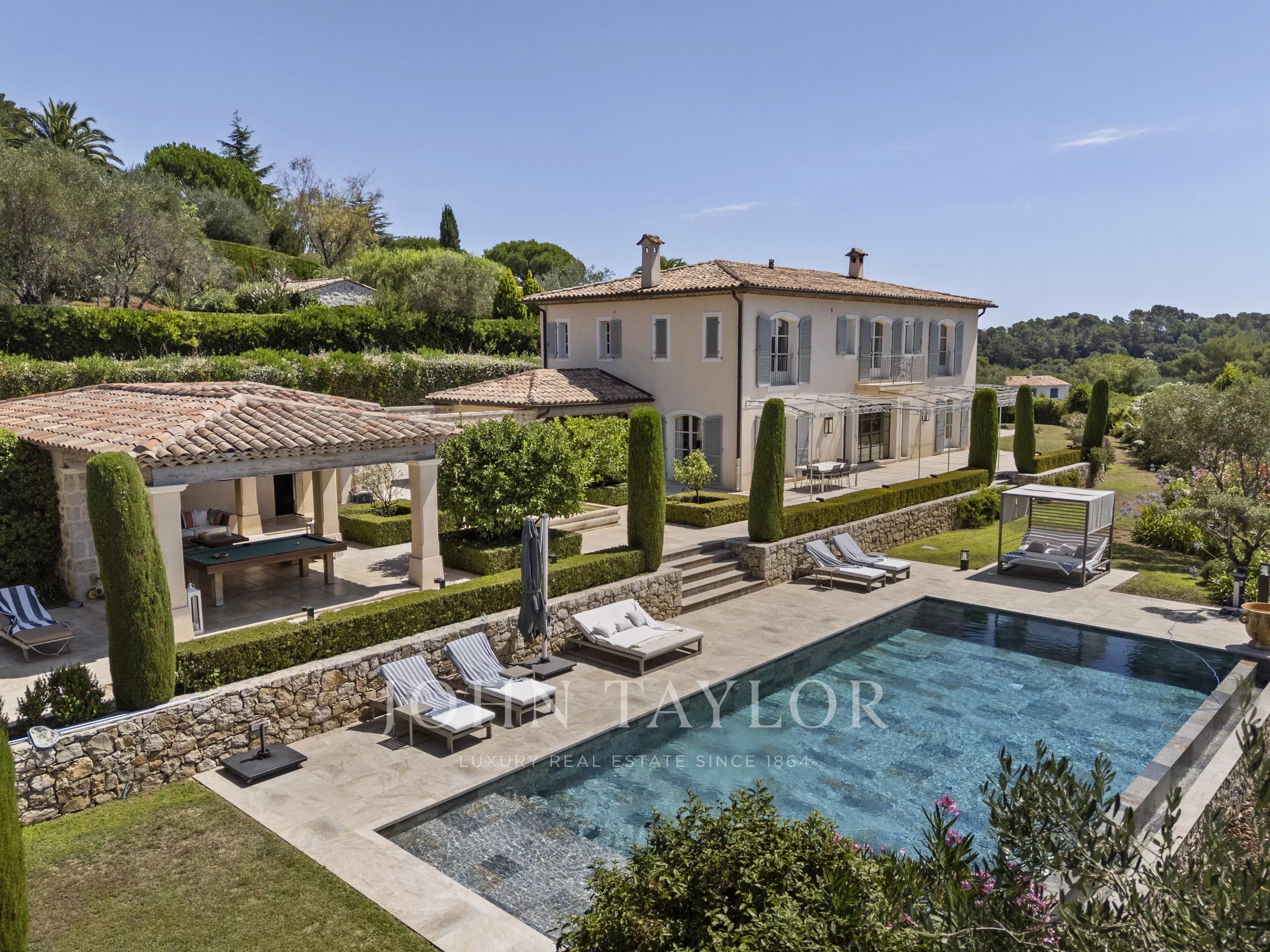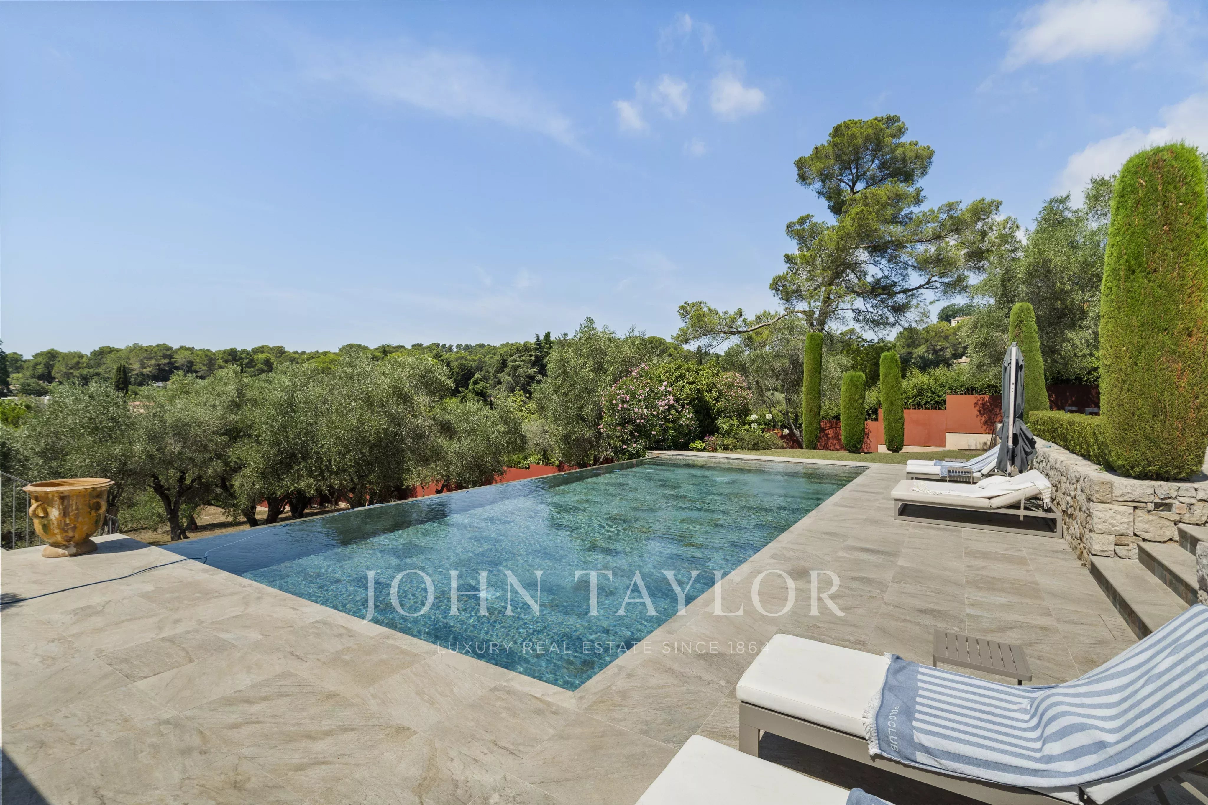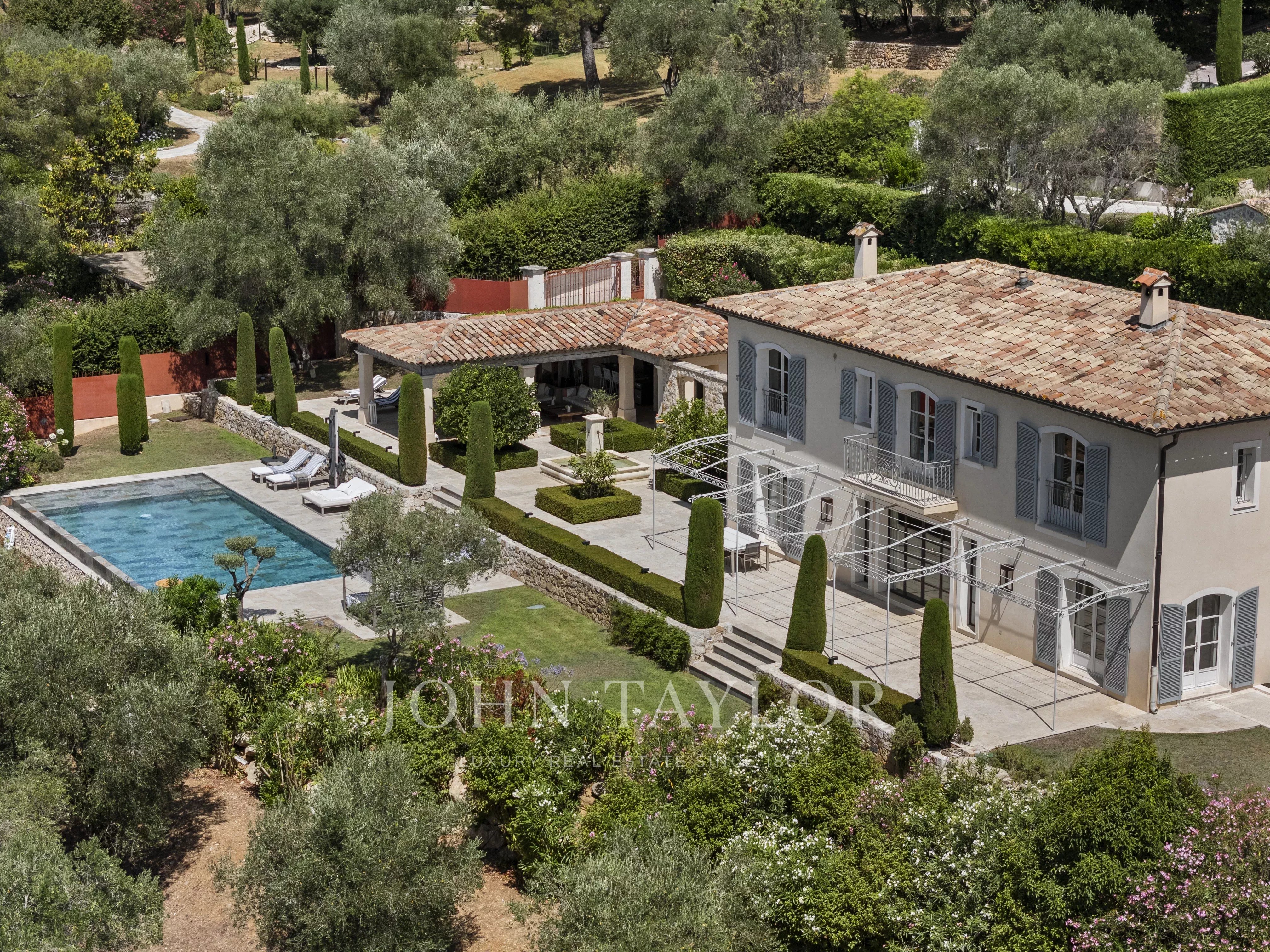 Ideally located between Mougins and Valbonne, the property offers easy access to the beaches of Cannes, charming Provençal villages, renowned golf courses and restaurants, local markets.