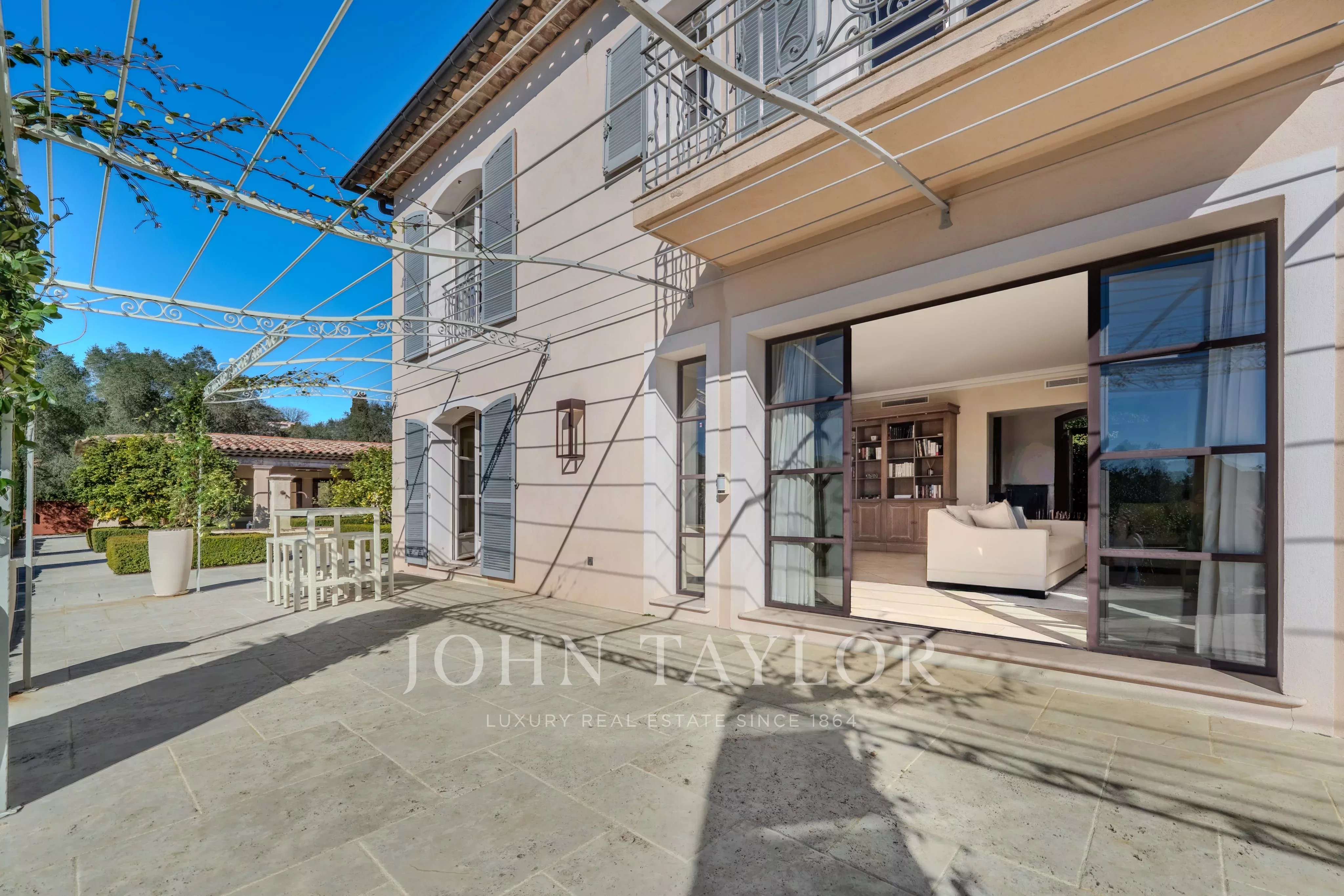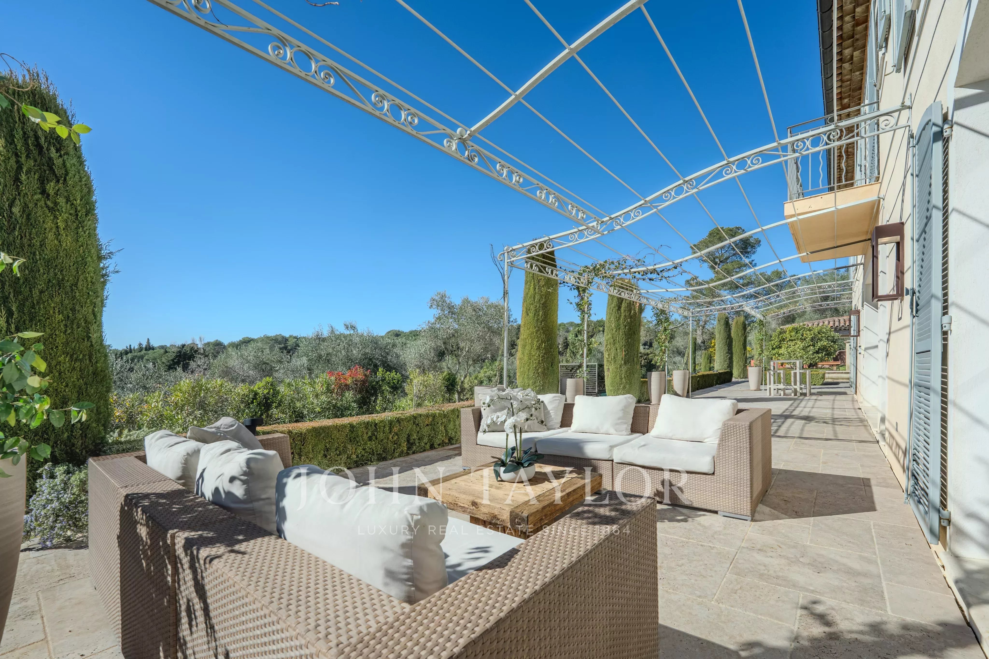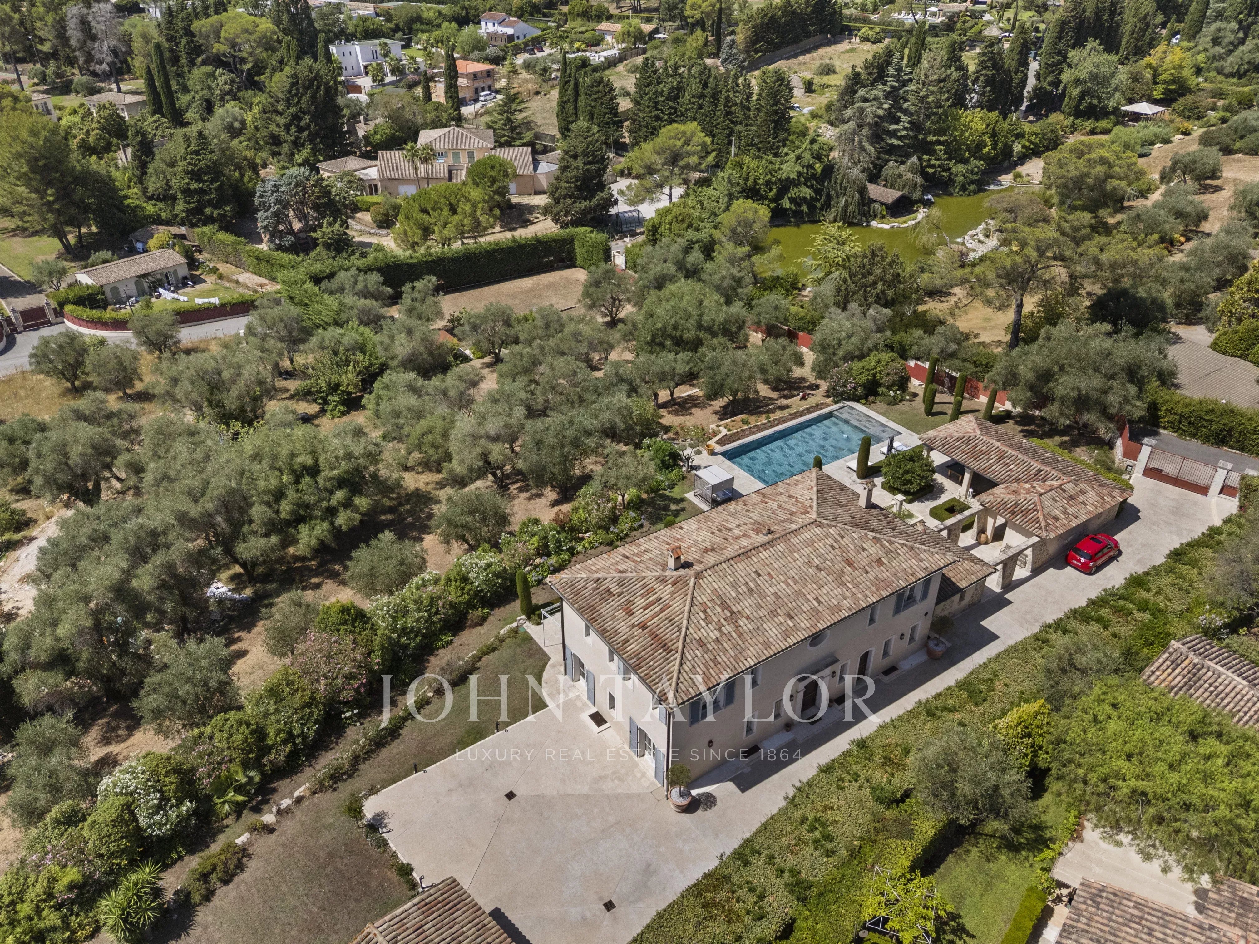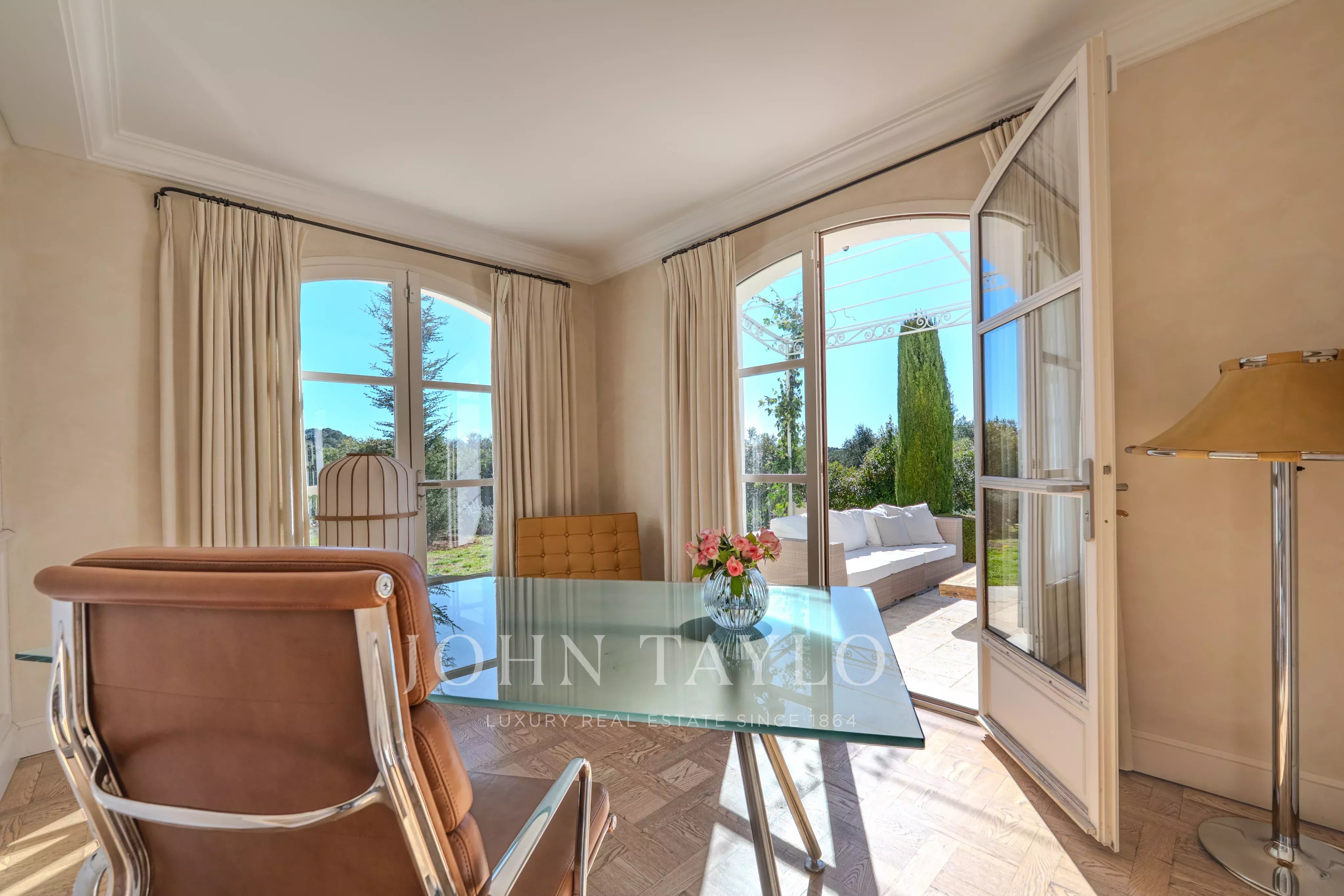 Ideally located between Mougins and Valbonne, the property offers easy access to the beaches of Cannes, charming Provençal villages, renowned golf courses and restaurants, local markets.