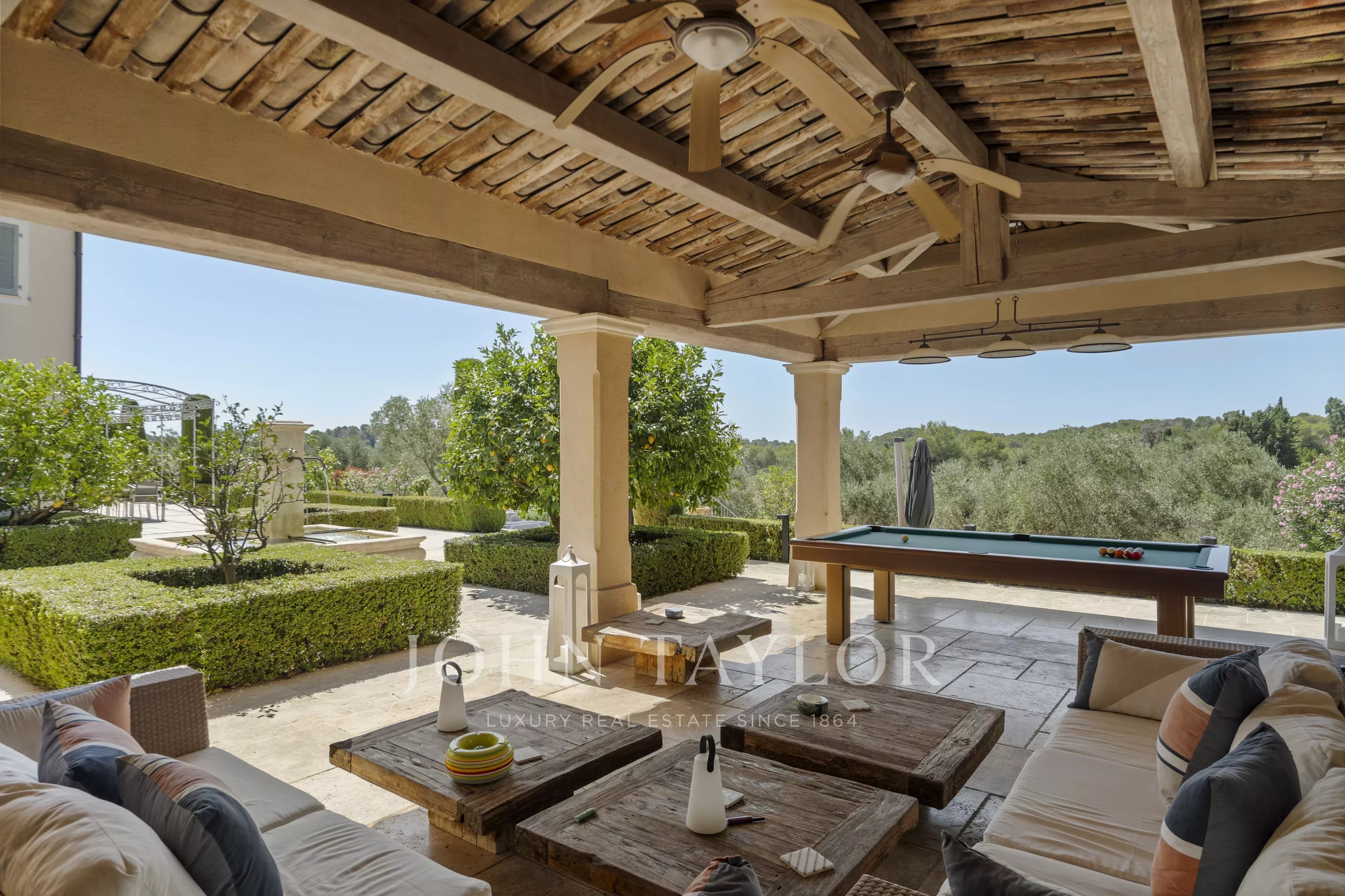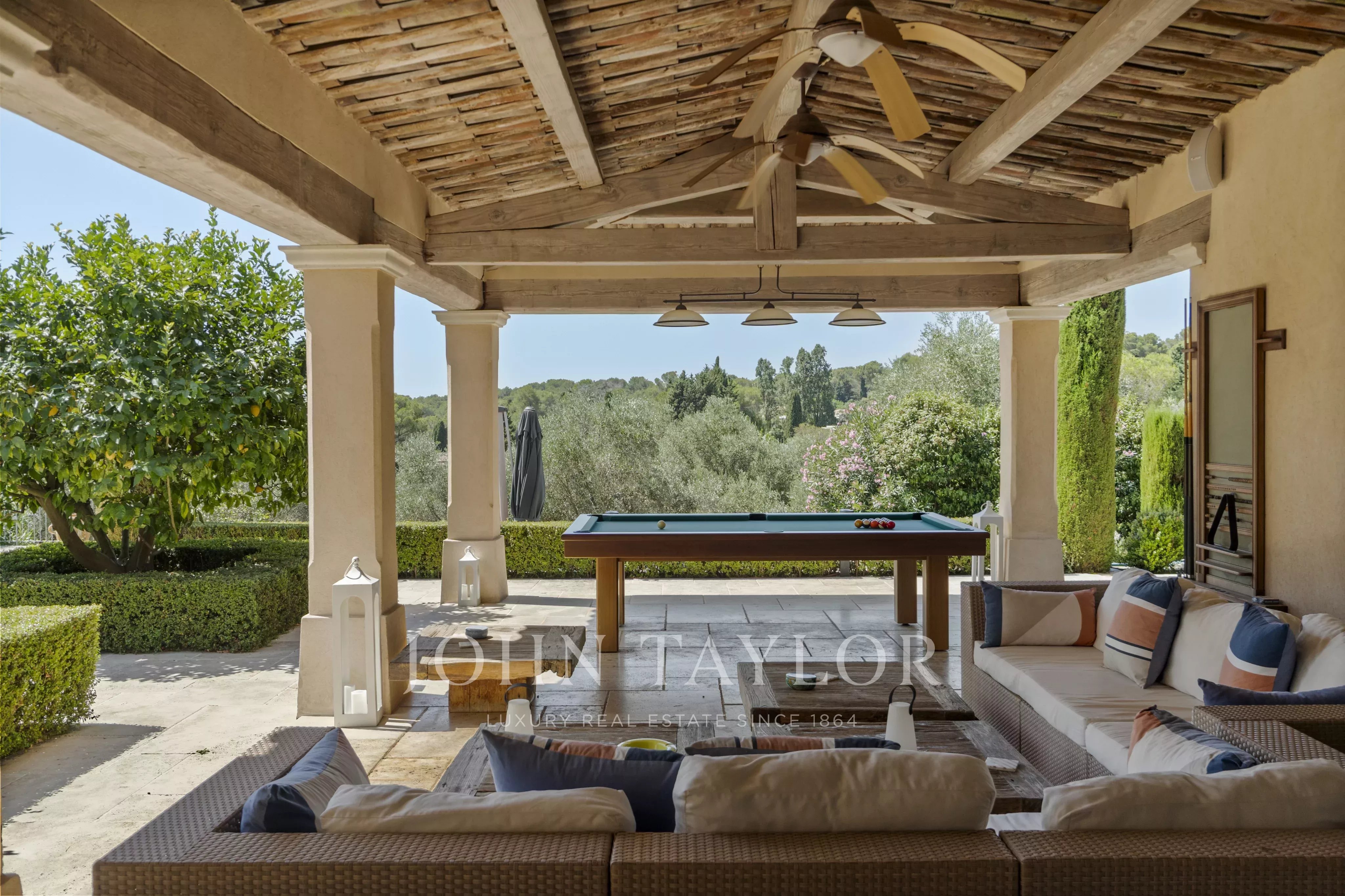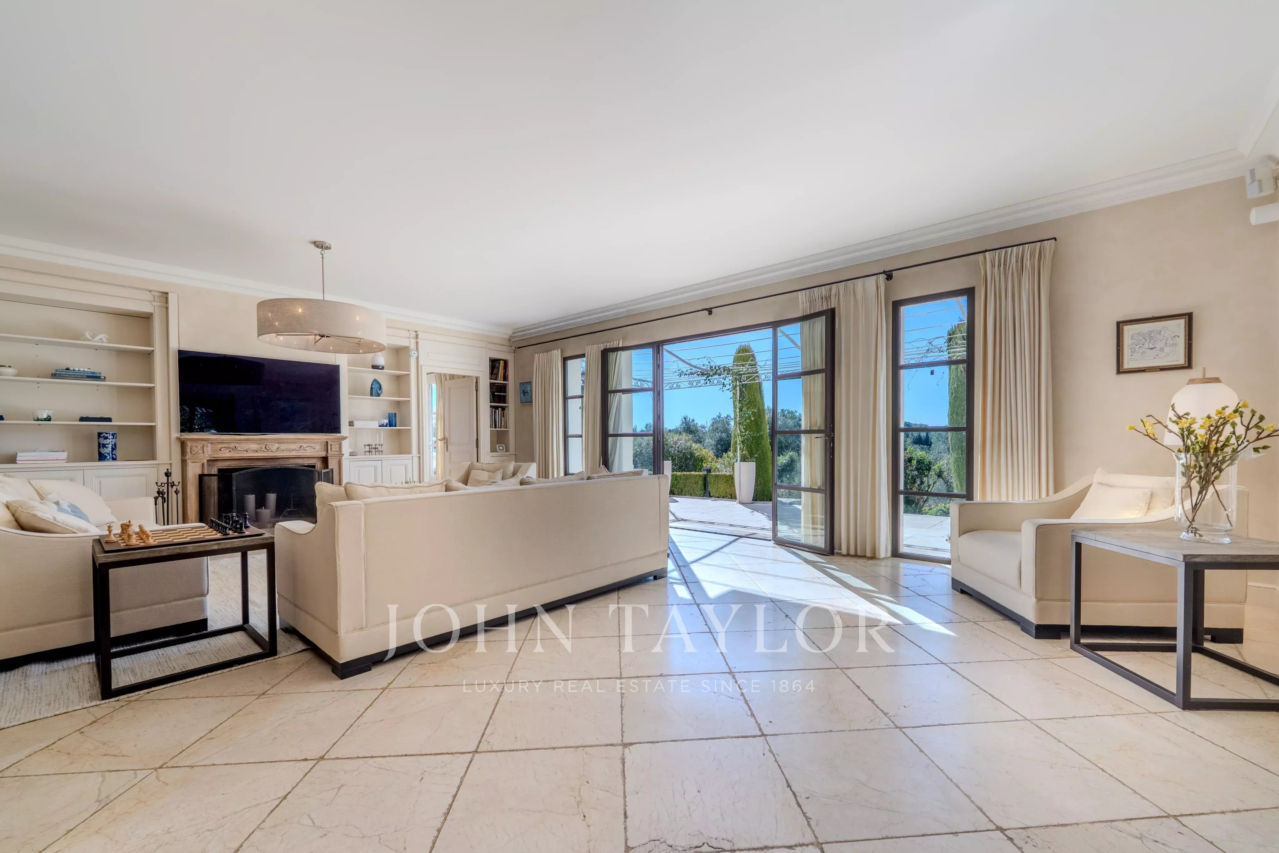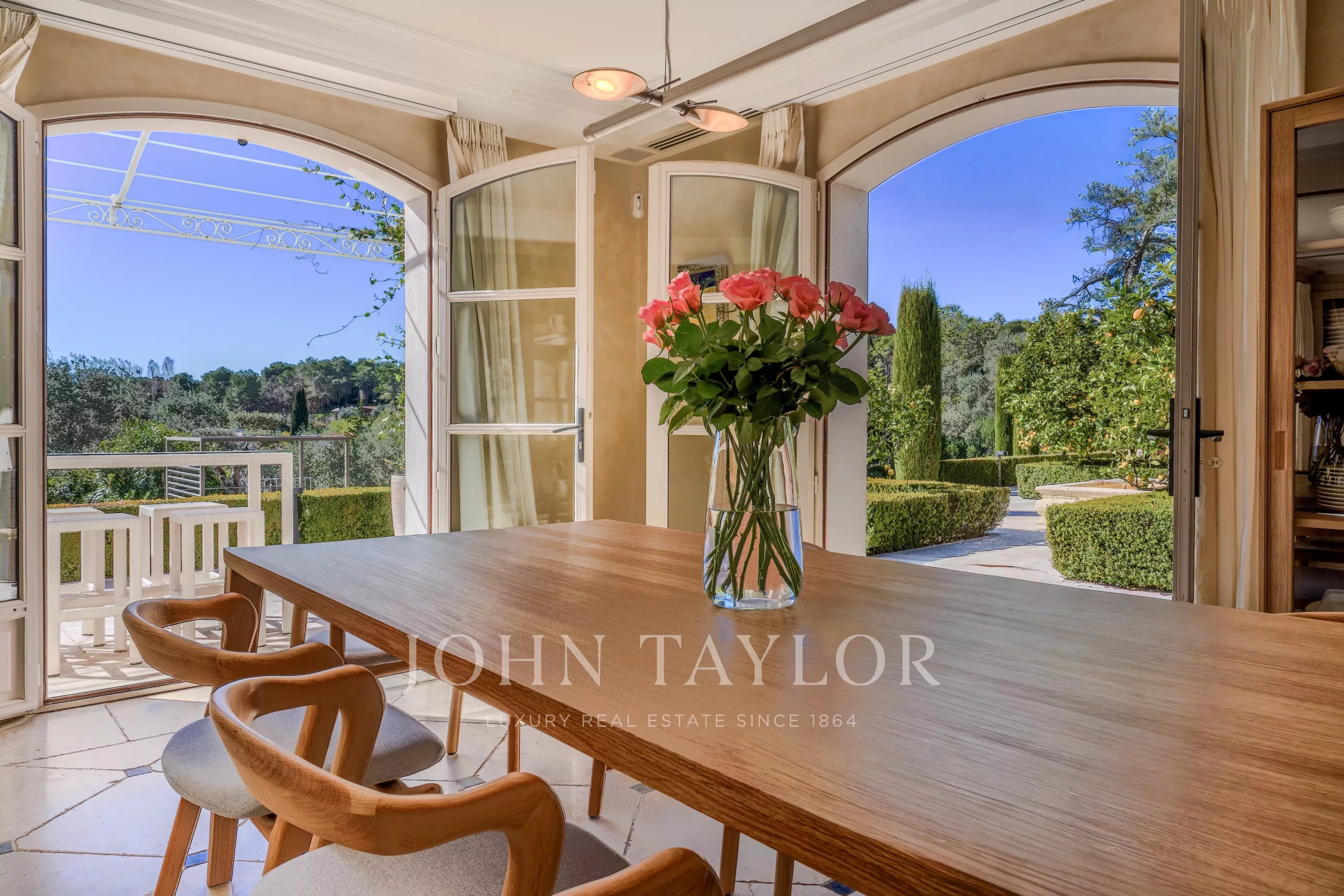 Ideally located between Mougins and Valbonne, the property offers easy access to the beaches of Cannes, charming Provençal villages, renowned golf courses and restaurants, local markets.
