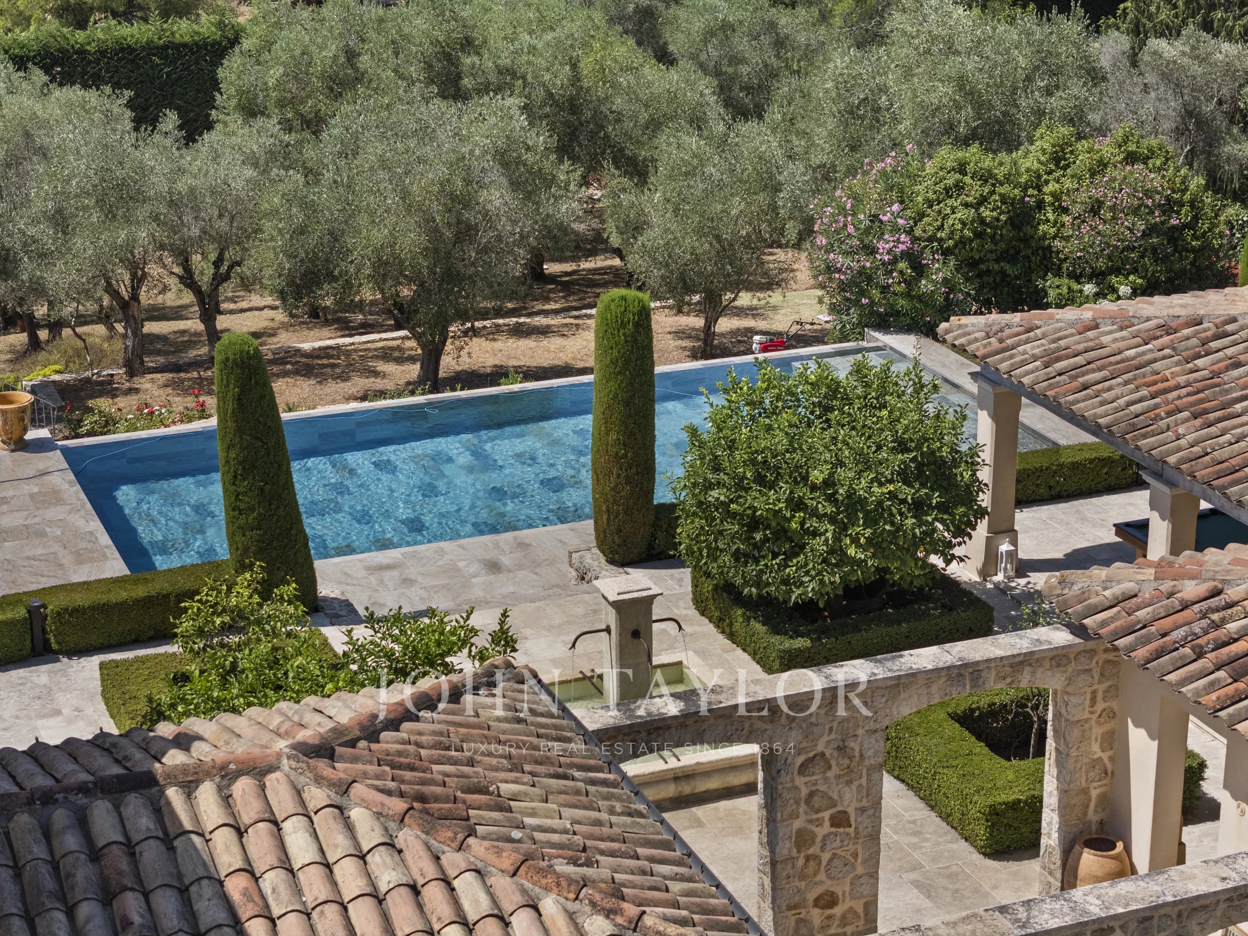 Set on approximately 6,100 sqm of landscaped gardens, the property offers an authentic Provençal lifestyle: flat garden, olive grove, fruit trees, vegetable garden.