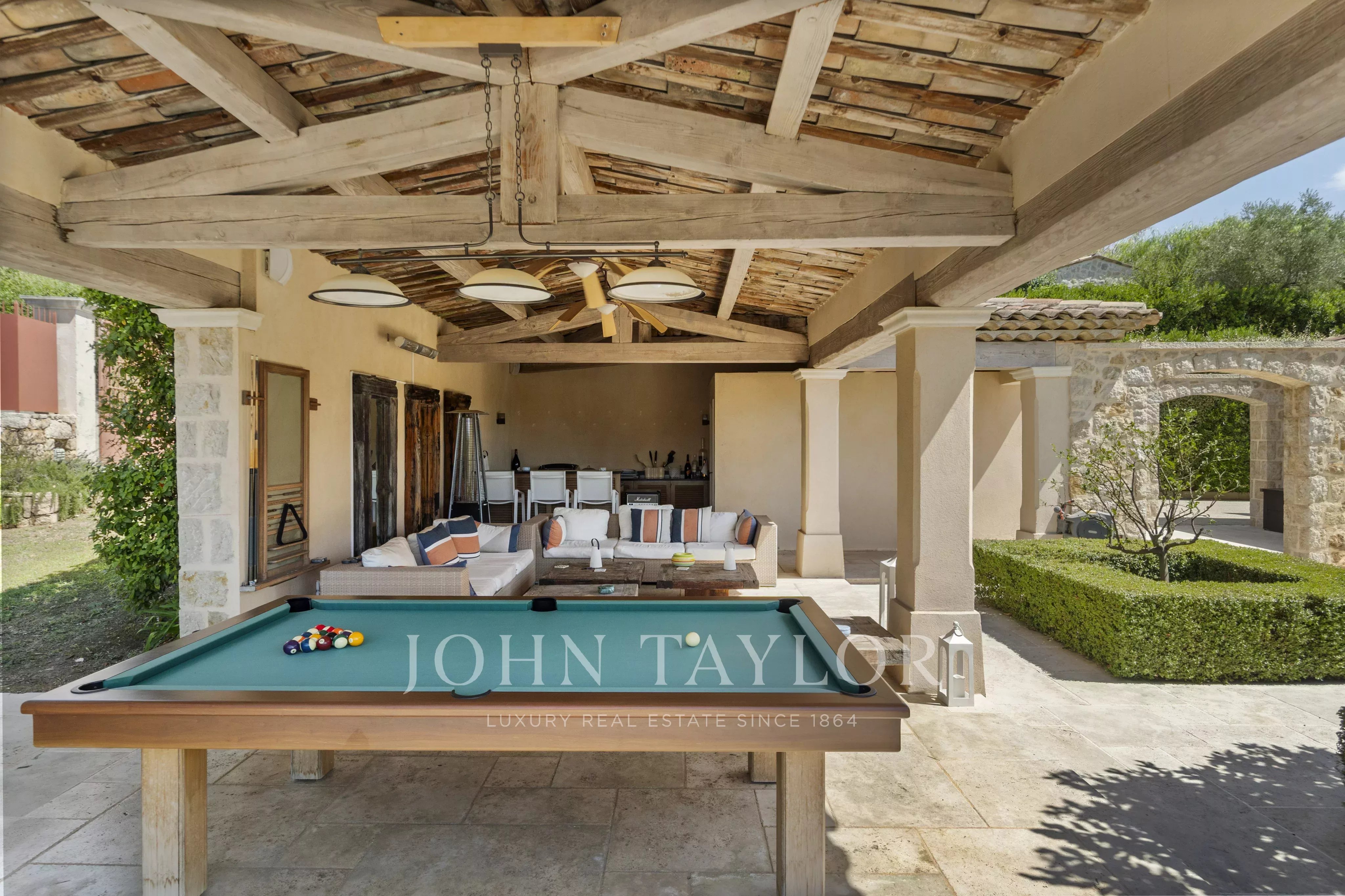 Enjoy a heated infinity pool with a fully equipped pool house, including: summer kitchen, outdoor lounge, hammam.