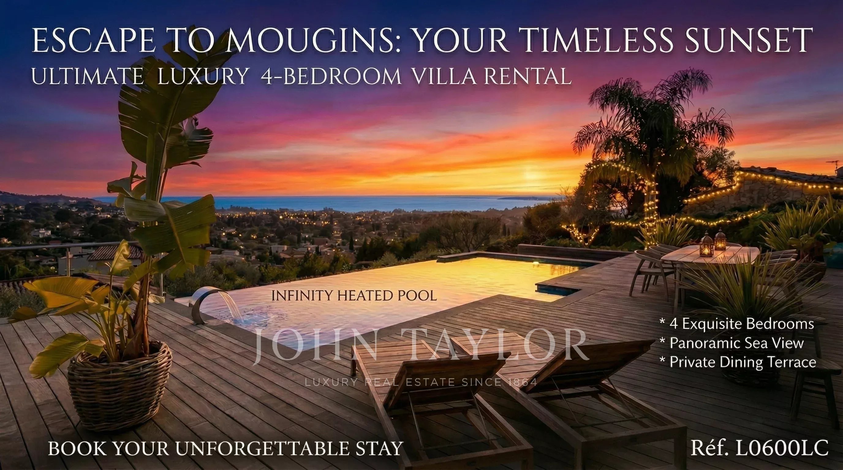 Contemporary 4-bed villa for rent in Mougins – Panoramic sea views, heated pool