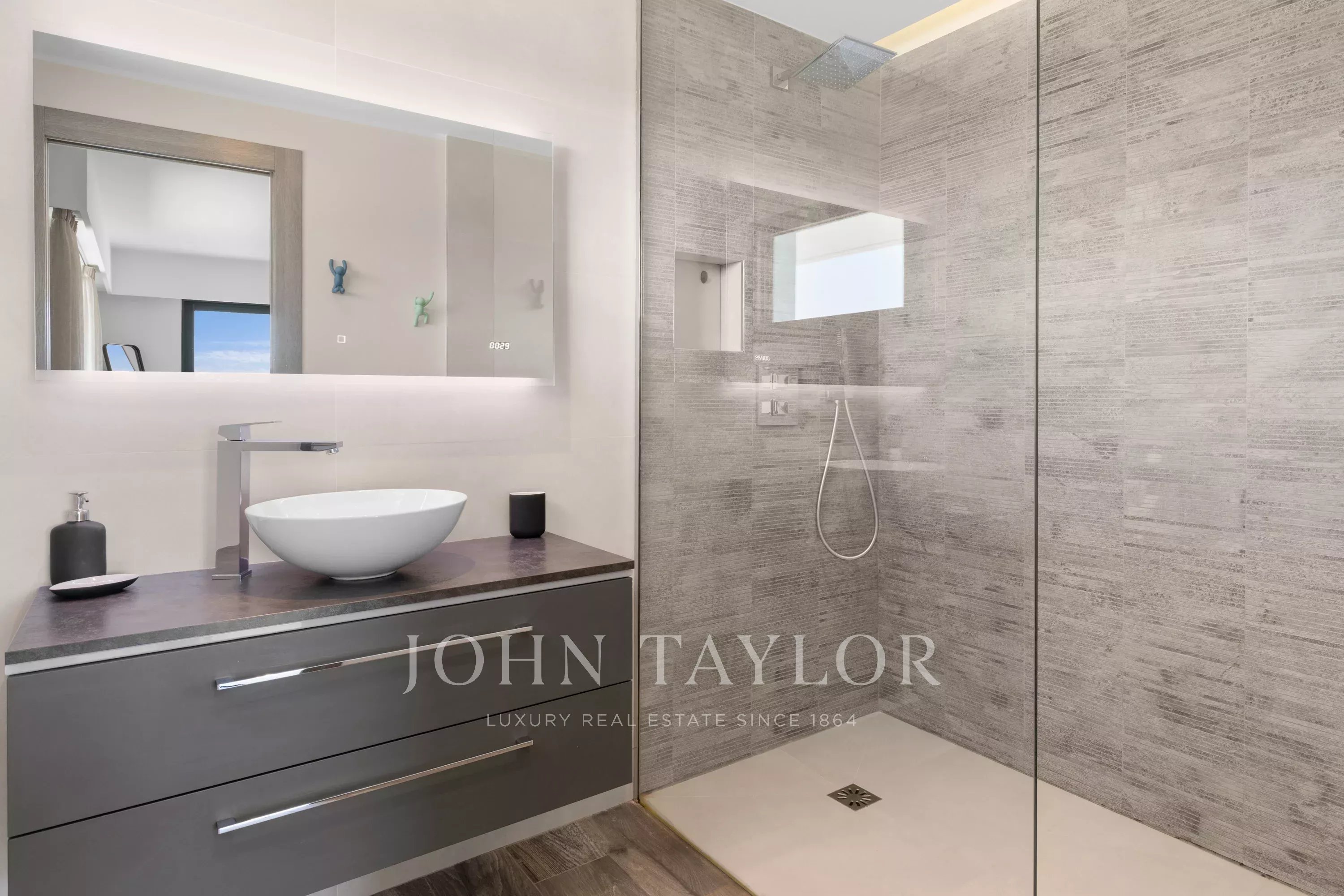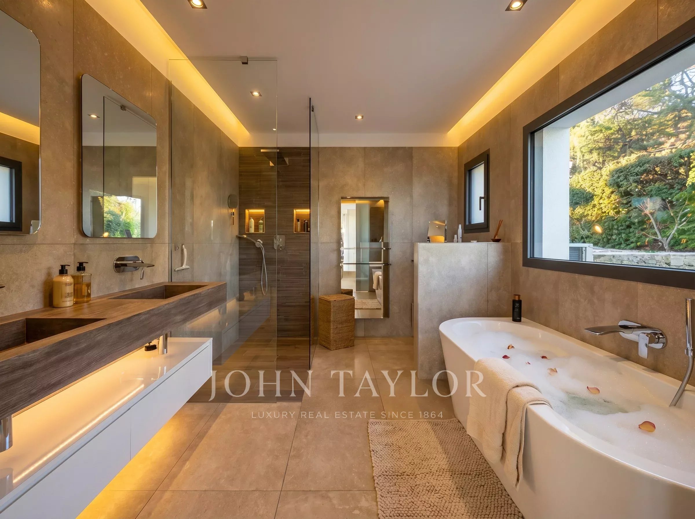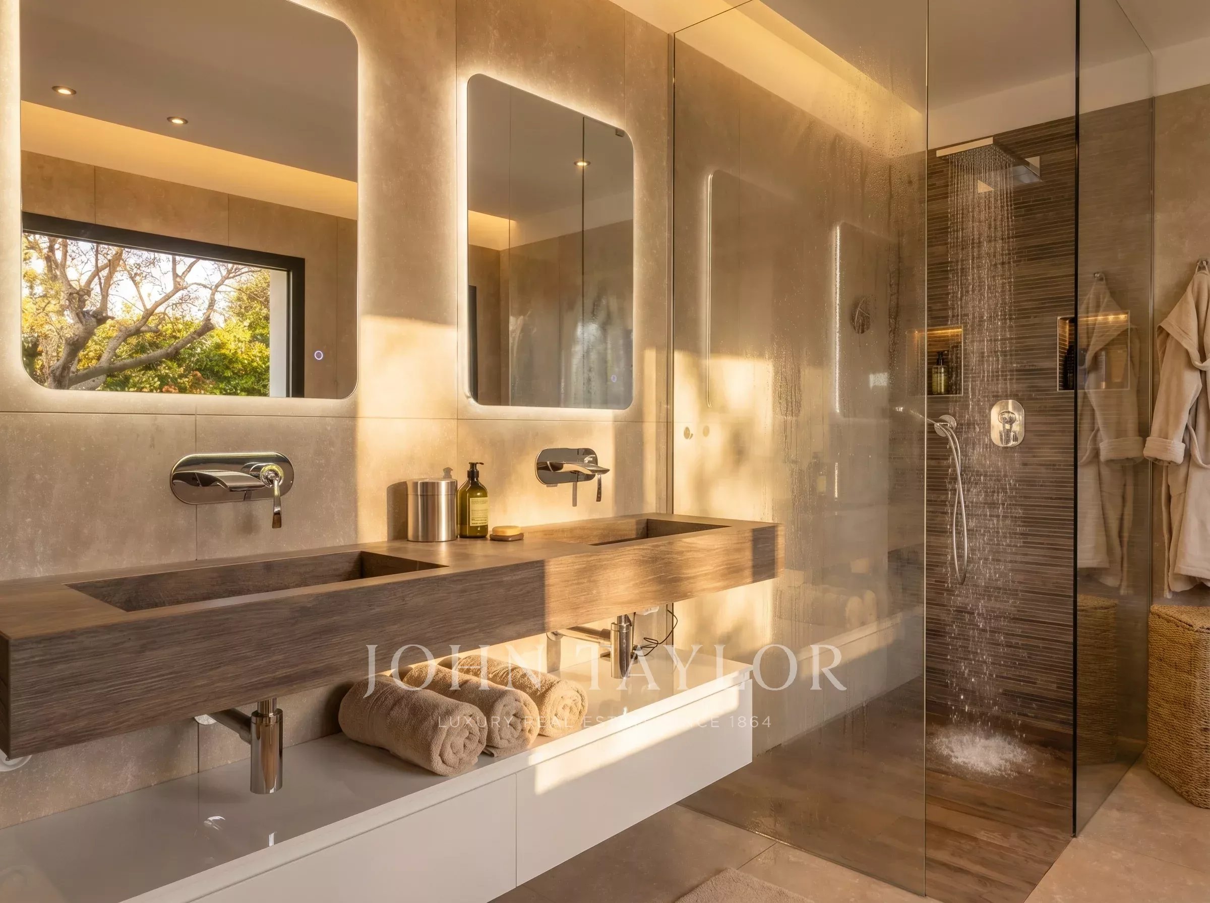 2 double bedrooms, each with en-suite shower room, dressing area, and access to a private terrace.