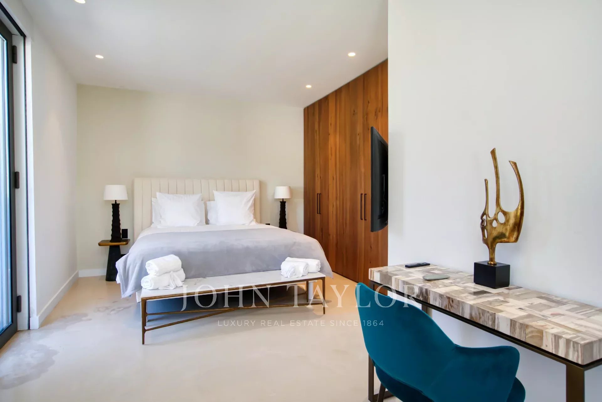 Bedroom 3: (bed 180X200) with dressing room. En-suite shower room (WC/sink) for bedrooms 2 and 3.