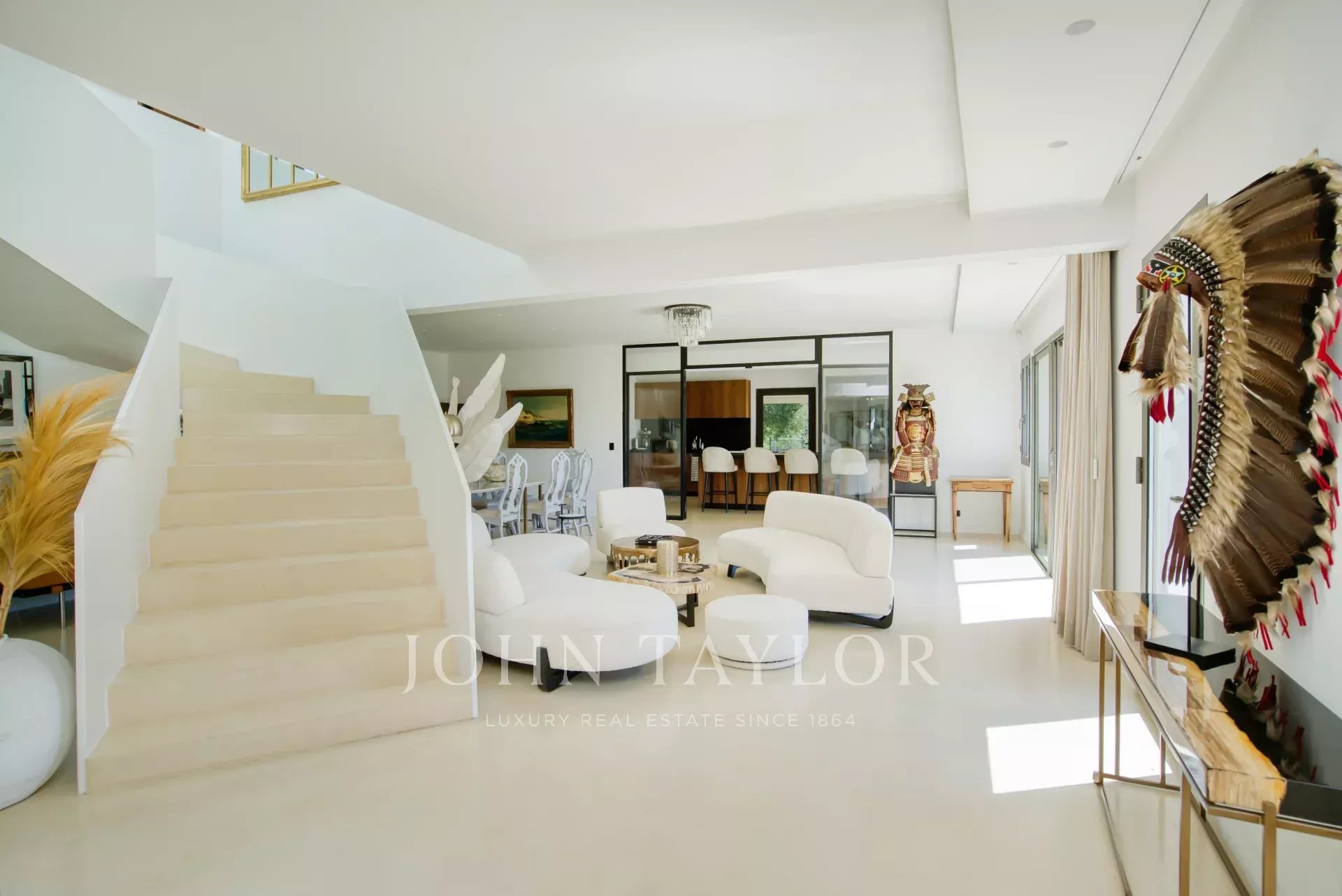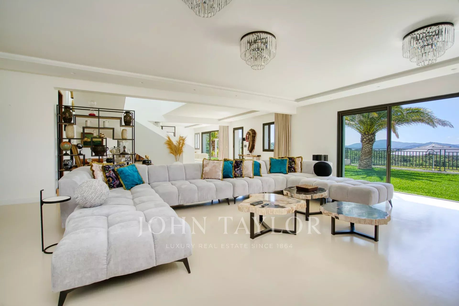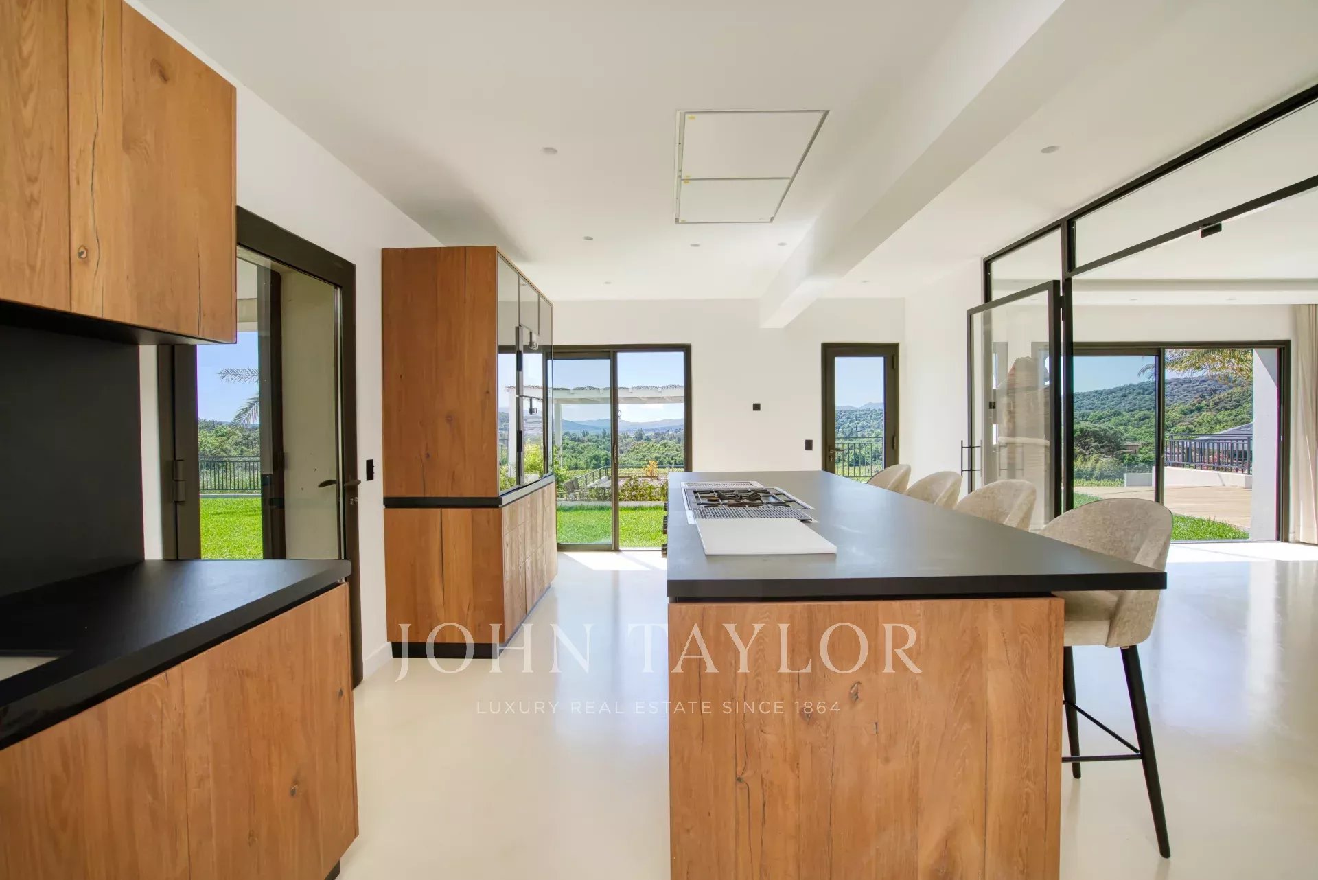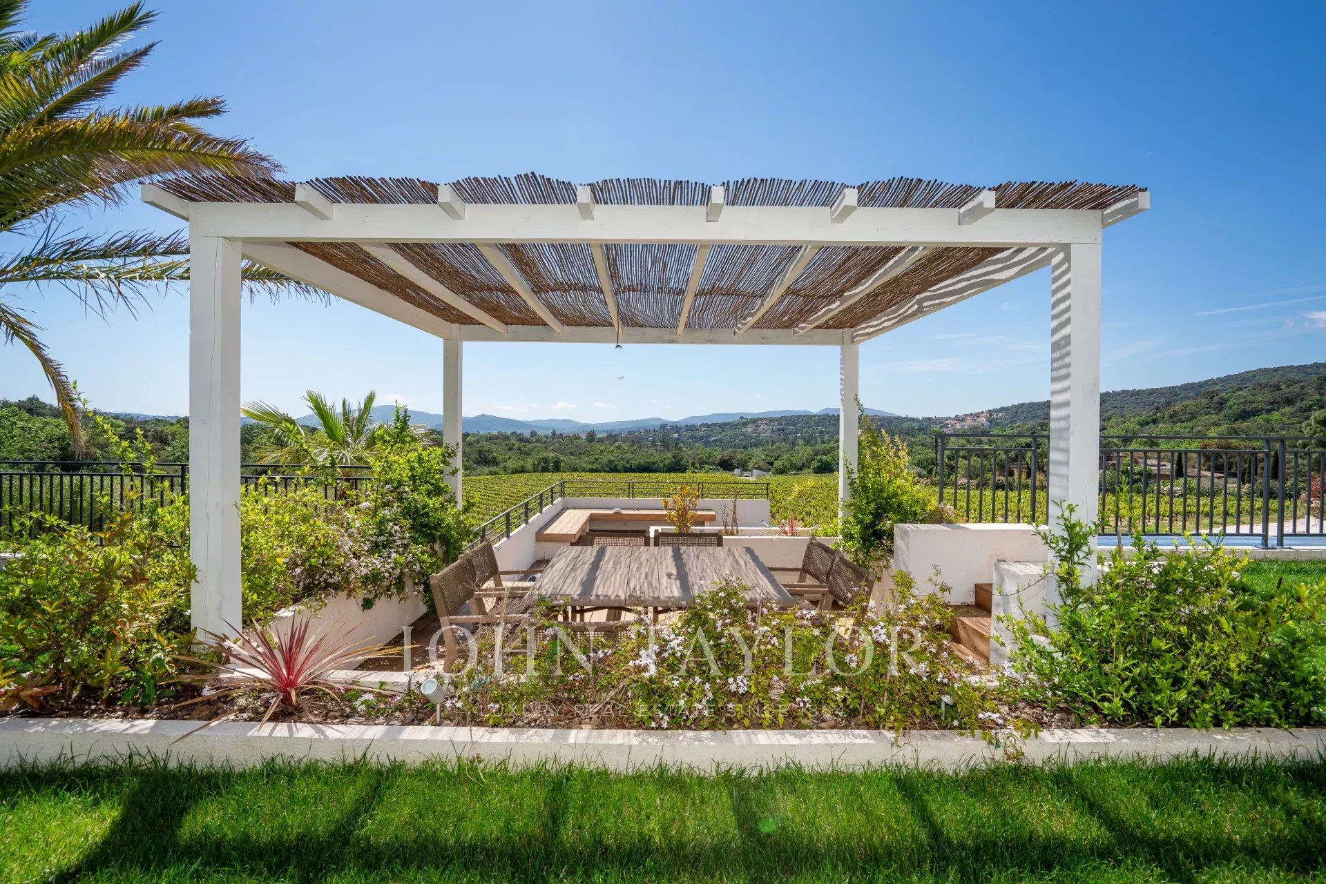 A vast living room comprising a TV lounge and dining room offering panoramic views of the vineyards and hills and opening onto a terrace. A fully equipped kitchen opening onto a covered terrace with lounge and dining table. The kitchen also has a back office/laundry room.