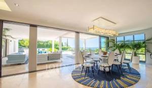 - A vast living room comprising a large living room with TV, a dining room and an open kitchen, all benefiting from a breathtaking sea view. The kitchen also has a fully equipped utility room.