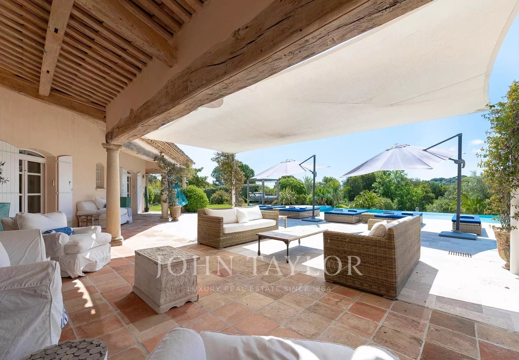 Nestled amidst picturesque vineyards, just a 7-minute drive from the renowned beaches of Pampelonne, this exquisite family home offers tranquility and charm.