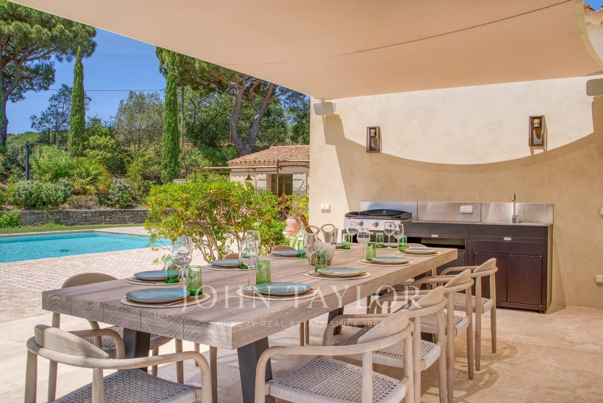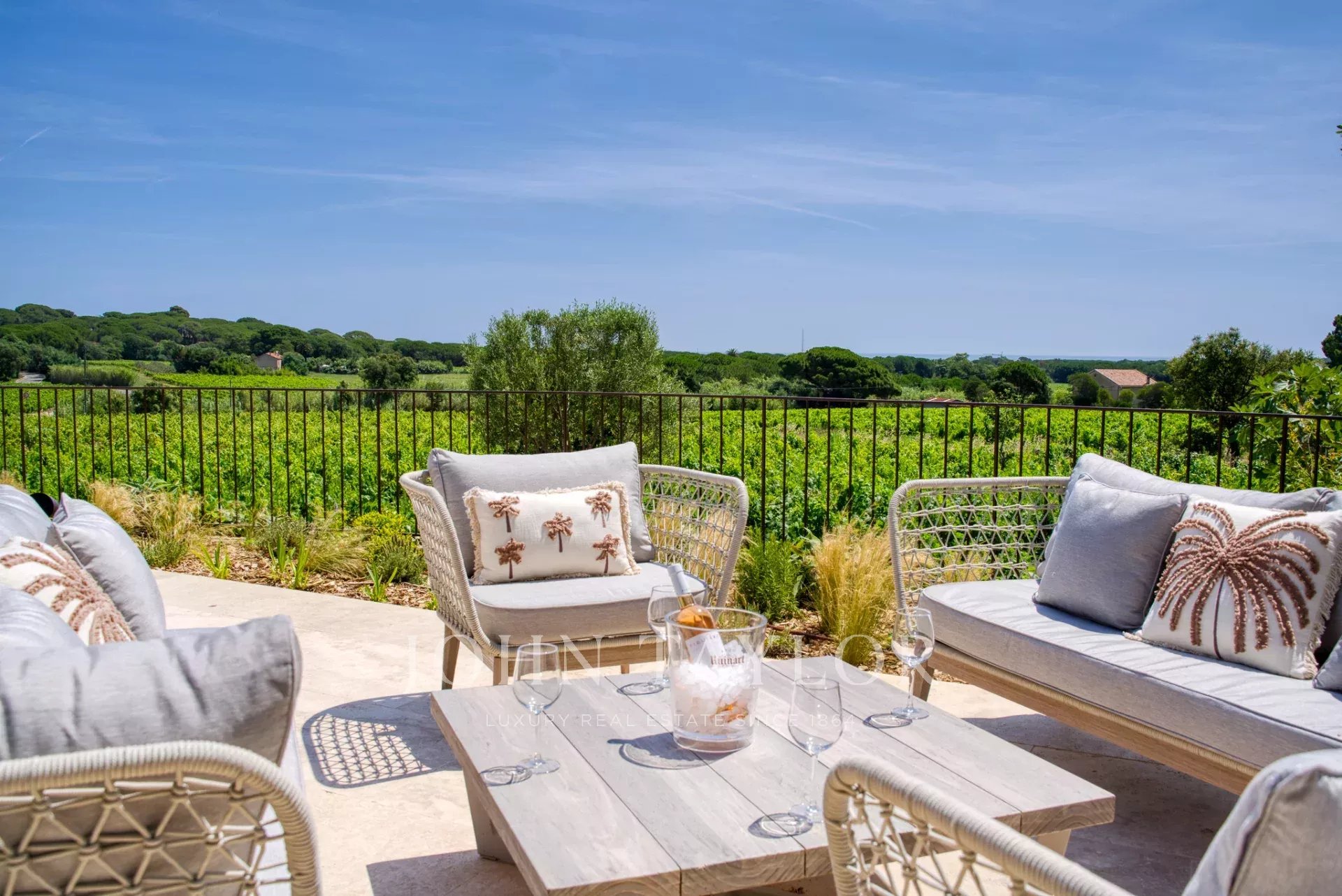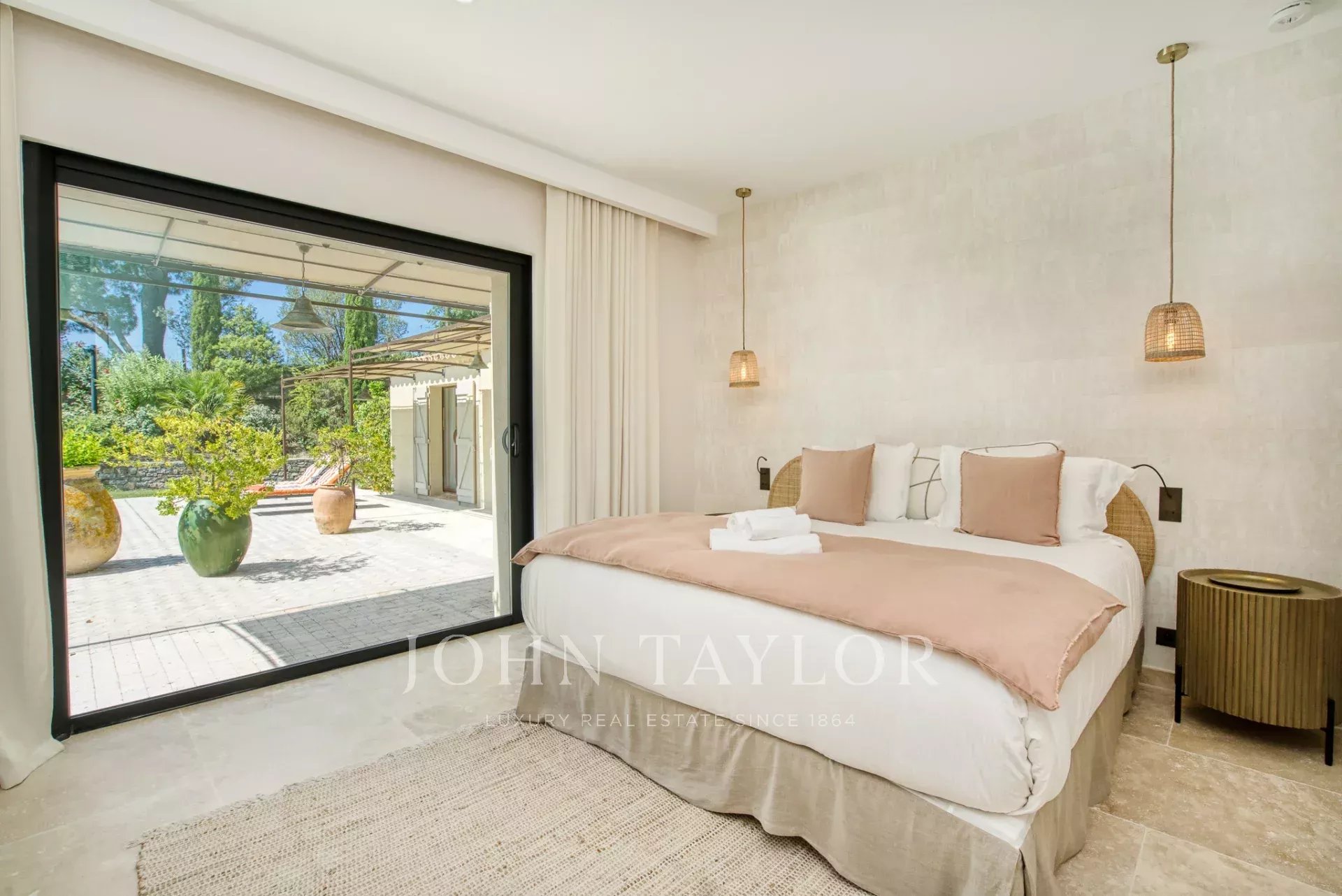 Very beautiful Provencal Bastide located in the heart of the vineyards with a beautiful view of the bay of Pampelonne, it includes: