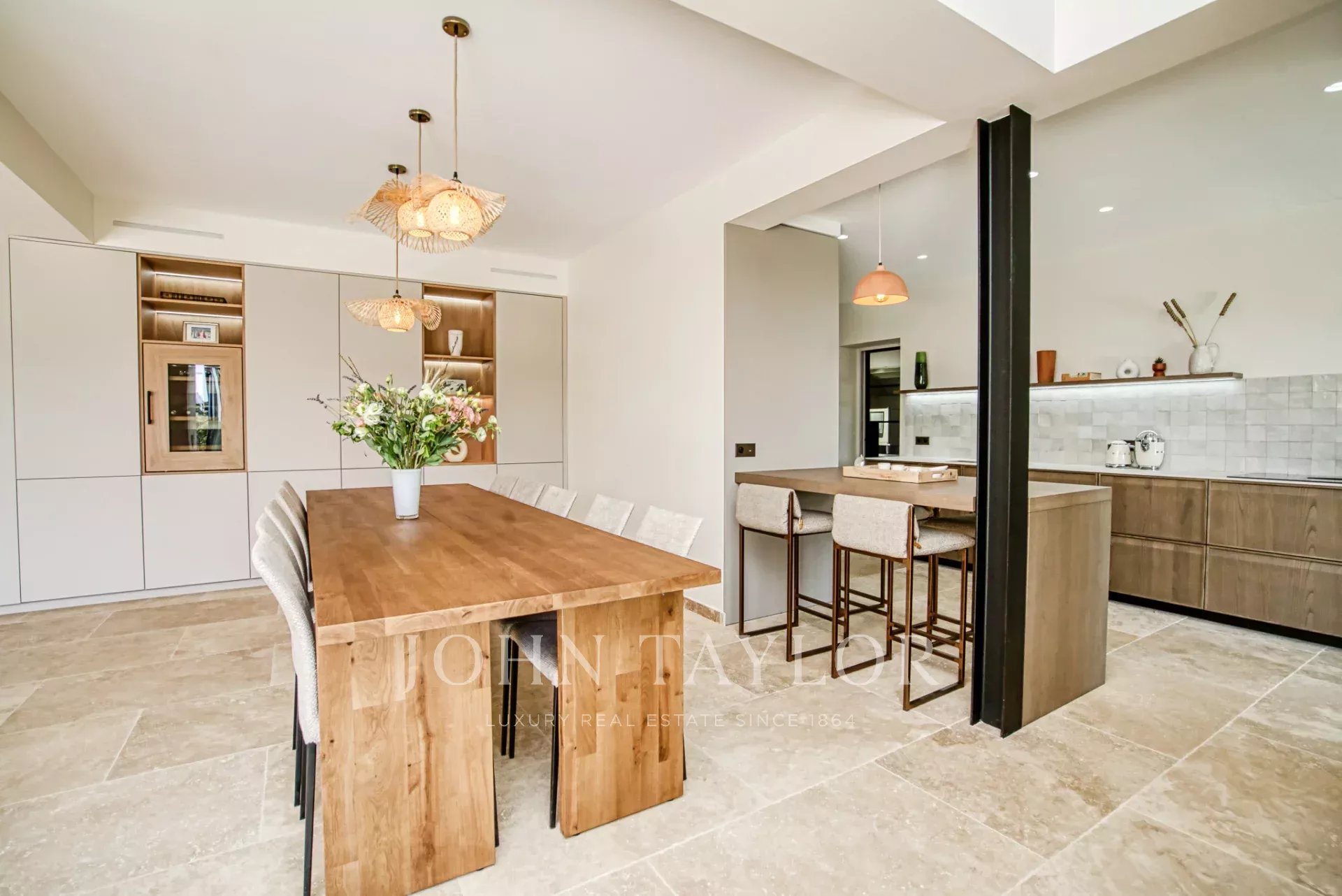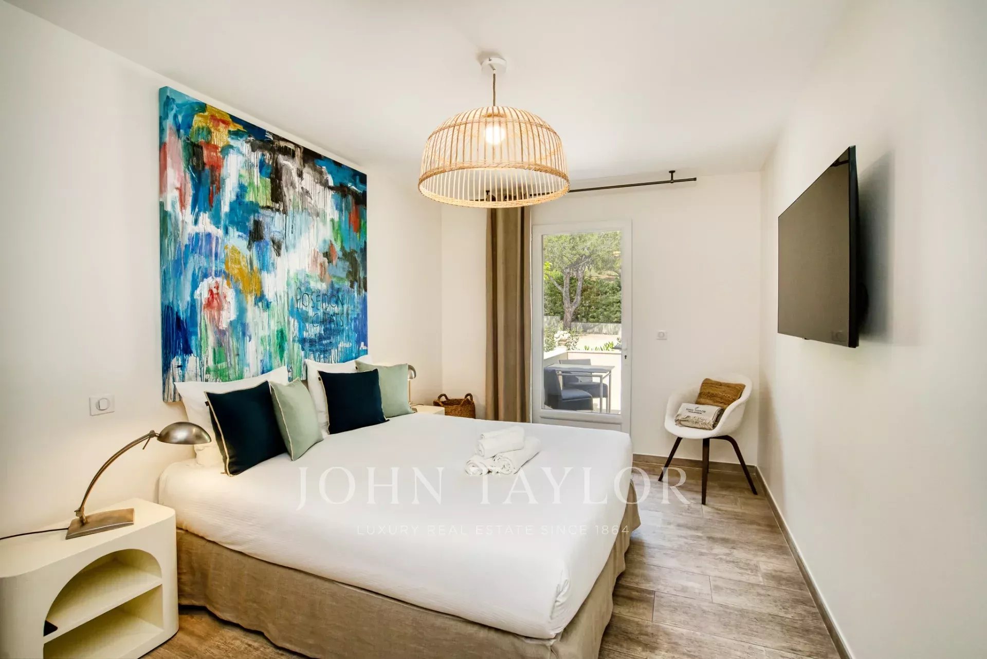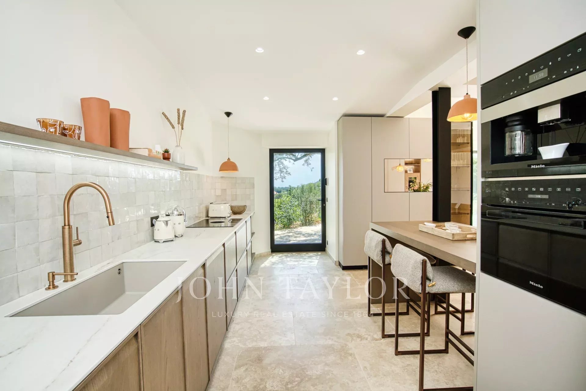 Very beautiful Provencal Bastide located in the heart of the vineyards with a beautiful view of the bay of Pampelonne, it includes: