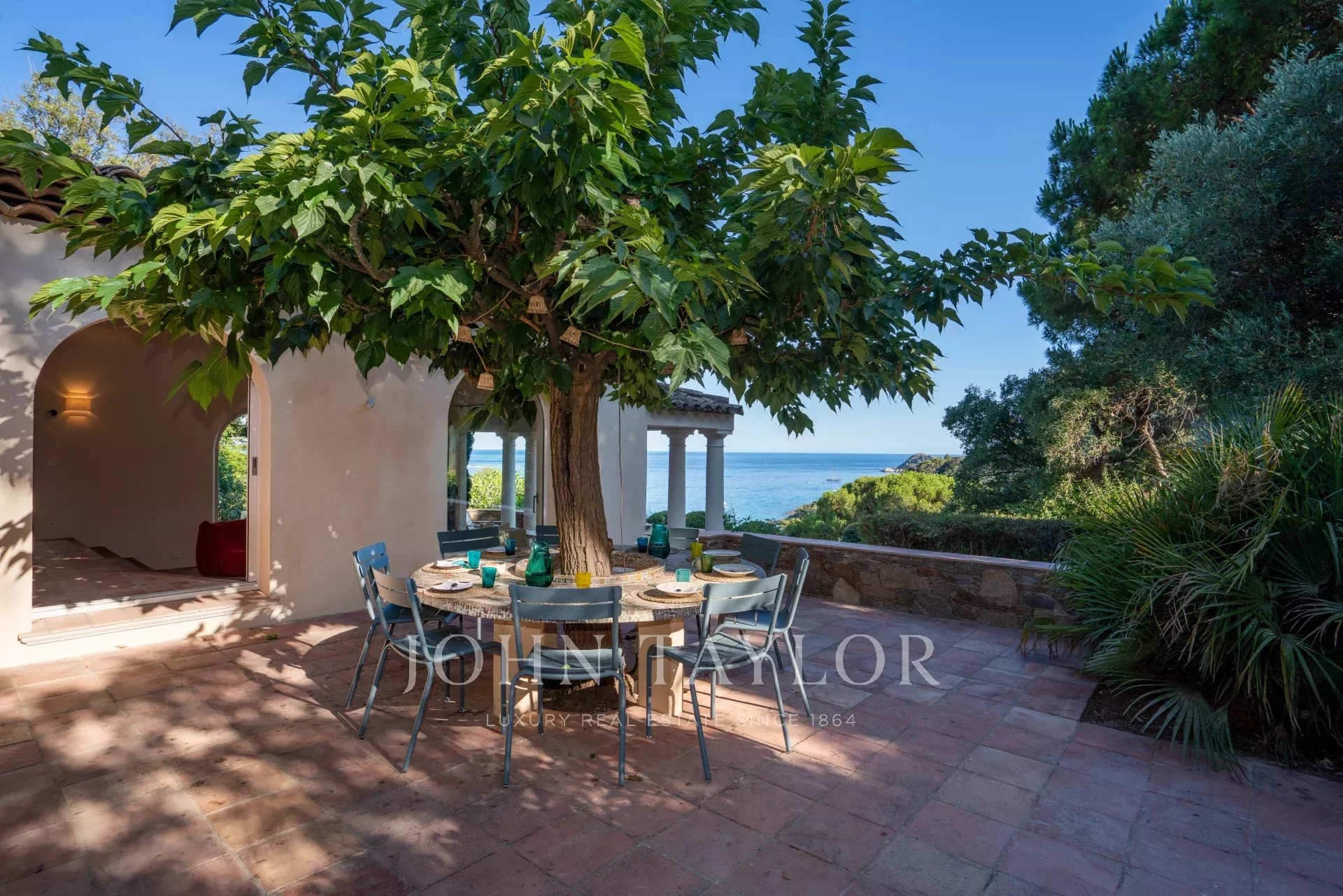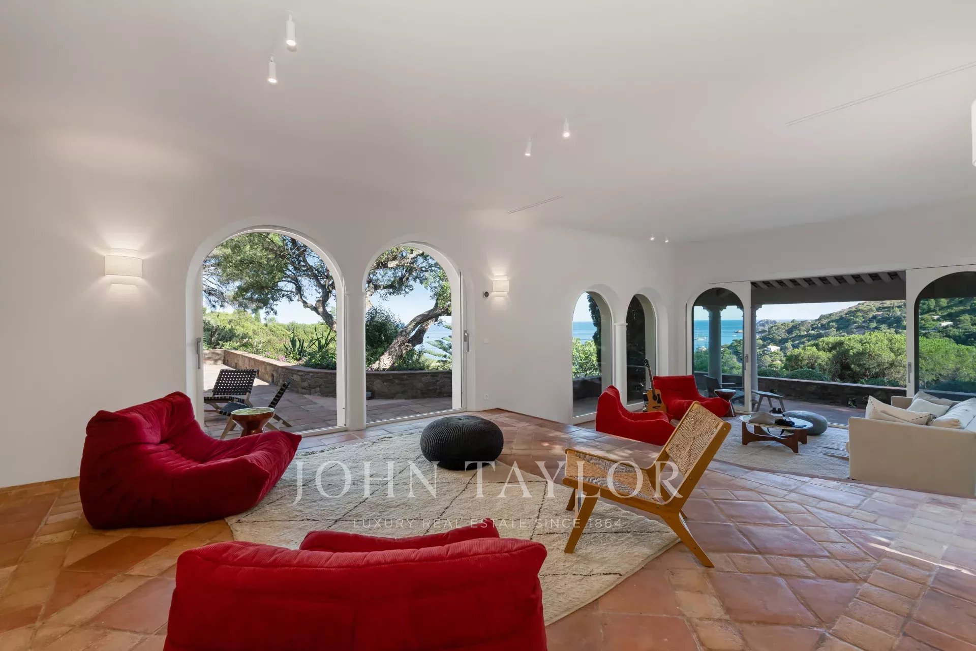 -a vast living room opening onto terraces with sea views