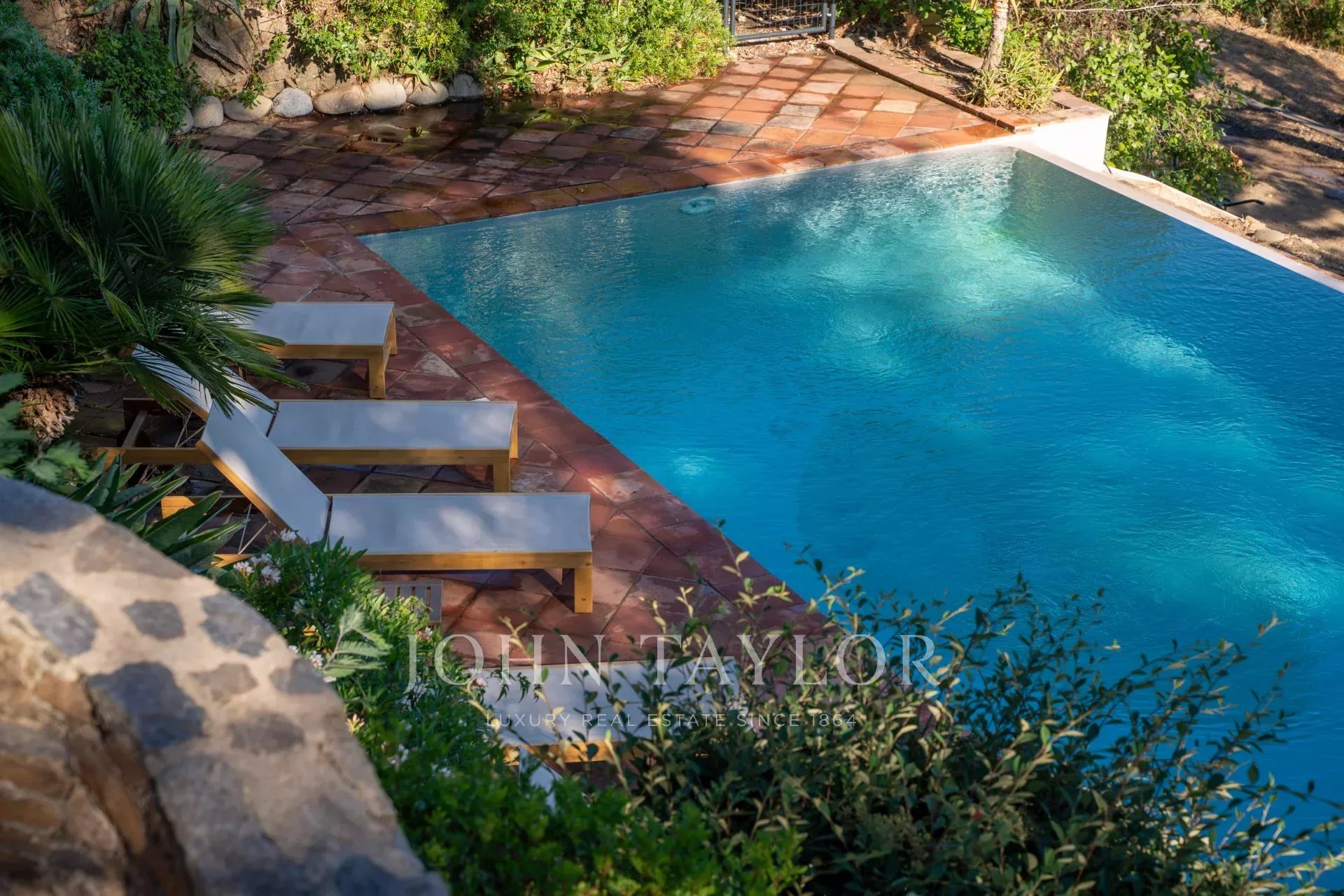 The garden features a swimming pool and a number of peaceful terraces....