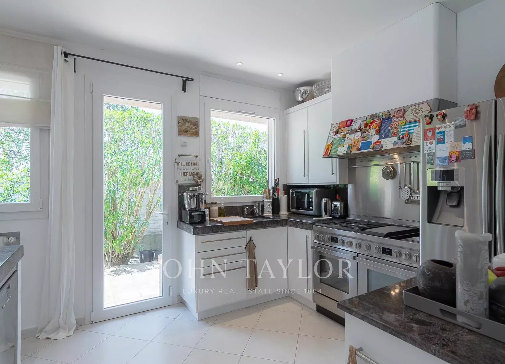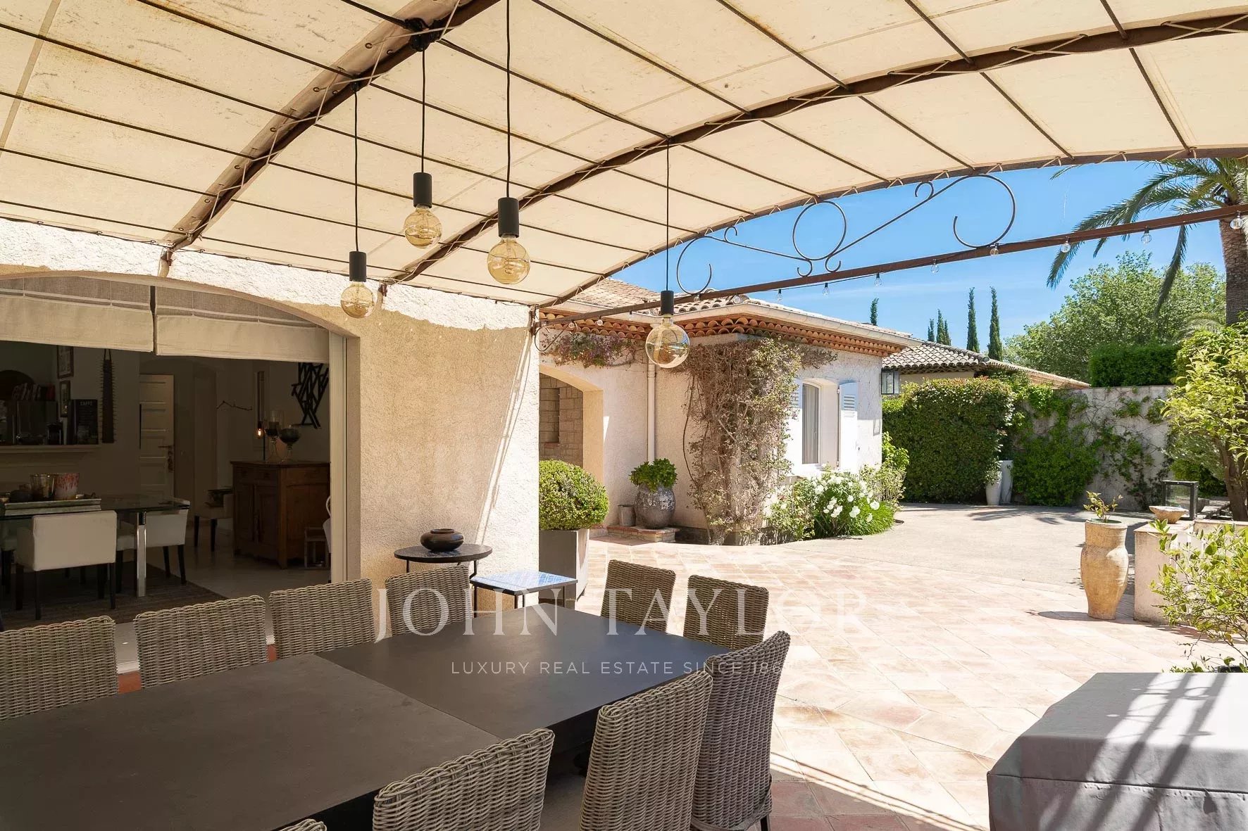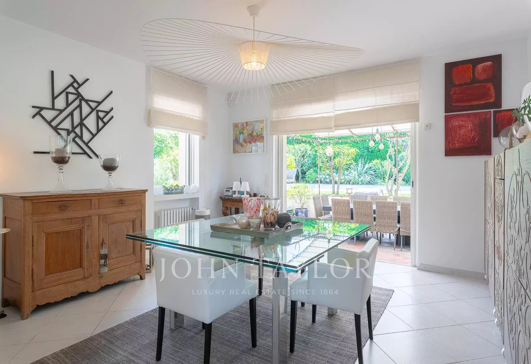 - A kitchen open to the dining room and the covered terrace sheltered from the wind