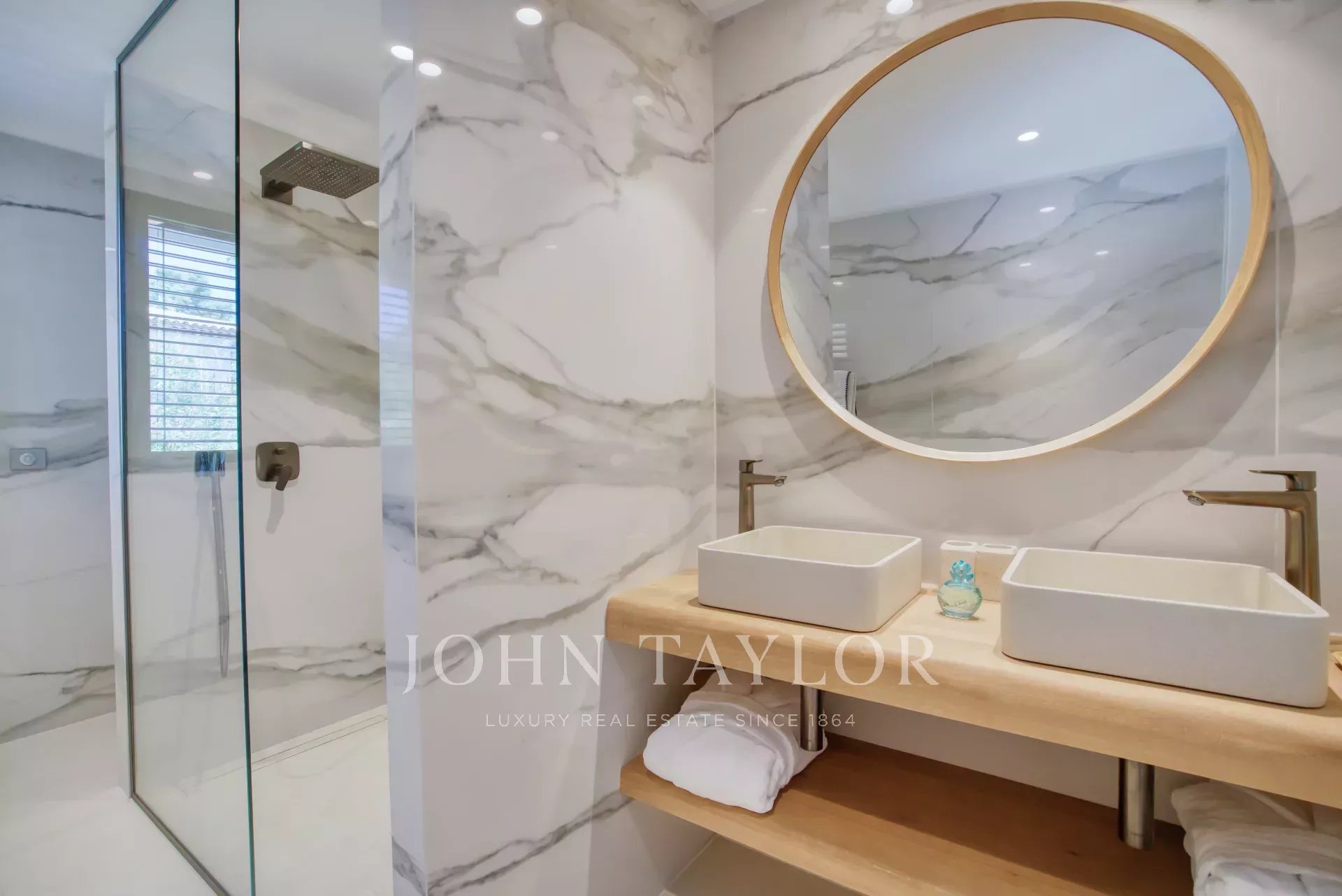 - Bedroom 3: Equipped with a king-size bed (180x200), this room offers a shower room with washbasin, toilet and cupboards with a safe. It also has access to the terrace.