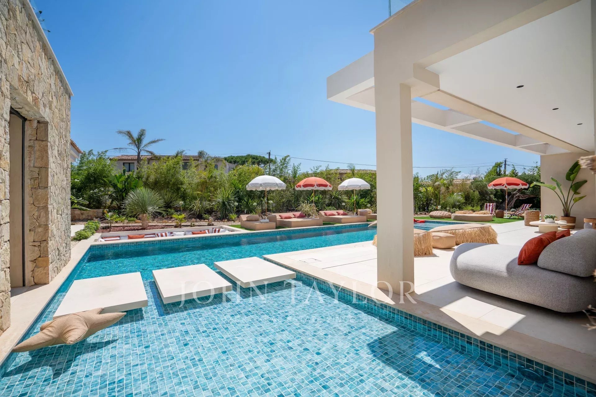 This family villa, ideally located near the famous village of Saint-Tropez and offering quick access to the beach road, is a true haven of peace, with luxurious amenities and modern comforts.