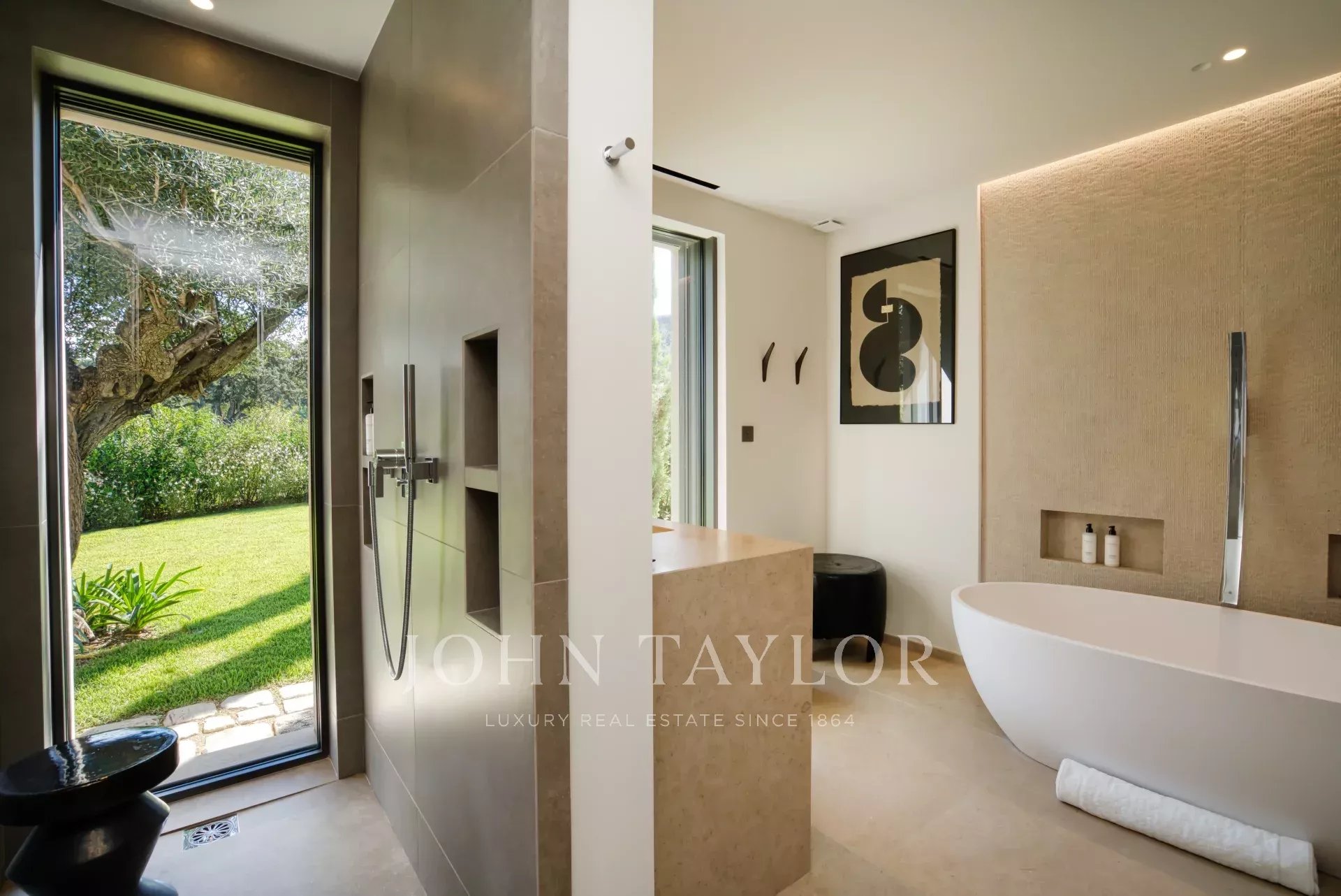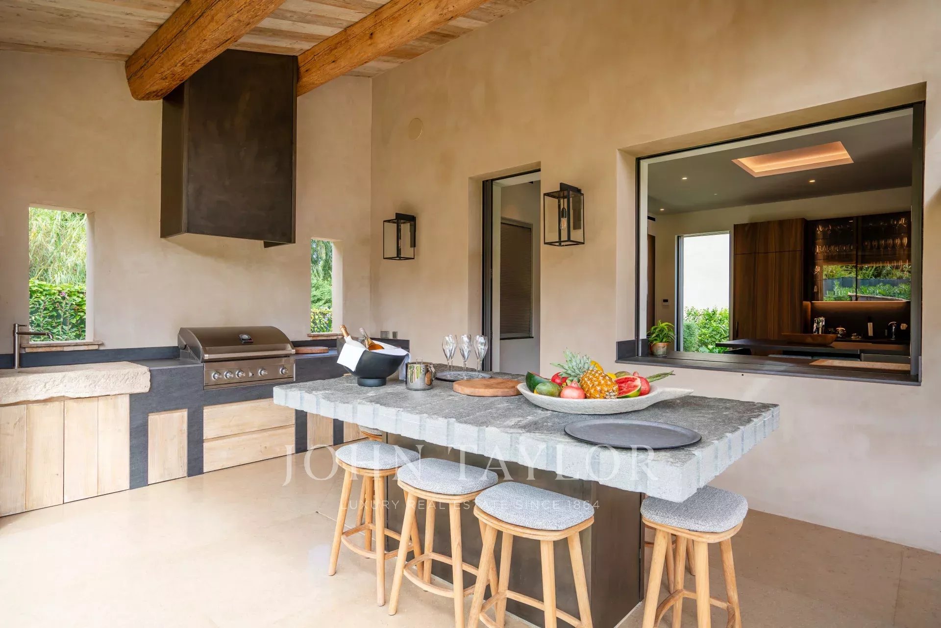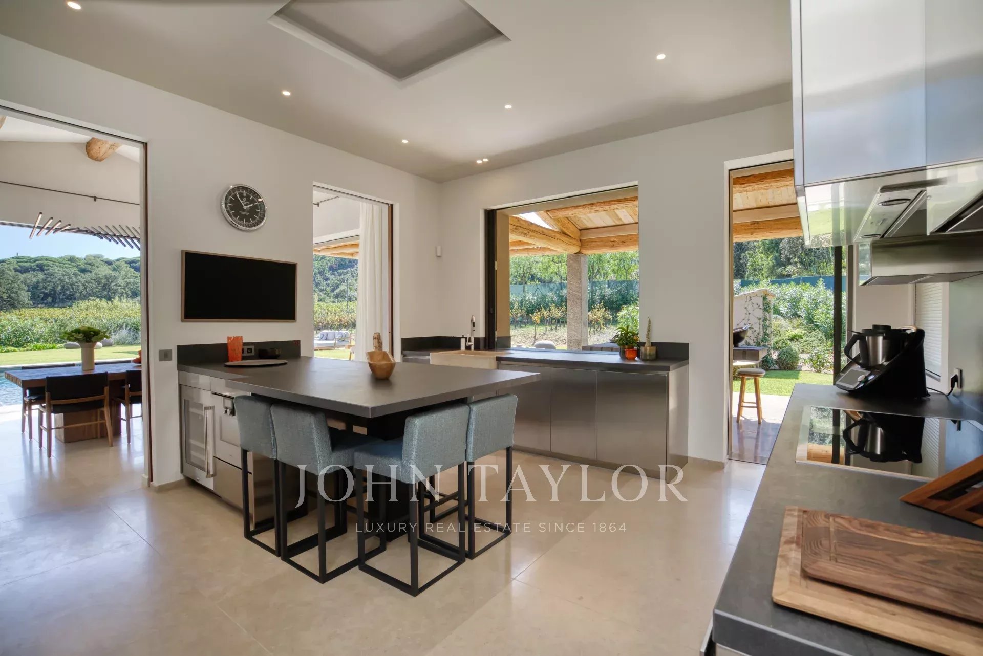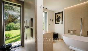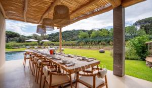 Outdoors, you'll find a spectacular swimming pool, fitness area, and spa, perfect for unwinding under the Mediterranean sun. The villa is surrounded by beautiful outdoor lighting, and the fenced property offers privacy and peace of mind. With amenities like a barbecue, intercom, electric gate, and more, this Saint-Tropez villa promises an unforgettable seasonal rental experience.