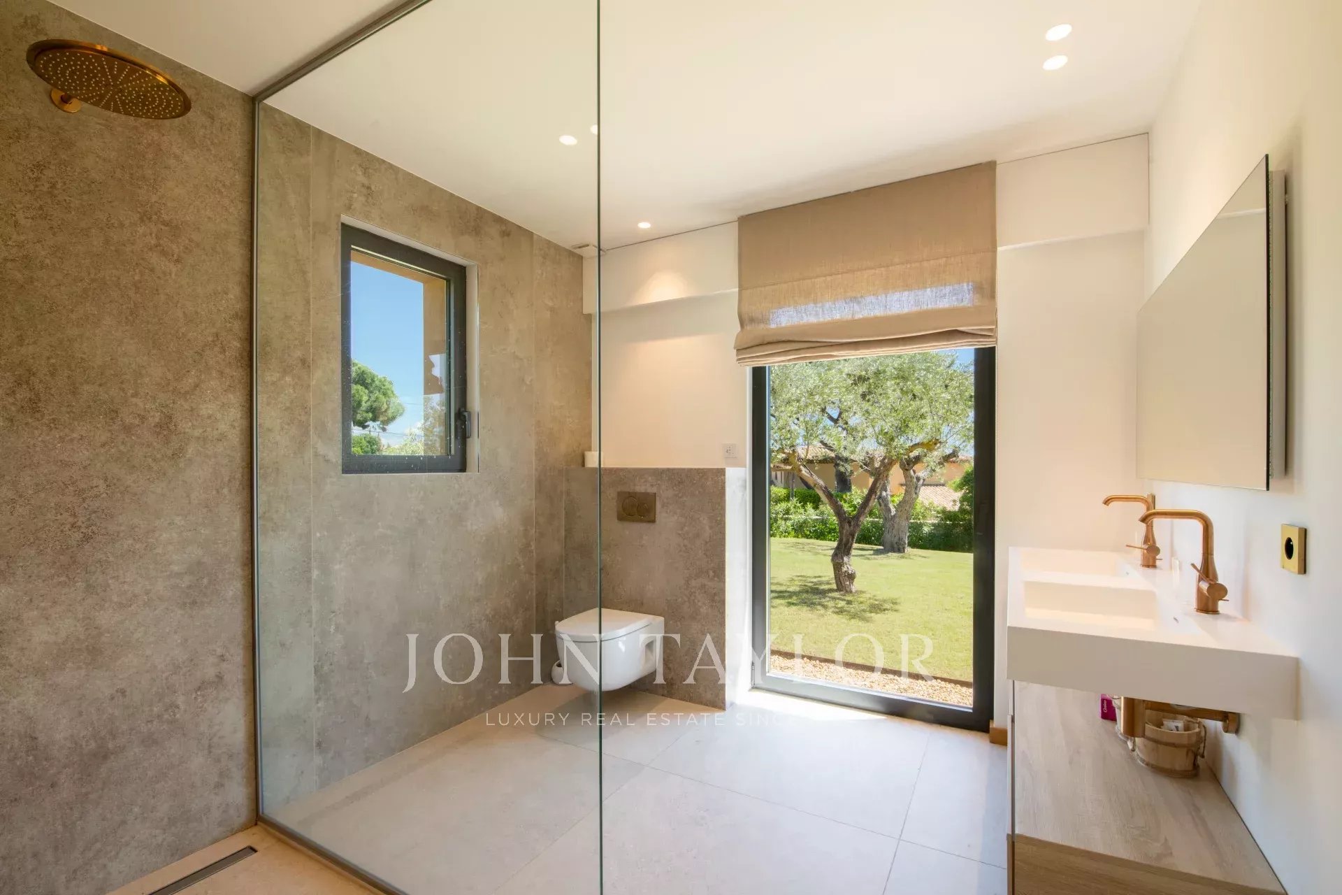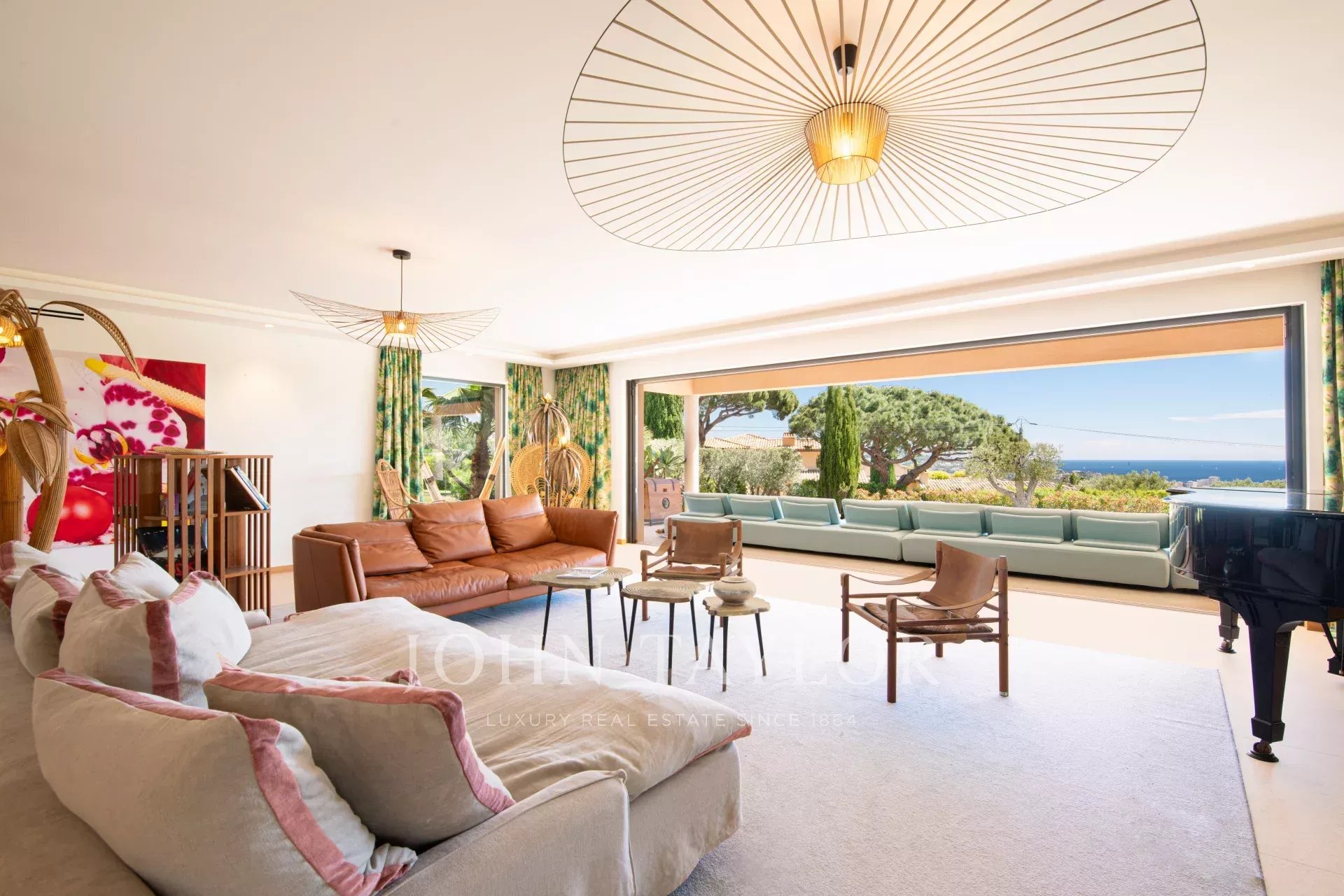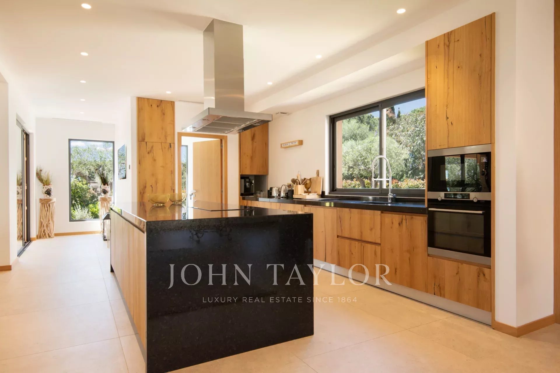 In a secluded estate 10 minutes' walk from the beaches of Sainte-Maxime, this family home offers sea views over the Gulf of Saint-Tropez and the hills of Grimaud.
