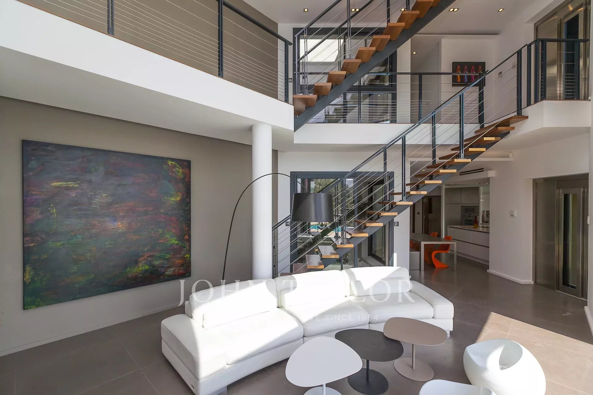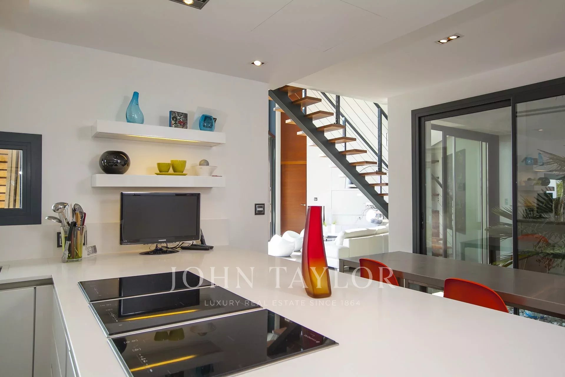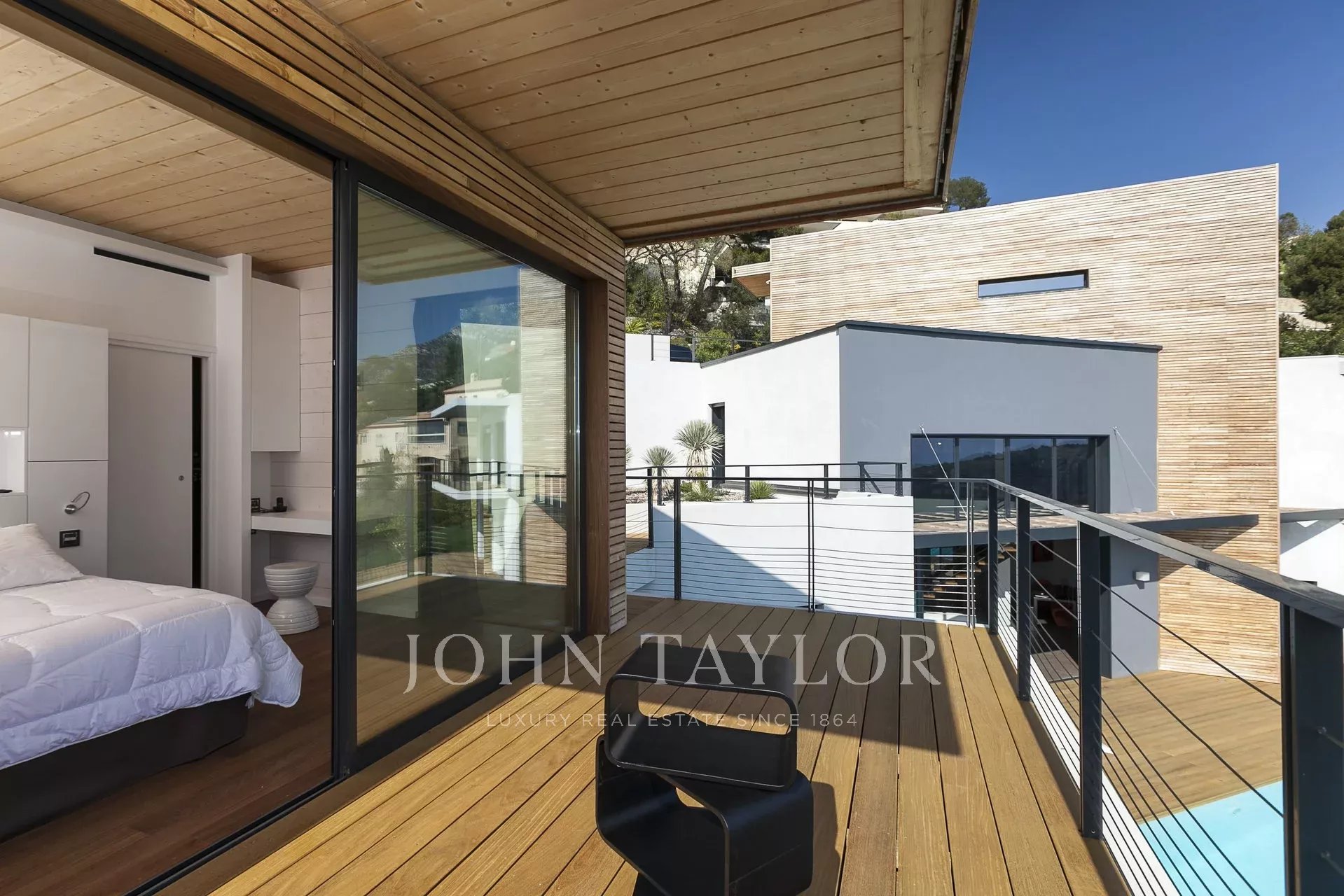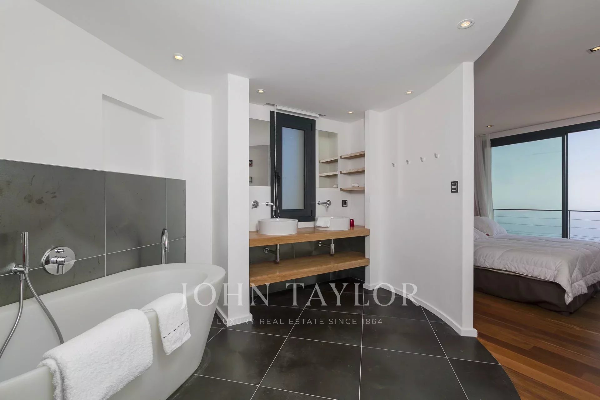 Superb contemporary villa of approximately 350 sq.m of living space set on a plot of land of approximately 2 200 sq.m, situated on the heights of Eze, in a residential area and offering a magnificent view over the sea and the hills. The villa consists of 5 bedrooms, each with a bath or shower room, a living room opening onto a large terrace with heated swimming pool, dining area, fully fitted kitchen with professional scullery.