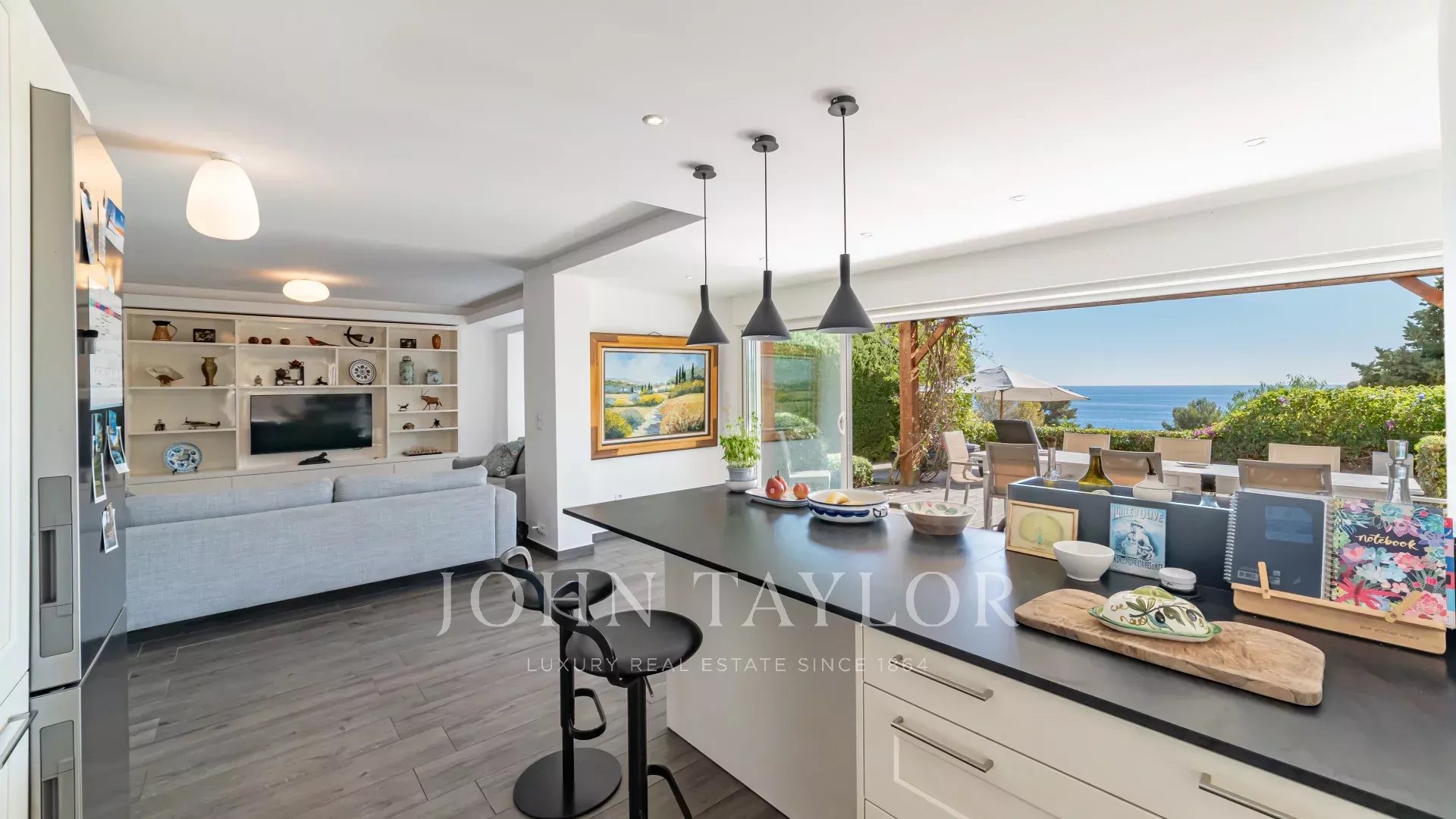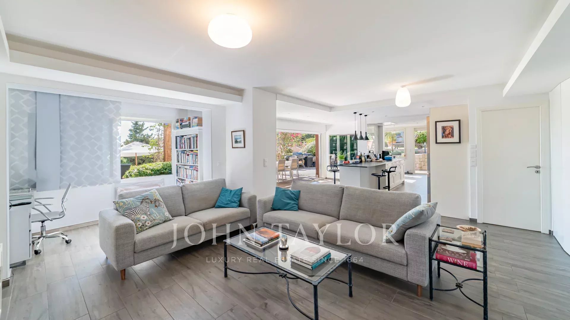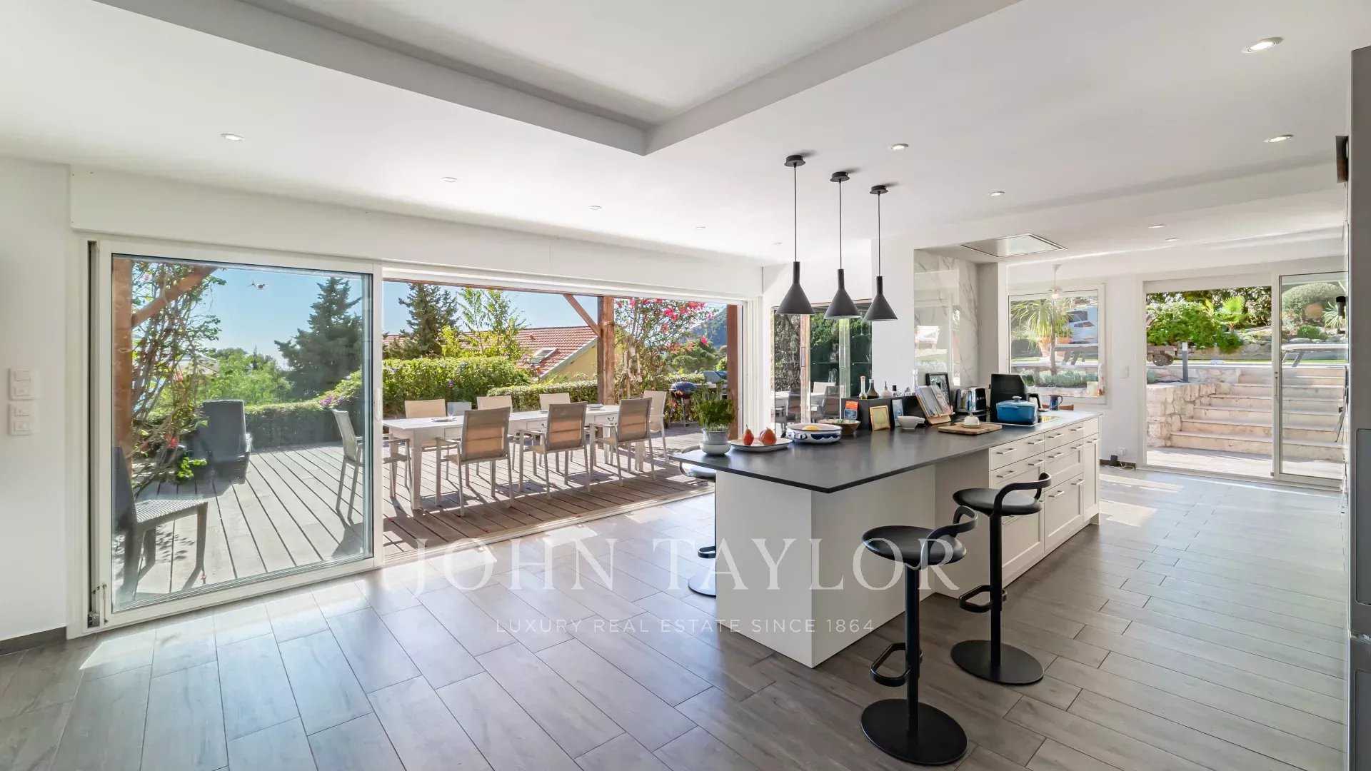 It comprises a living room with open-plan kitchen and bright dining room opening onto a terrace, 2 bedrooms each with en-suite shower room, and a beautiful living room opening onto the garden and private pool.