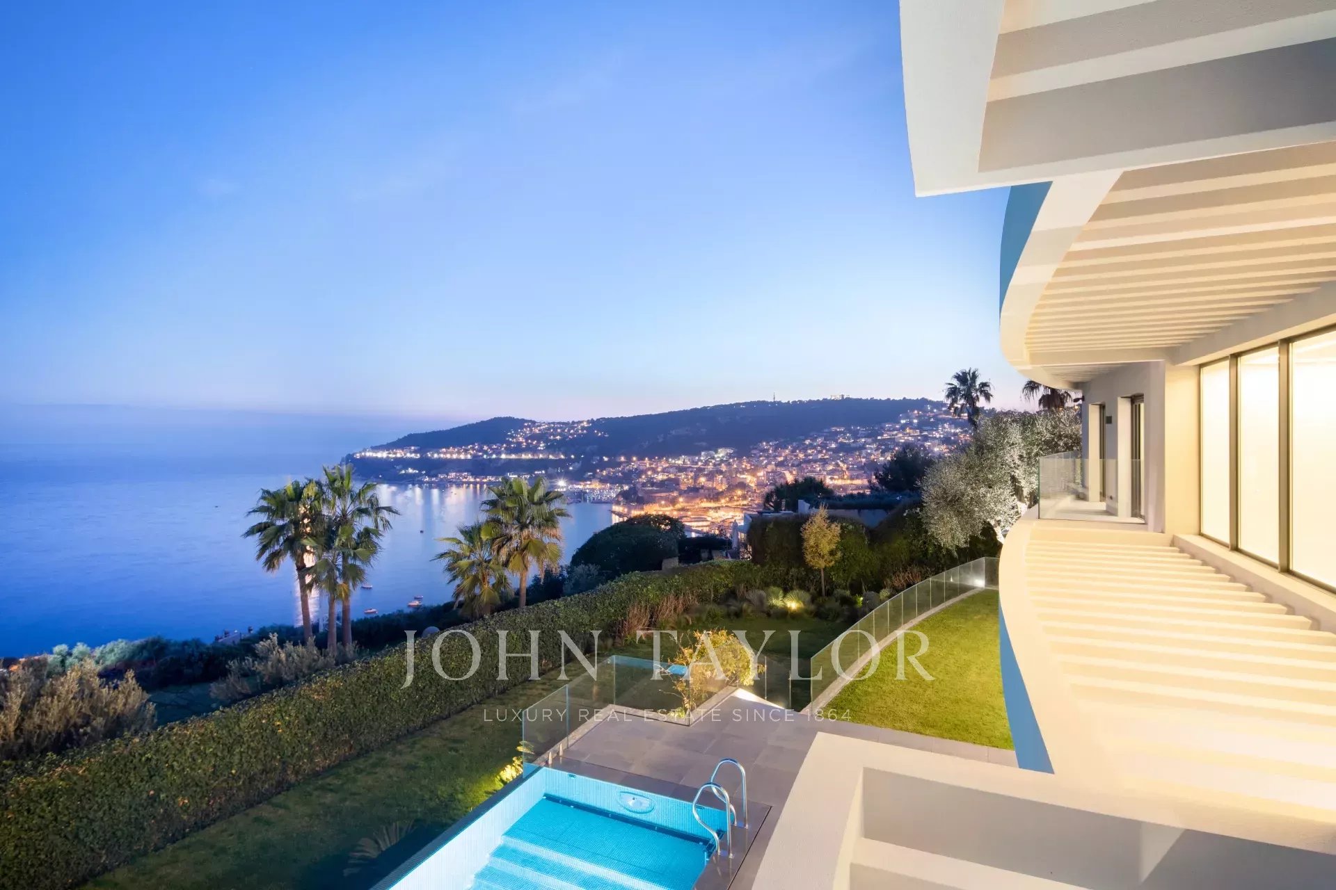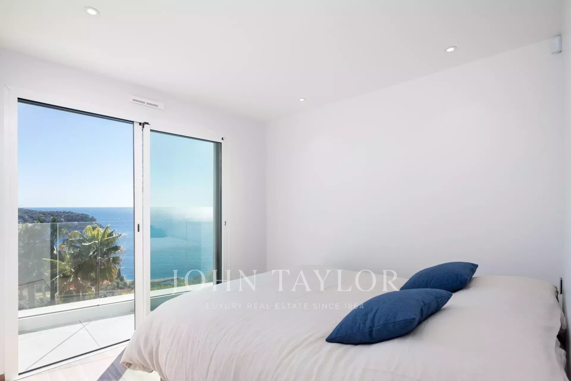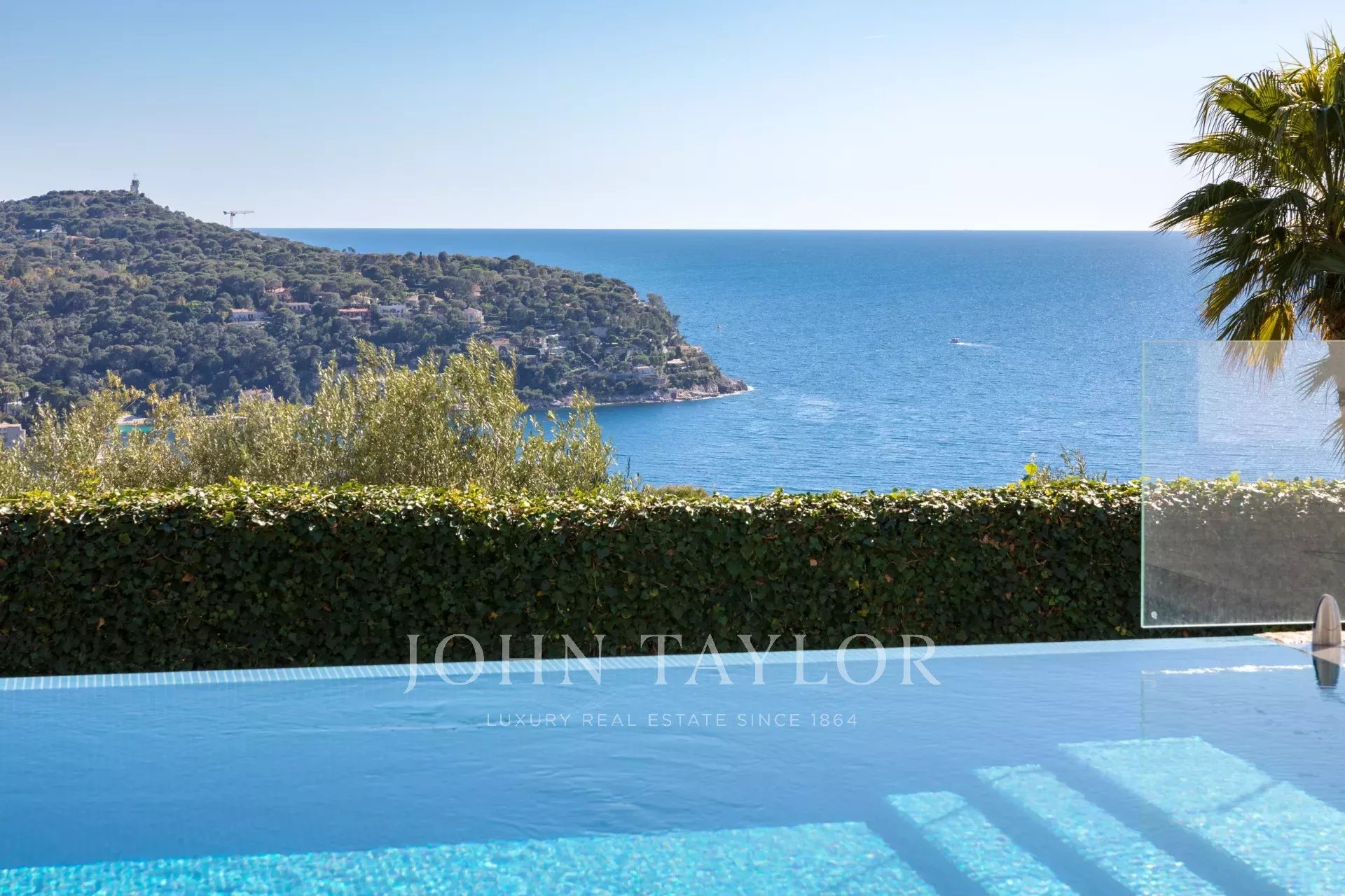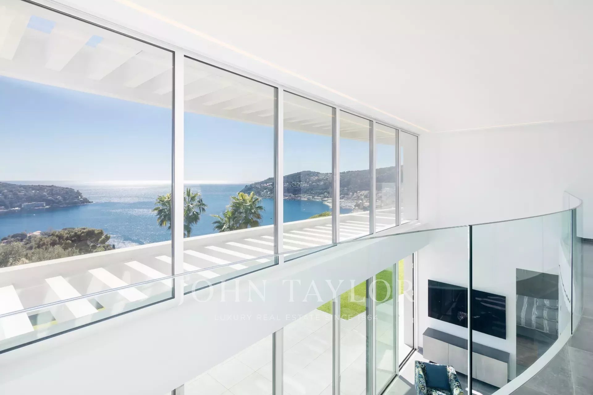 This magnificent contemporary property offers a panoramic view of the sea, the bay of Villefranche and Cap Ferrat.
