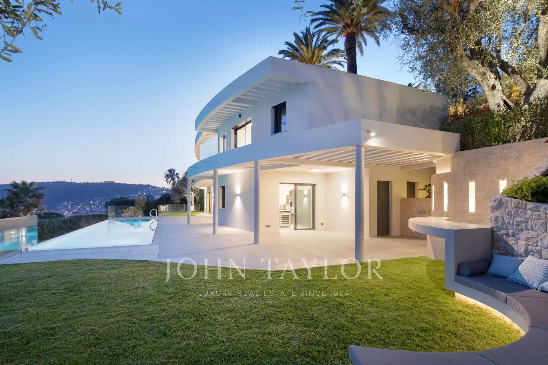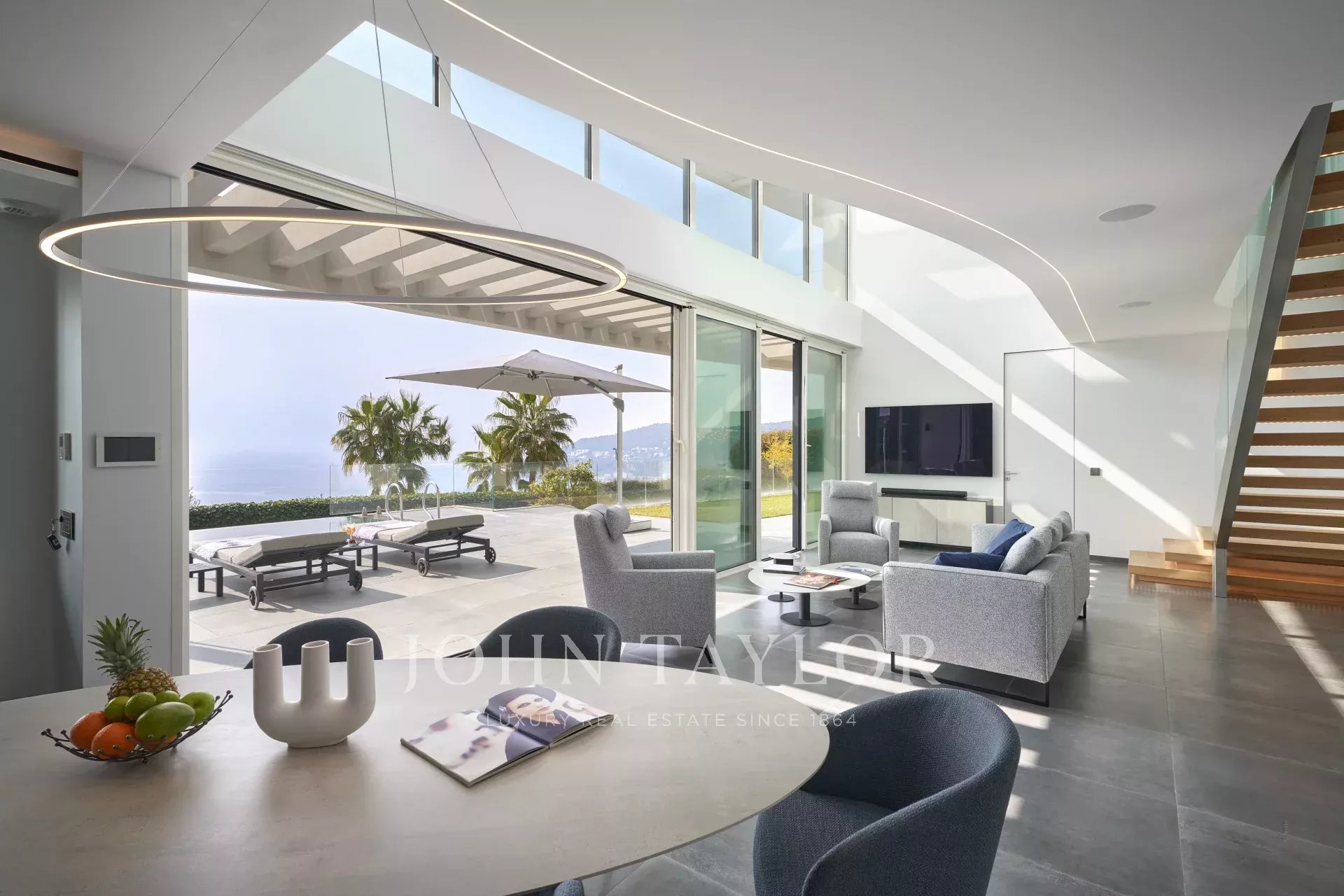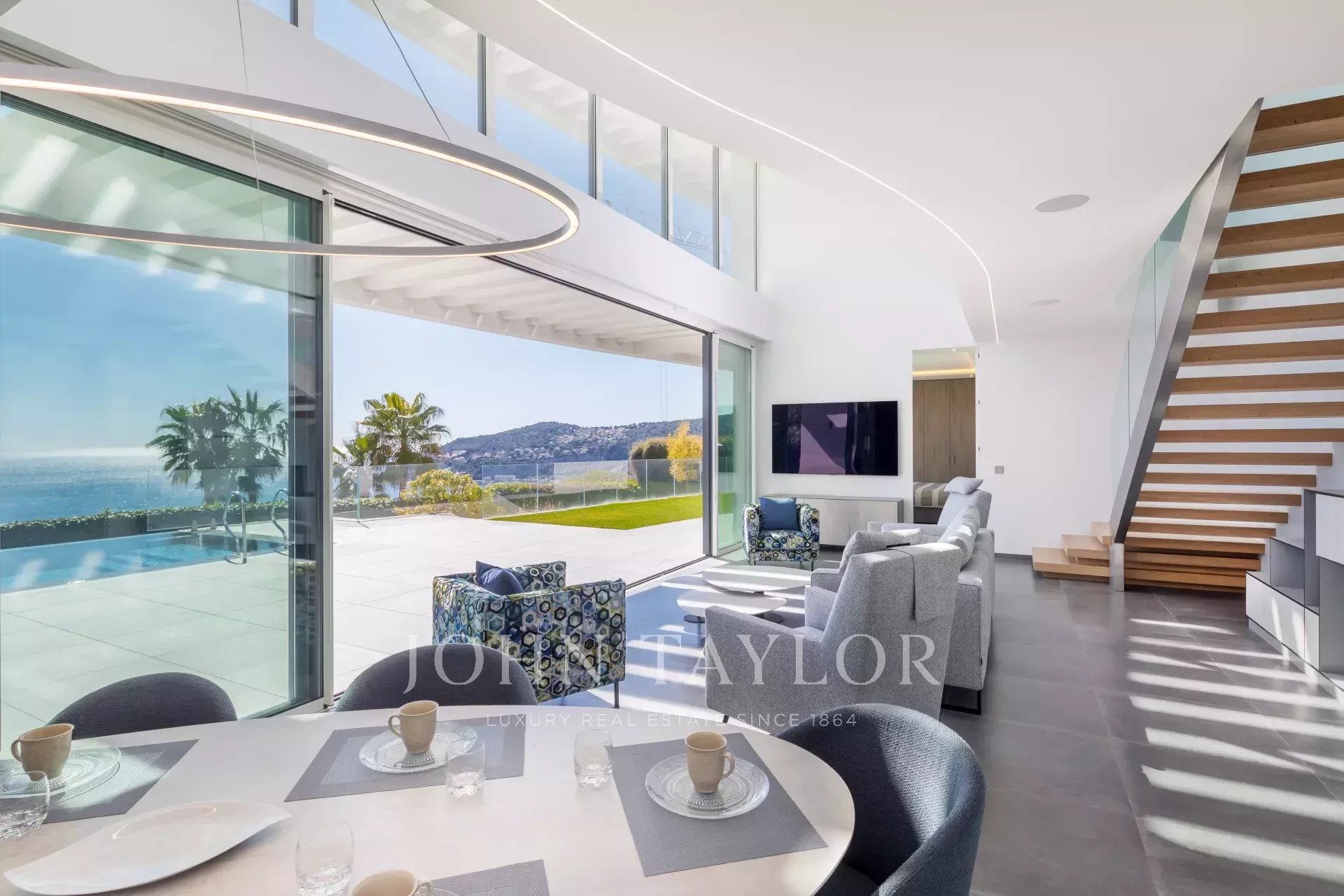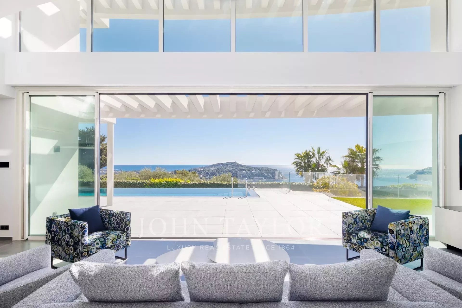 This magnificent contemporary property offers a panoramic view of the sea, the bay of Villefranche and Cap Ferrat.