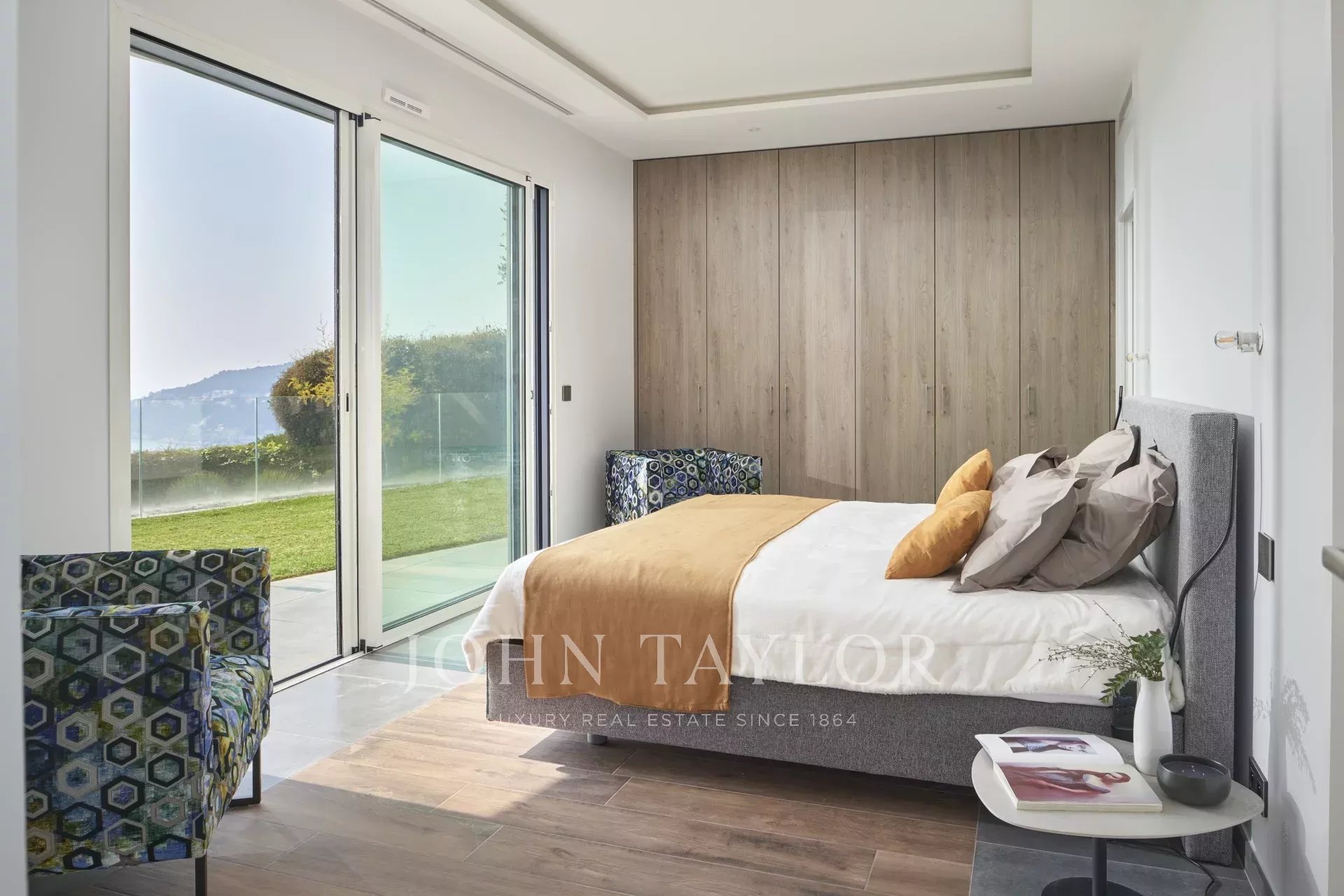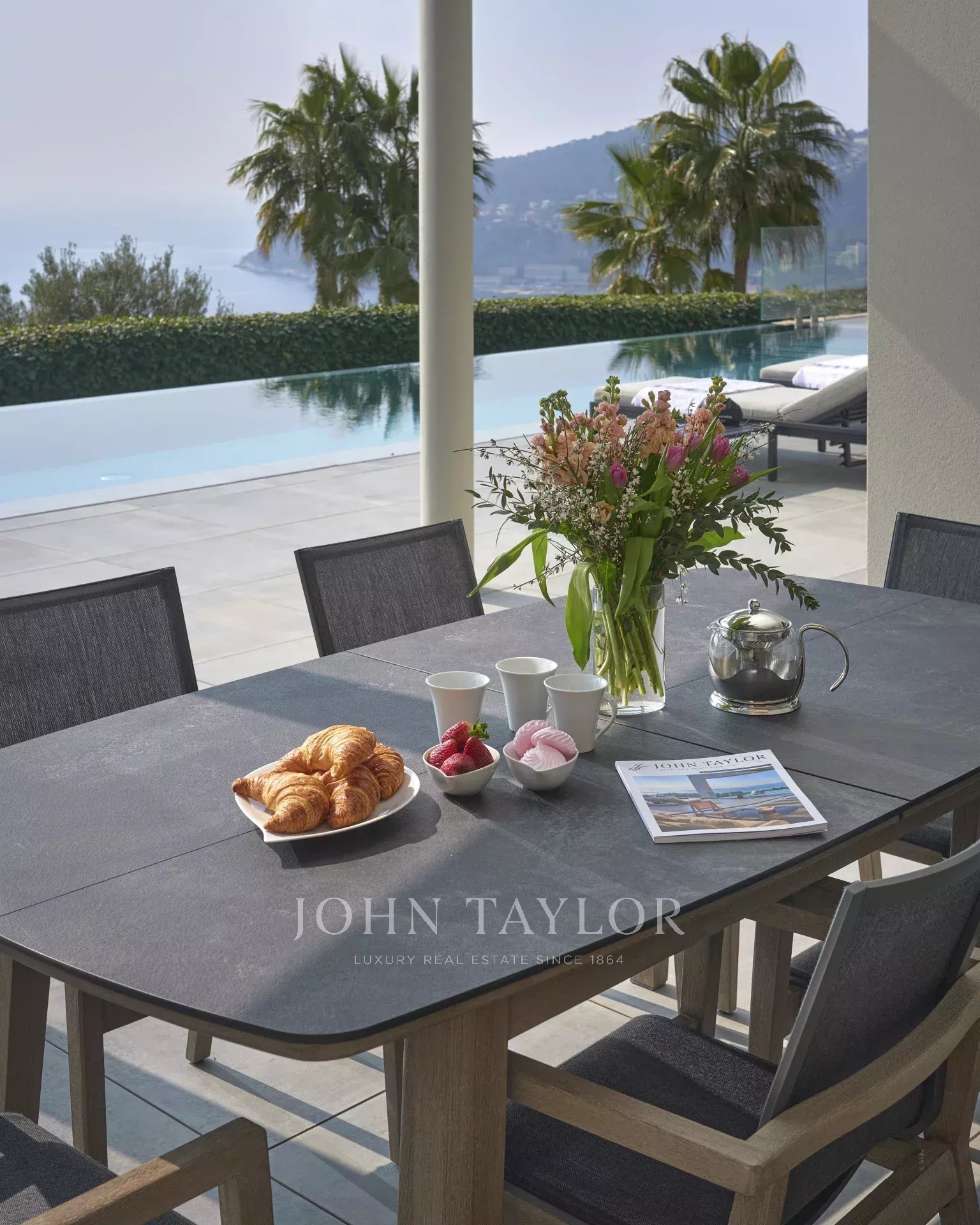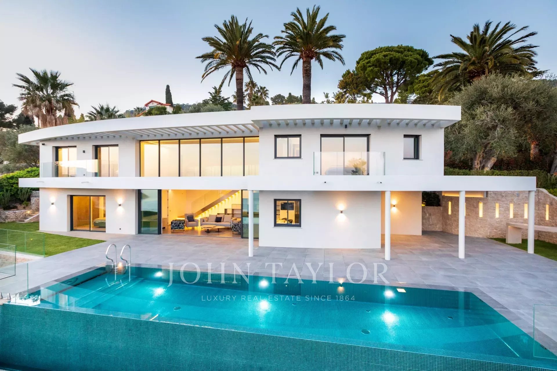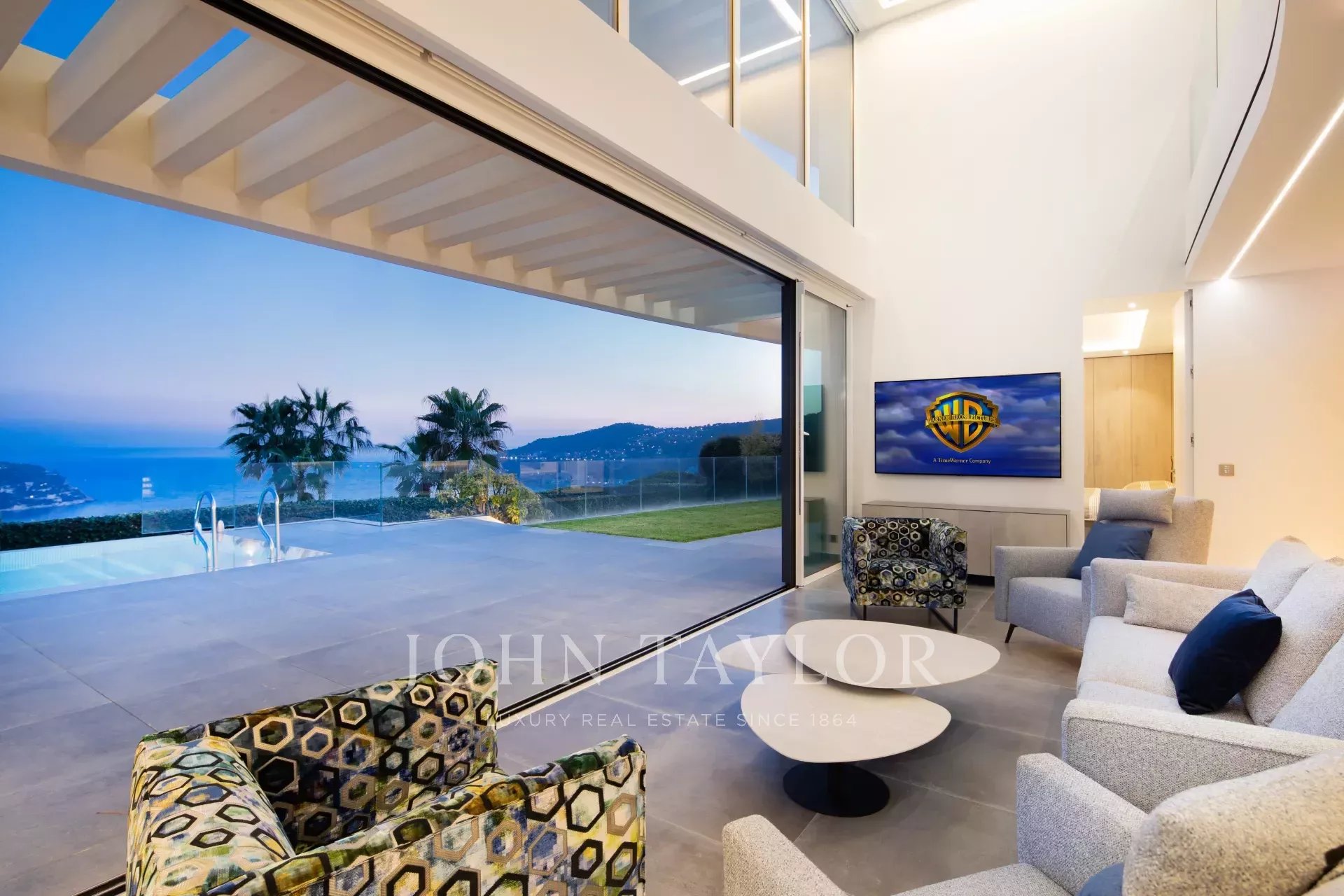 This magnificent contemporary property offers a panoramic view of the sea, the bay of Villefranche and Cap Ferrat.