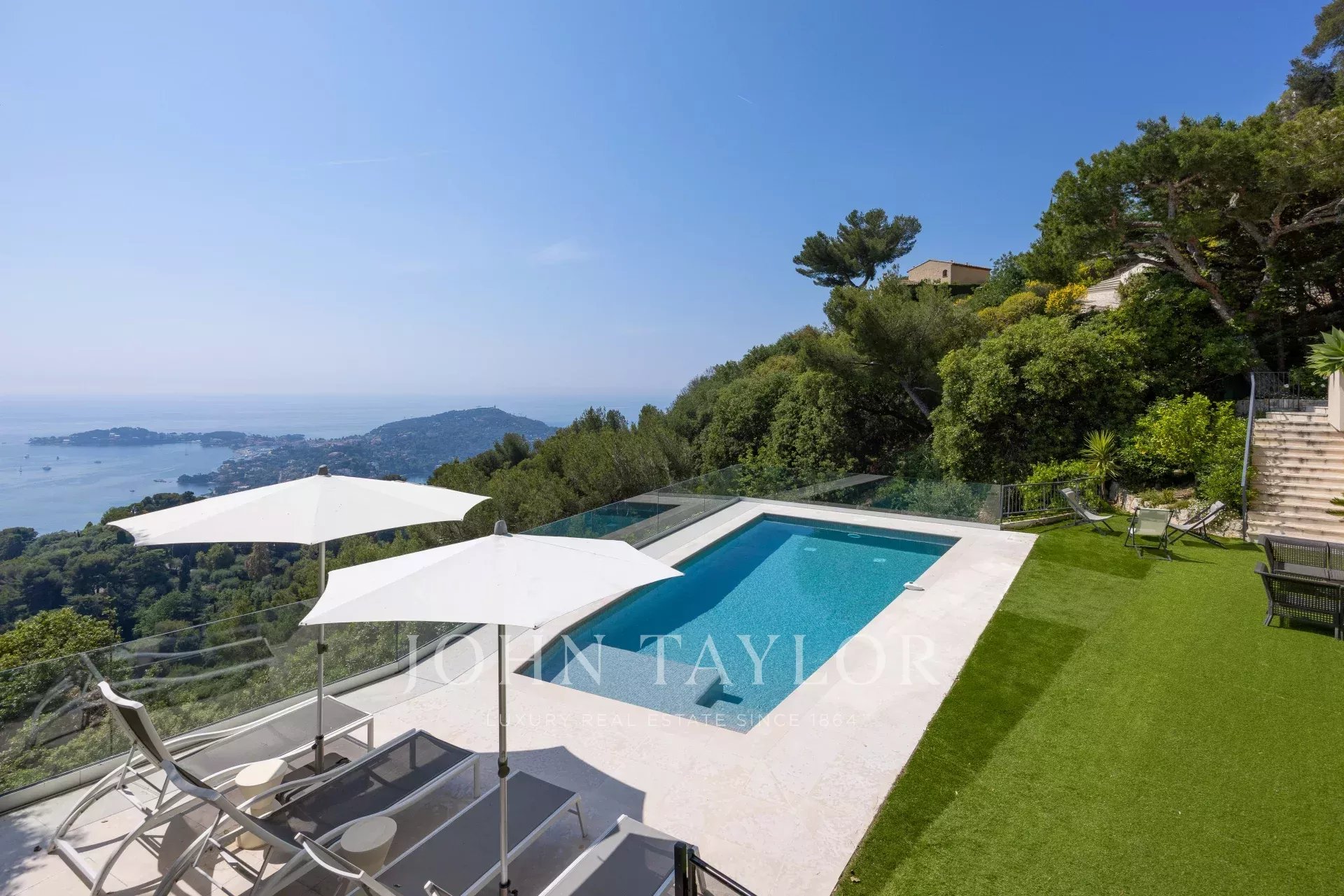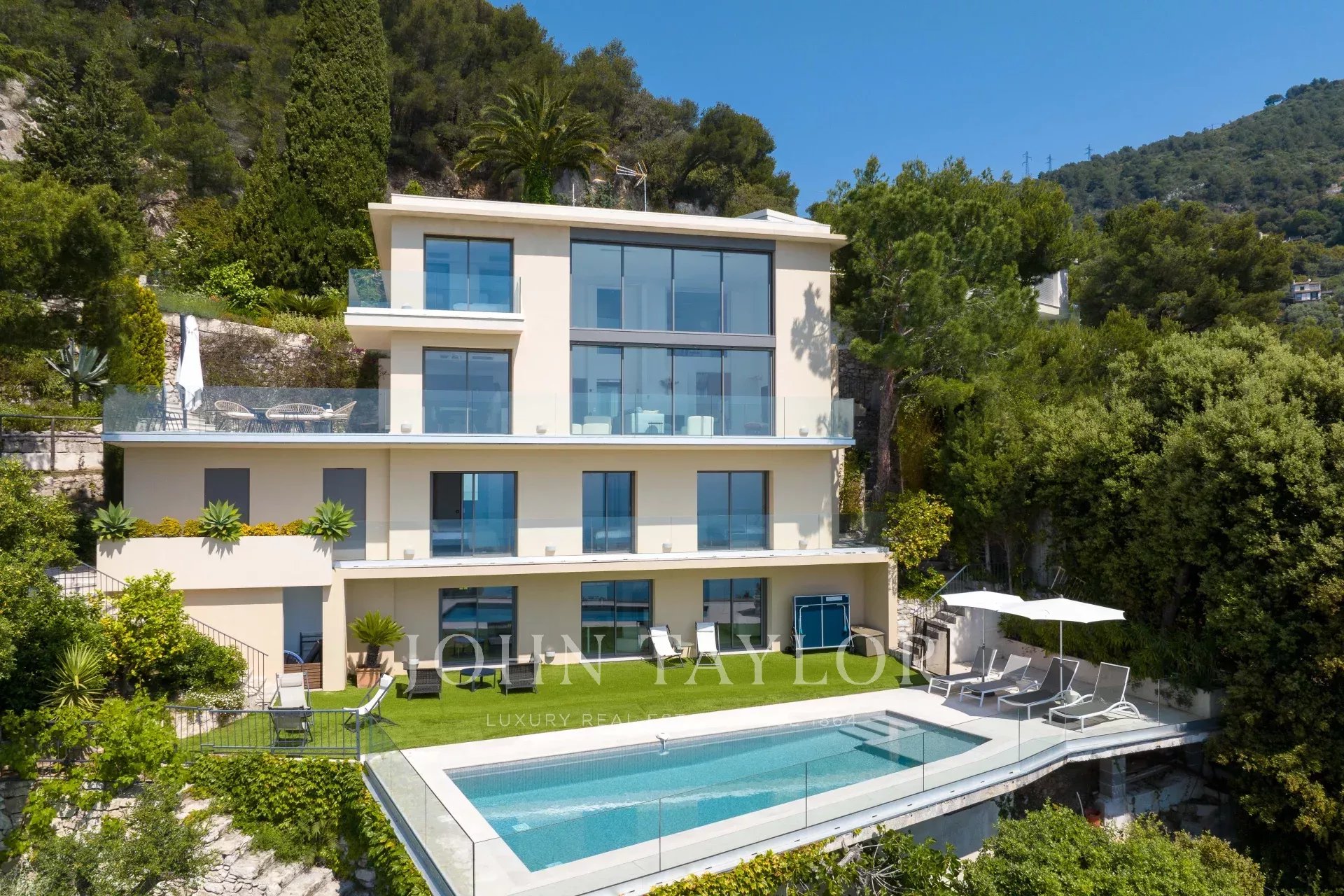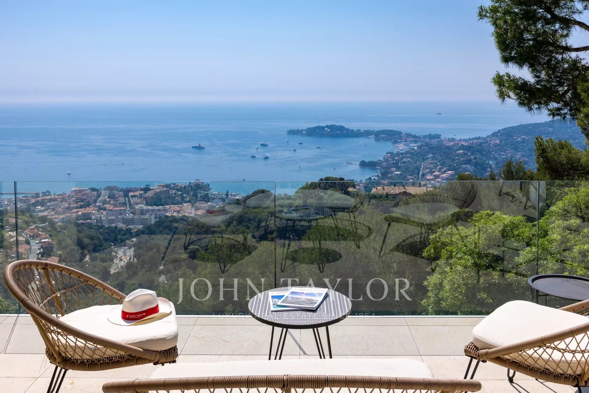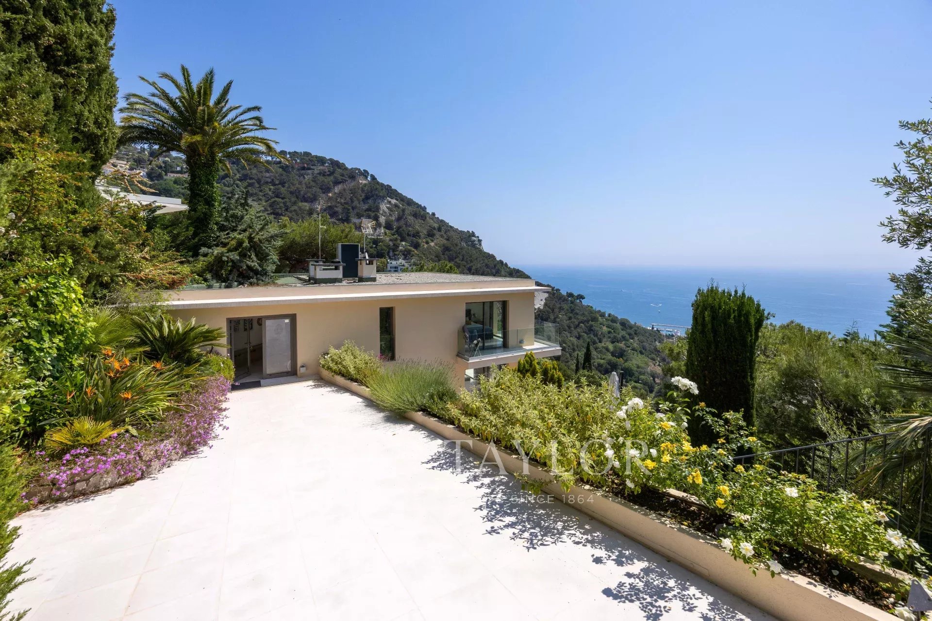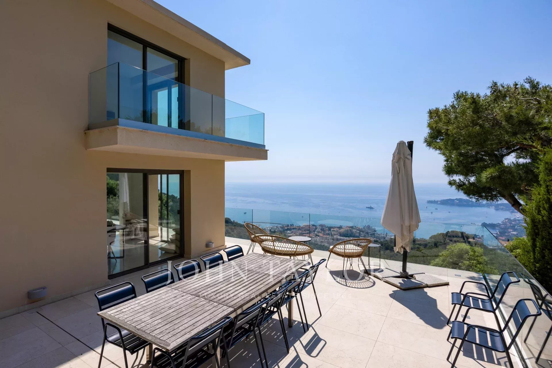 Superb modern villa on the heights of Villefranche with magnificent sea views.