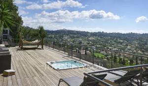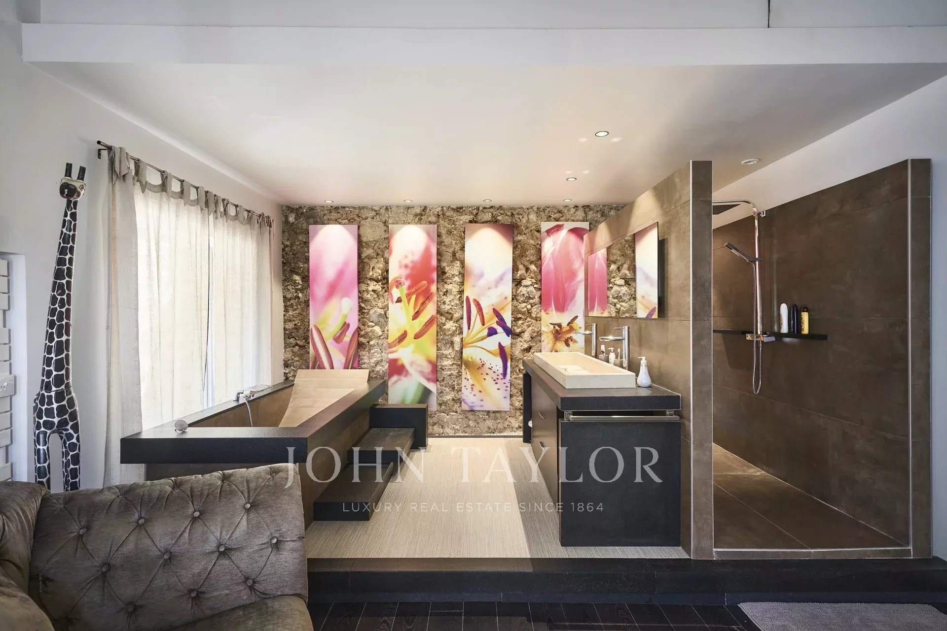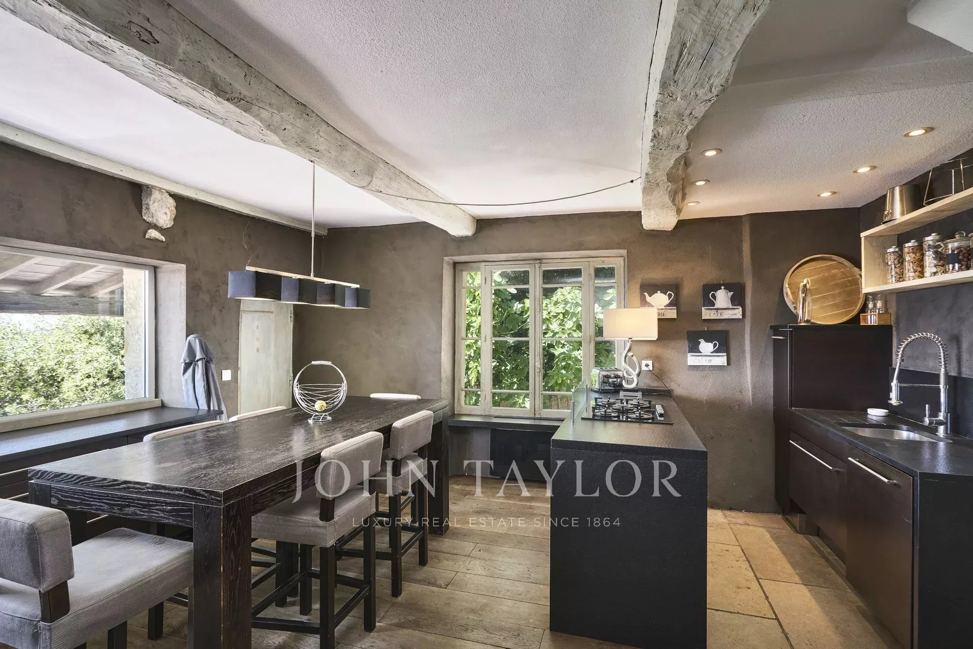 Perched on a hilltop with an enchanting view of the sea and the magnificent village of Saint Paul, this 285 m² former stone sheepfold on 3 hectares of land was renovated in 2006 with great refinement, while retaining its original charm.