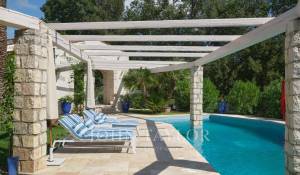 Accommodating up to 18 people, this beautiful air-conditioned villa has 7 bedrooms, an independent studio and 7 bathrooms, spread across large spaces designed for comfort and conviviality. The owners have created a chic yet relaxed atmosphere, with meticulous attention to detail and quality materials. Several terraces with different atmospheres invite you to relax, enjoy aperitifs with friends, read or simply take advantage of the magnificent swimming pool.