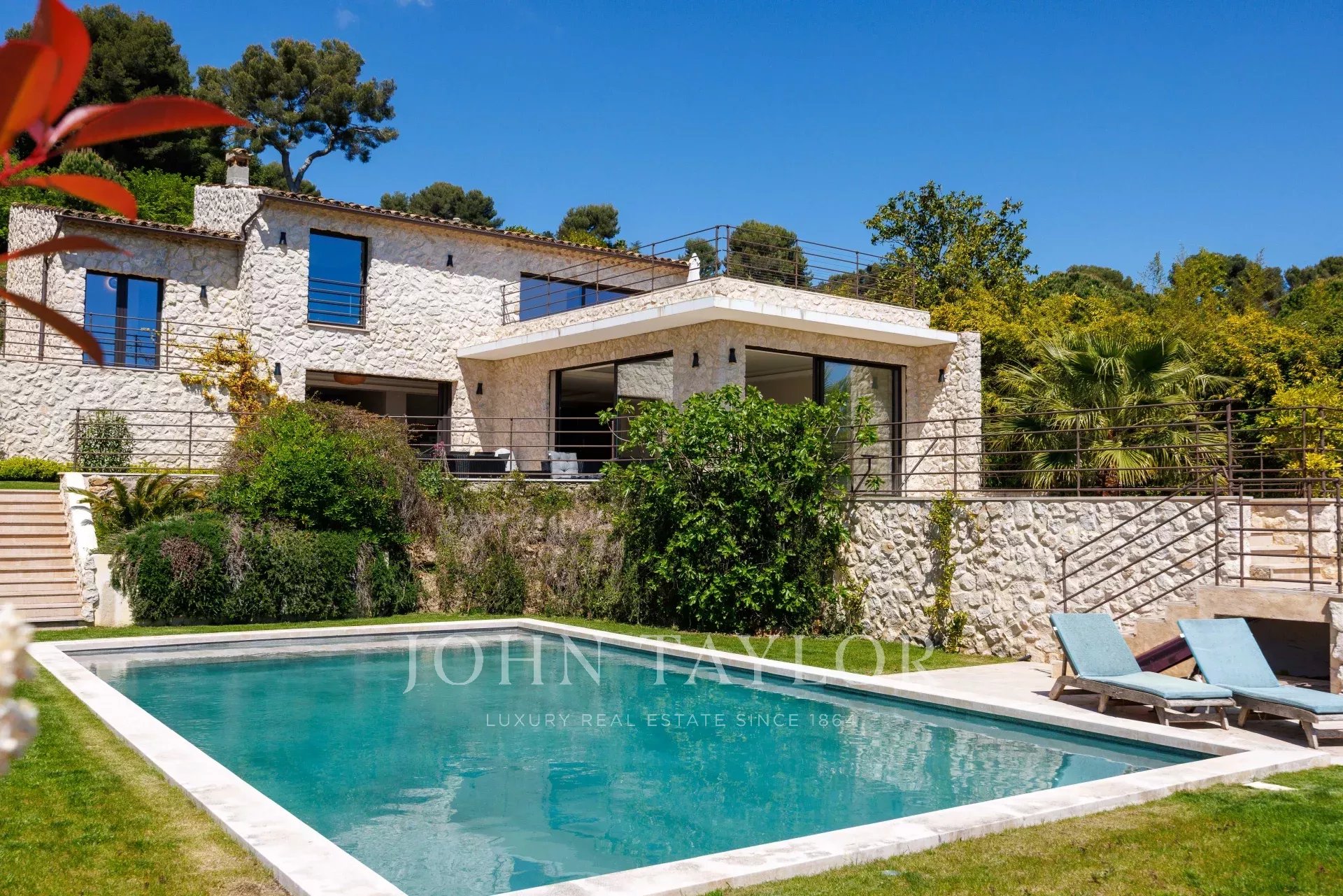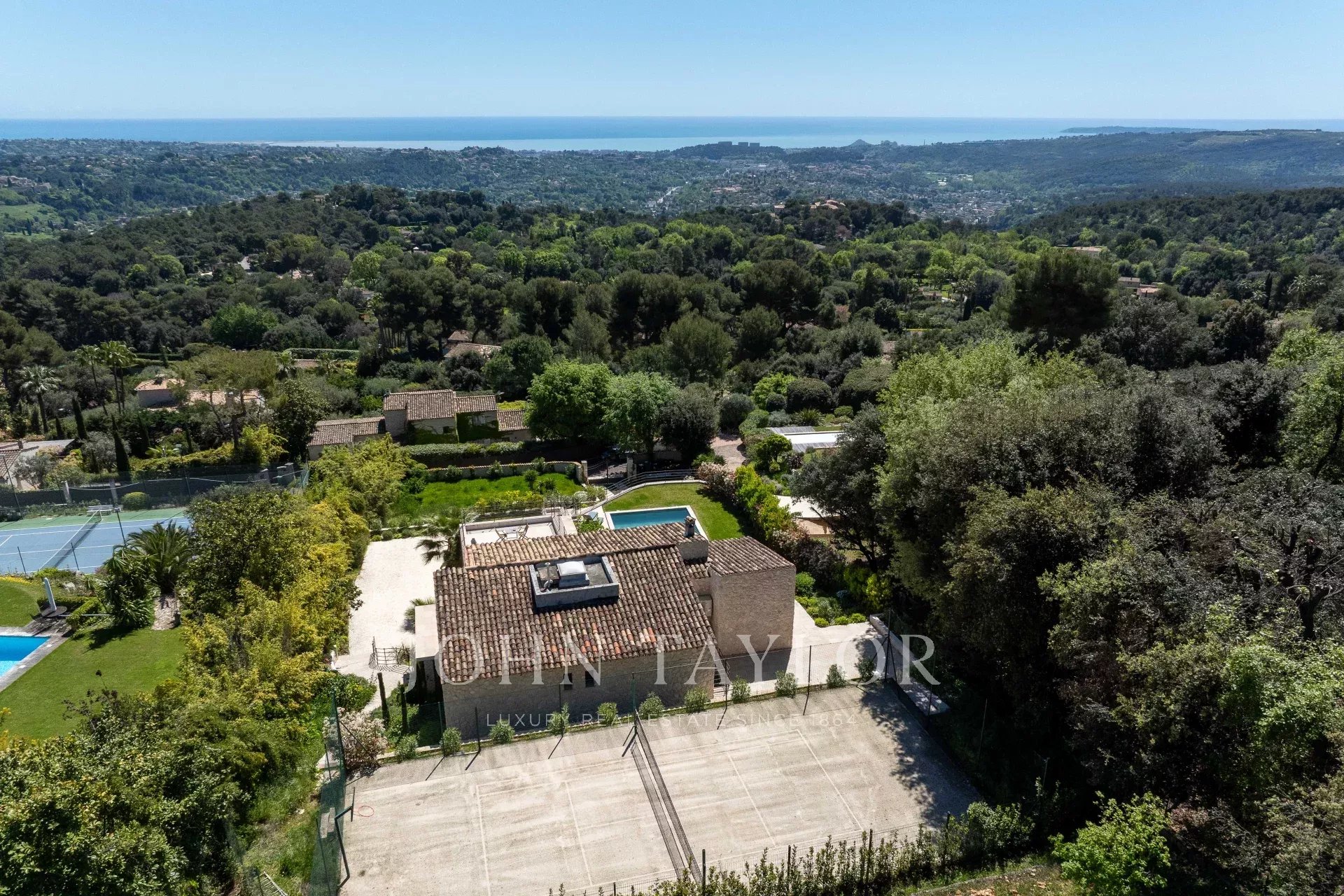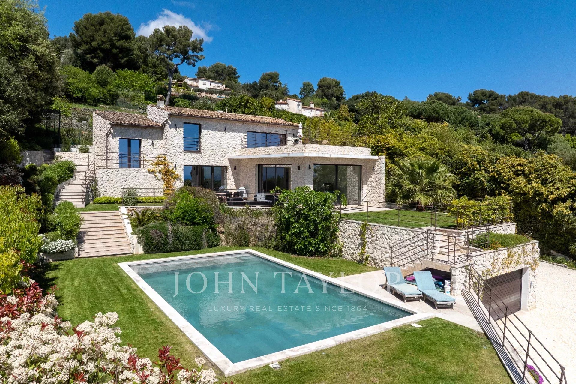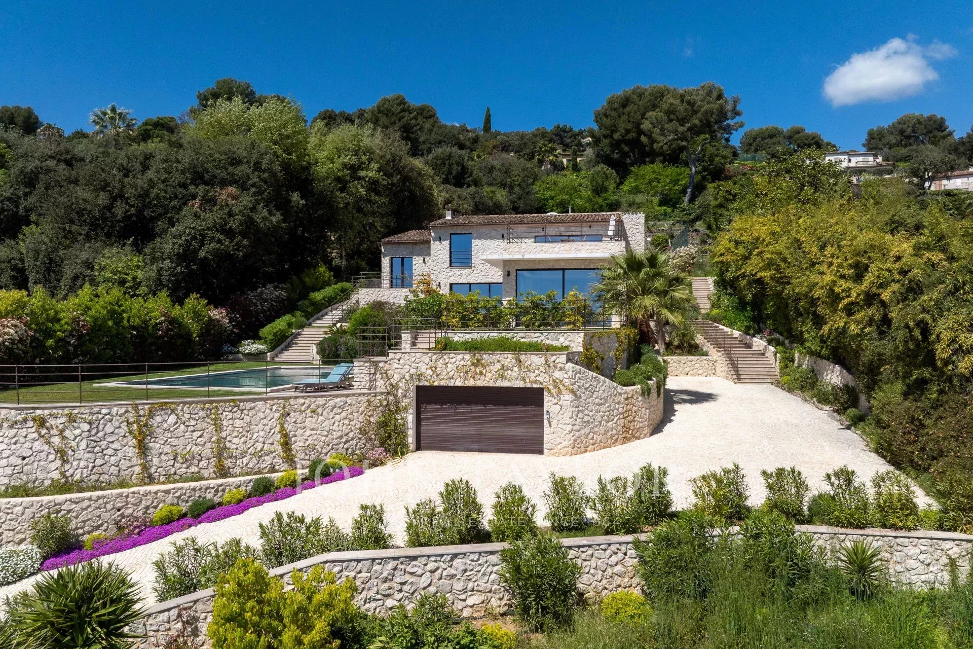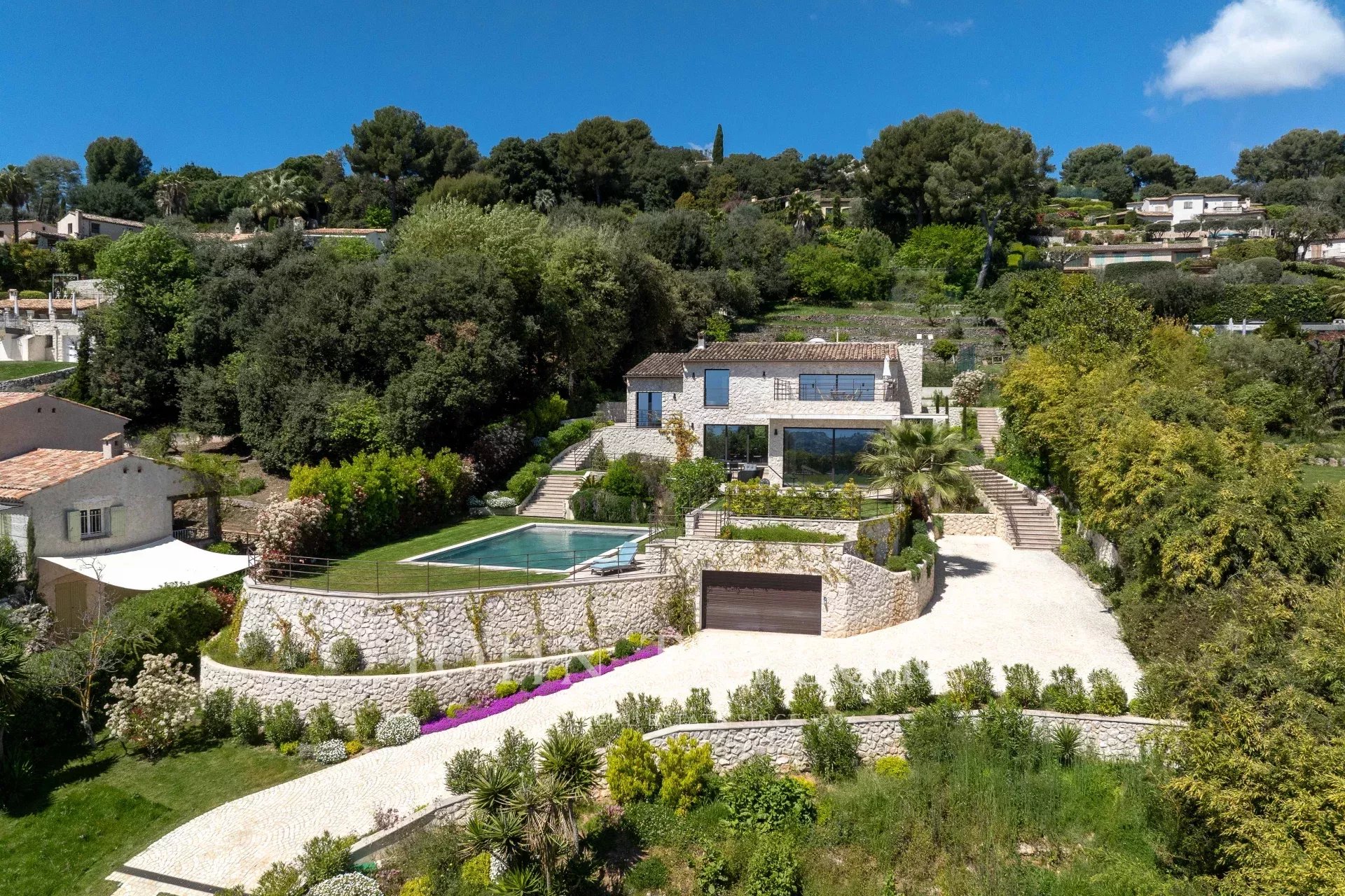 Located in one of the most prestigious areas of Saint-Paul de Vence, this superb stone villa of approx. 260 m² is set in 2,180 m² of landscaped grounds with swimming pool and tennis court. It boasts a breathtaking panoramic sea view over the French Riviera, offering an exceptional living environment combining elegance and serenity.