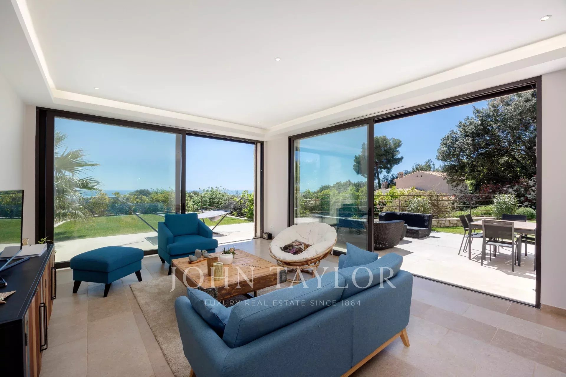 The villa also boasts a 30 m² double garage, a splendid swimming pool and a private tennis court, making this property a rare and sought-after commodity on the Côte d'Azur.