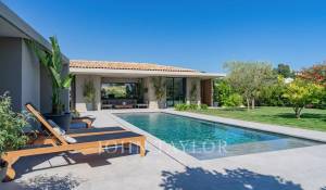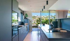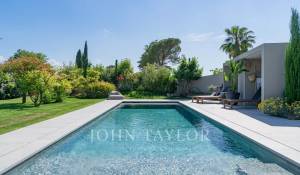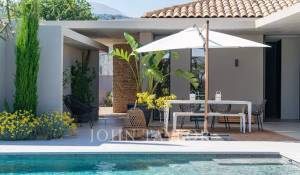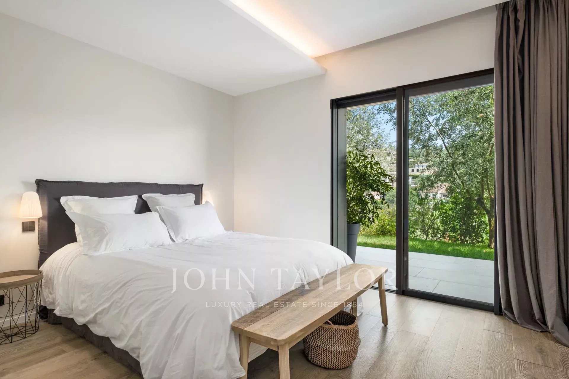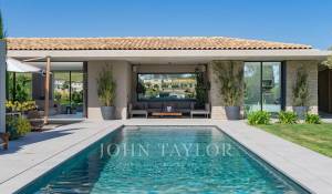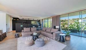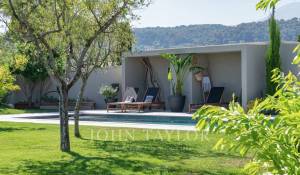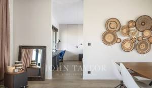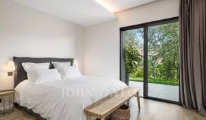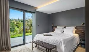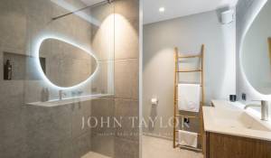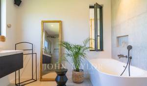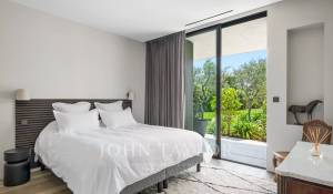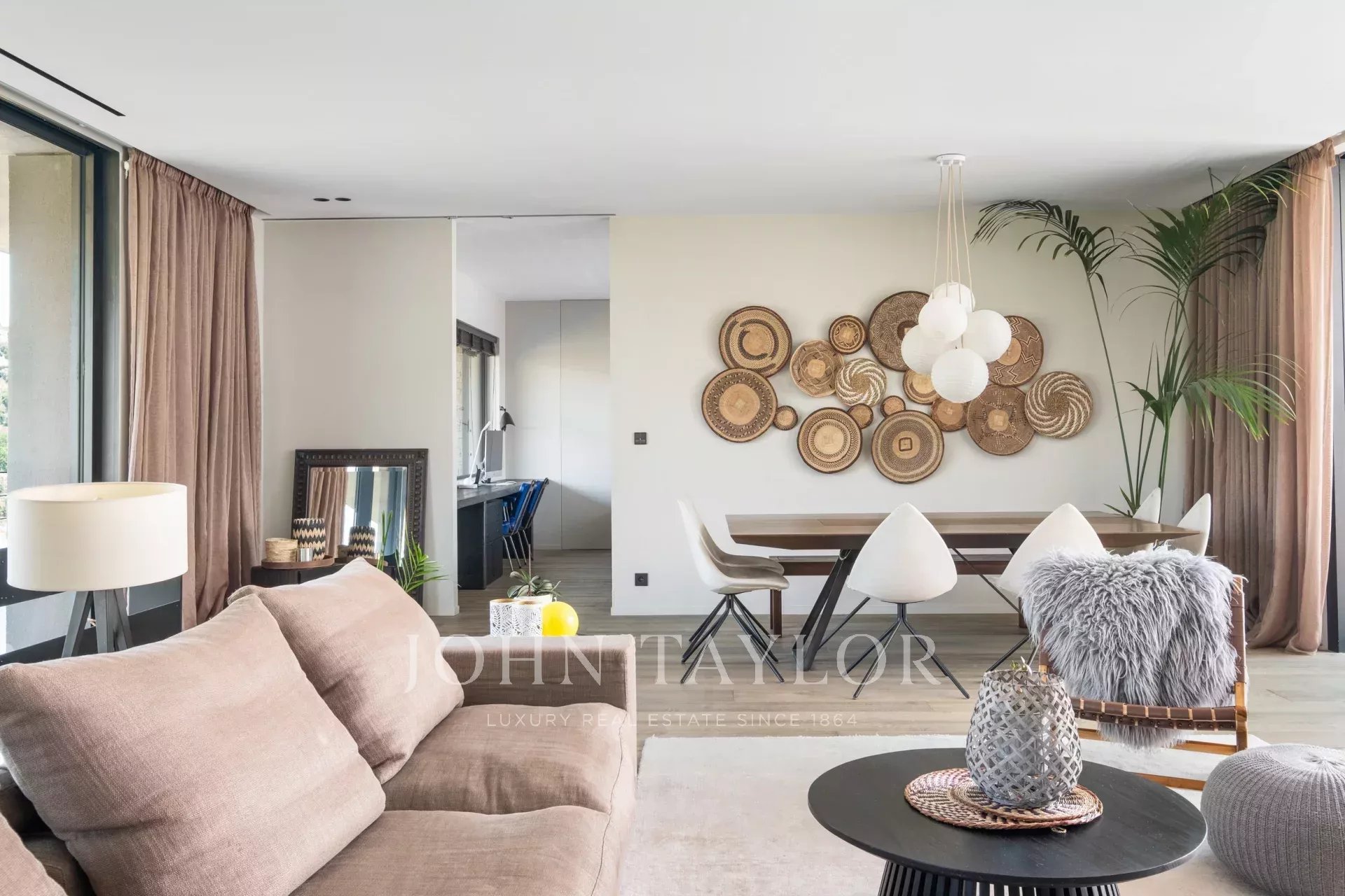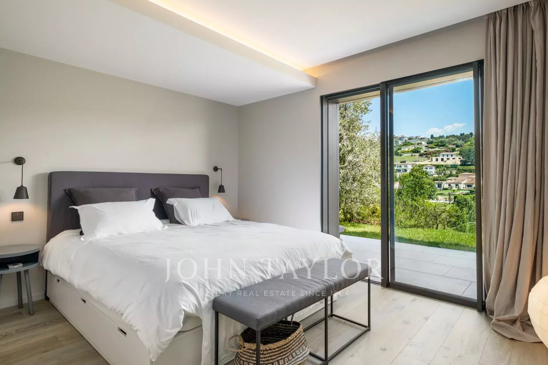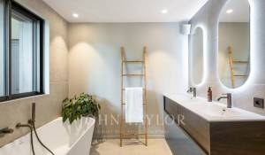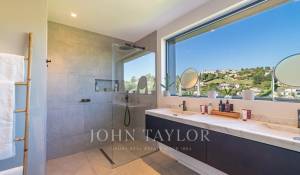 On the first floor, a spacious, light-filled living area with lounge, dining room and open kitchen invites you to relax and socialize. The view of Saint-Paul de Vence on one side and the pleasant terrace with swimming pool surrounded by a tropical garden on the other provide an idyllic setting. The master suite includes a study with a view, a dressing room, a bathroom with shower and bath, and direct access to one of the terraces.