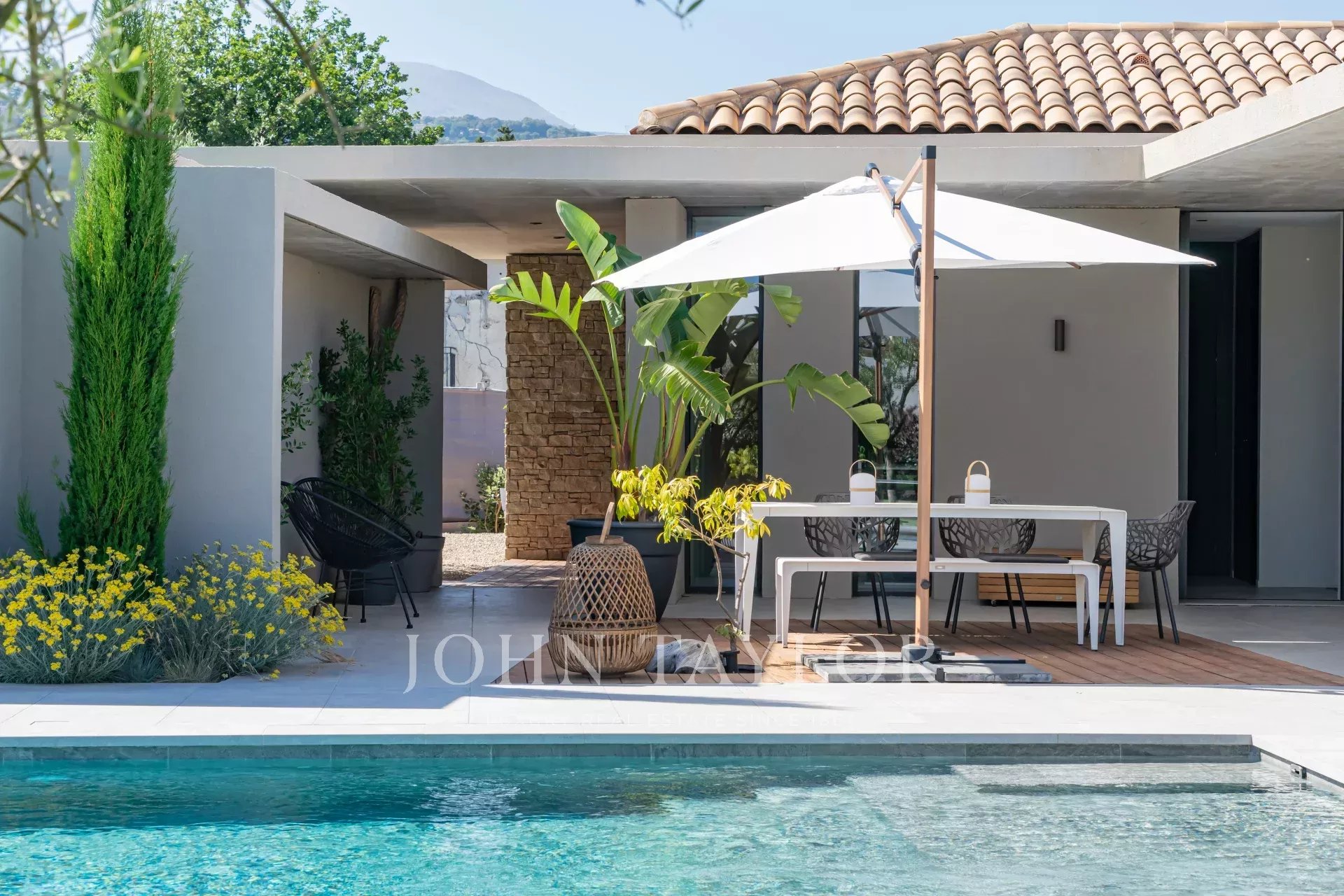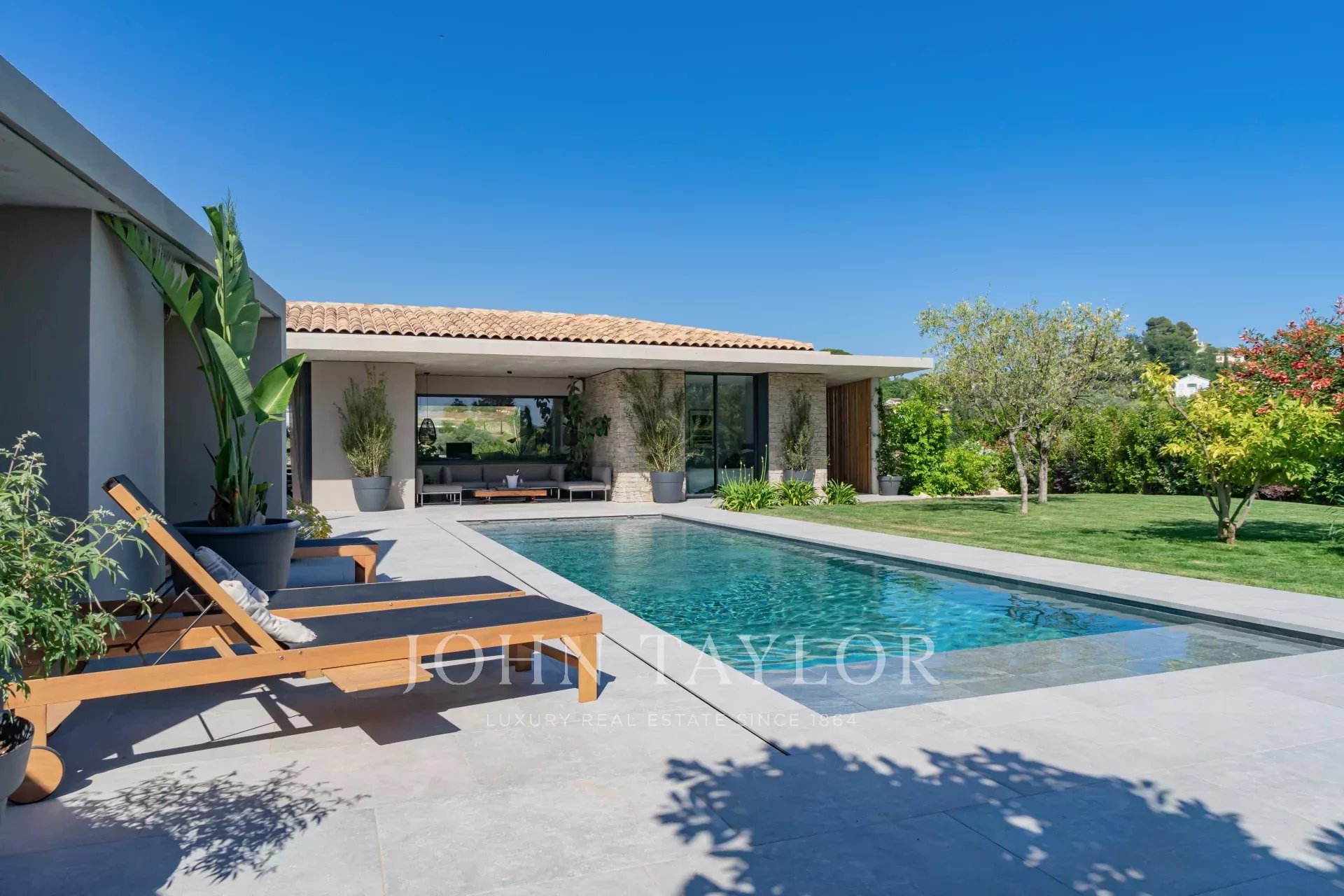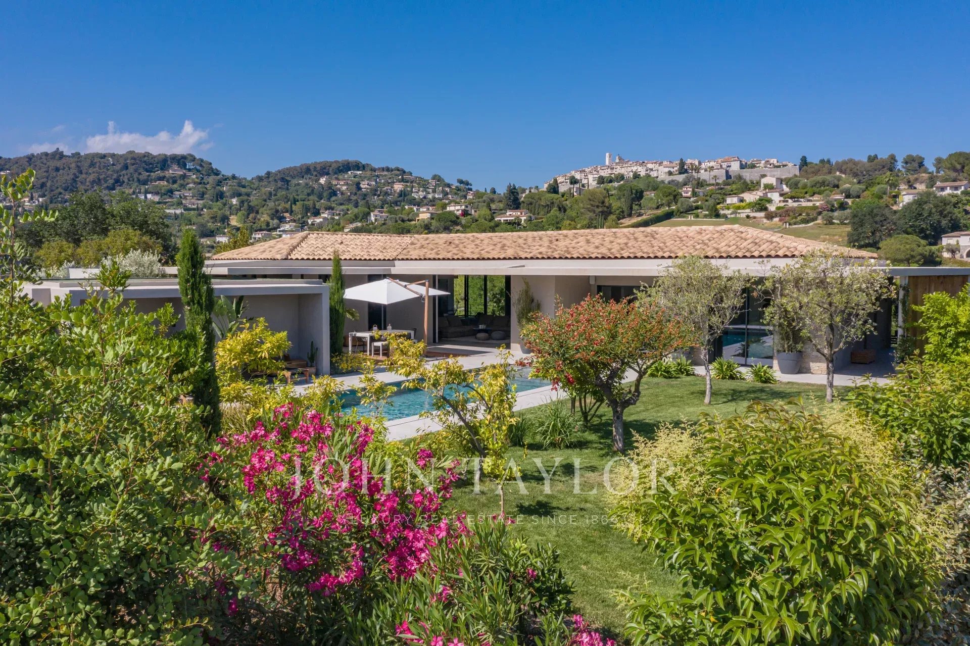 This contemporary villa, rated 5* by Atout France, offers a luxurious experience in a tropical setting with breathtaking views over the village of Saint-Paul de Vence.