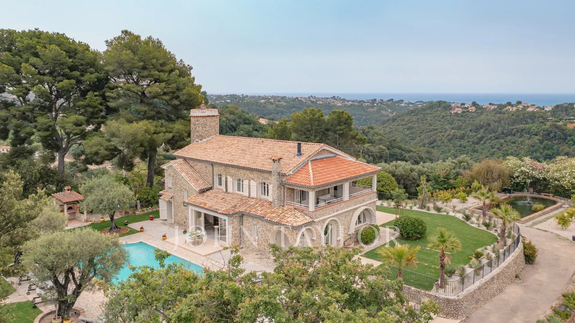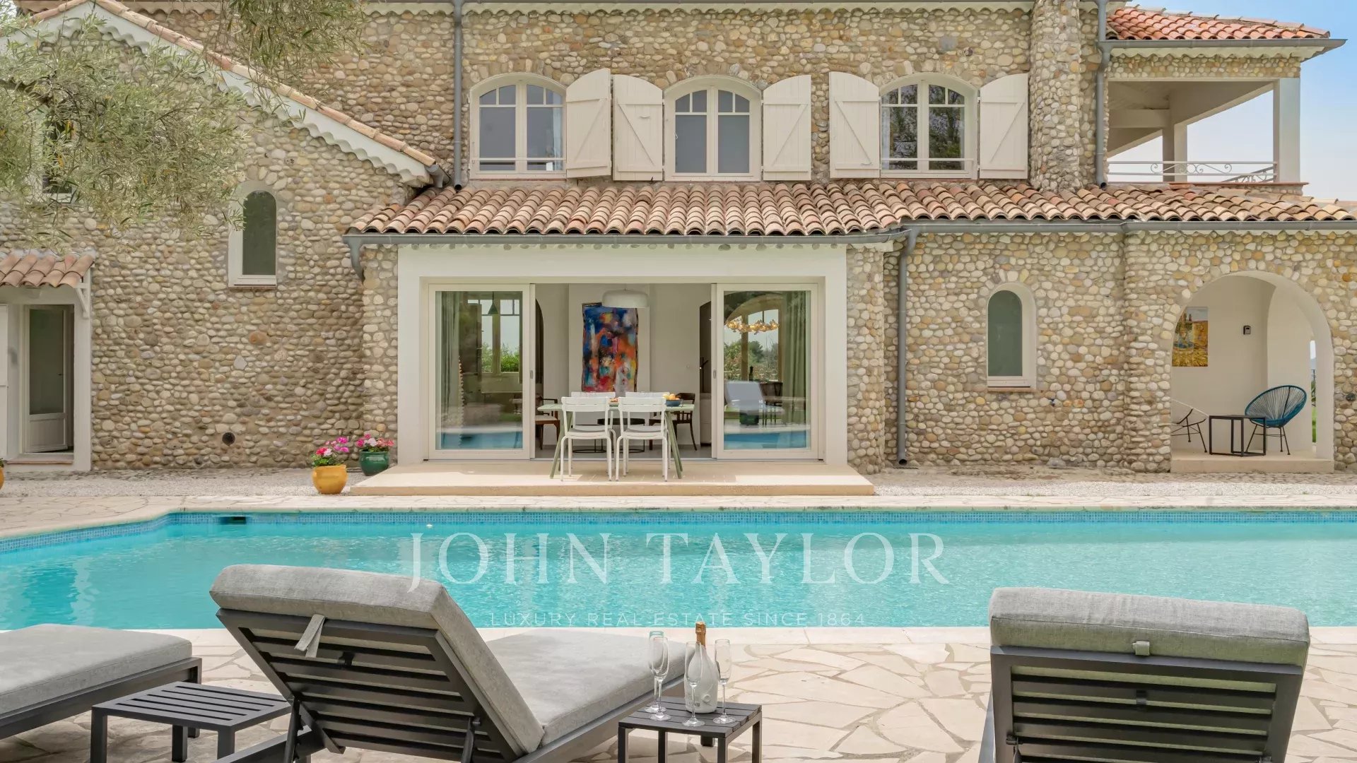 Discover this superb villa, located in an idyllic setting in Saint Paul de Vence, offering around 350 m² of living space (main house + 2 studio annexes), ideal for a large family or for those looking for spacious, comfortable living space.