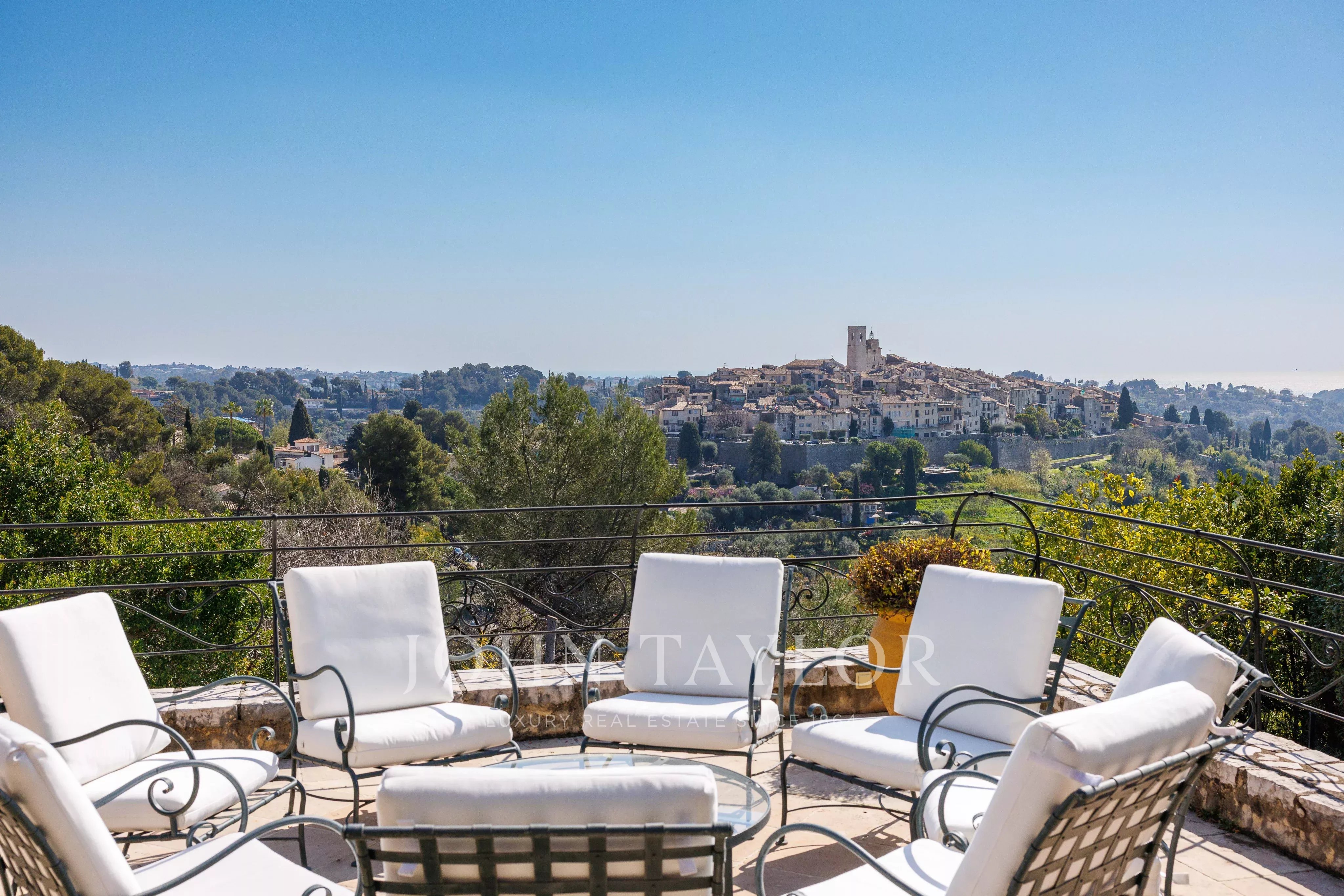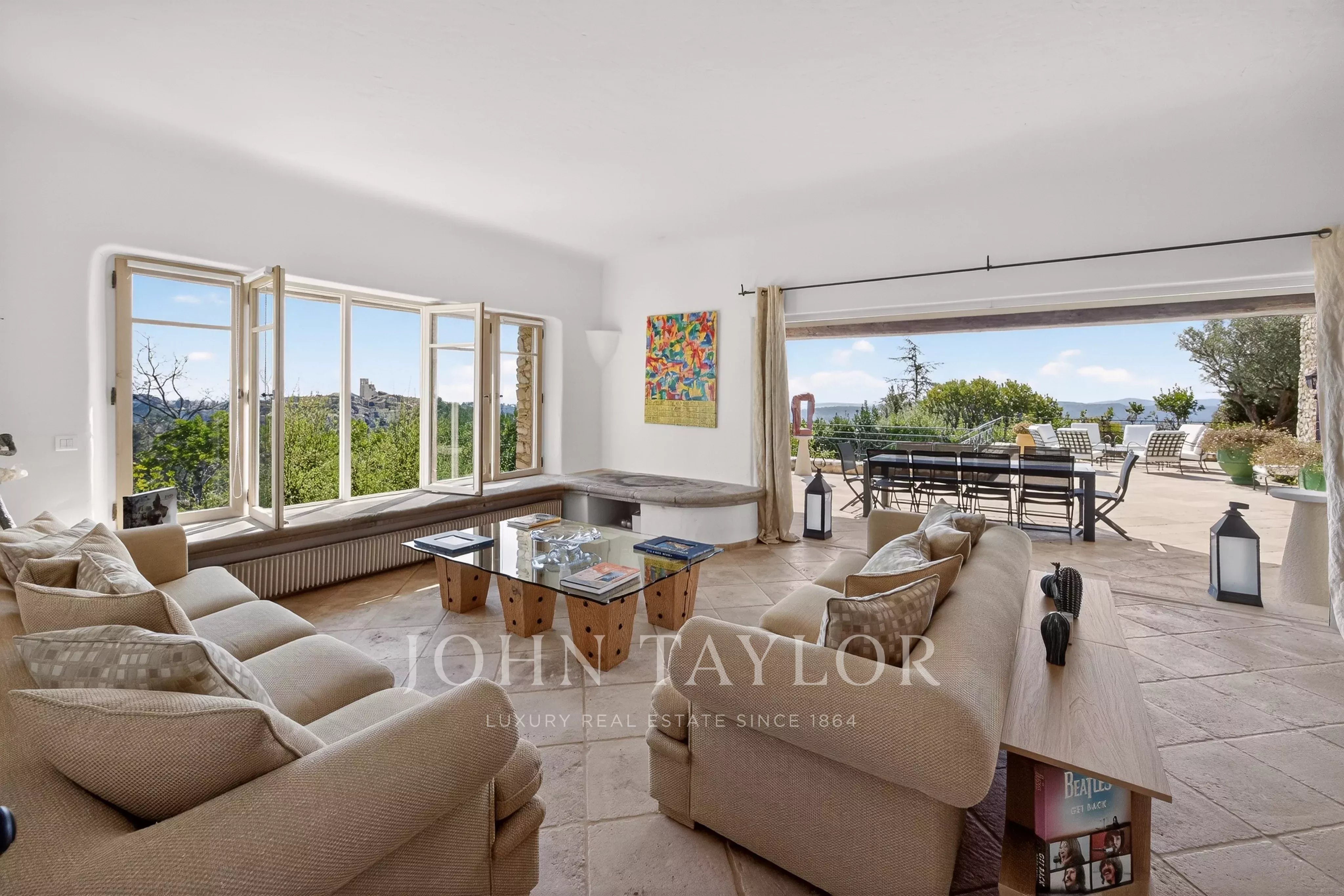 Located in a commanding and peaceful position, this superb stone property full of charm offers an exceptional view: the village of St Paul on the left and the sea in the distance.