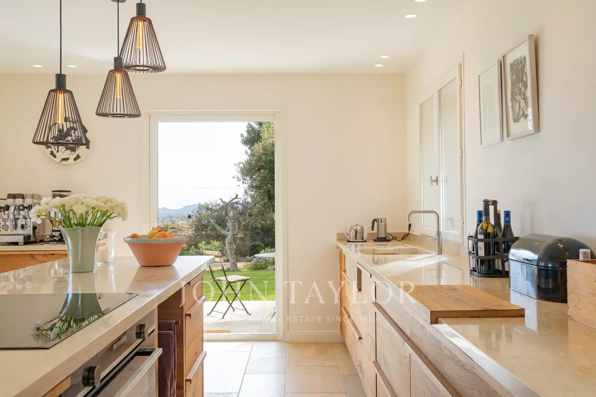 First floor: Entrance hall, living room, dining room opening onto the terrace facing the sea, large fully-equipped open-plan kitchen, extended by a pleasant covered terrace with barbecue on the same level as the garden.