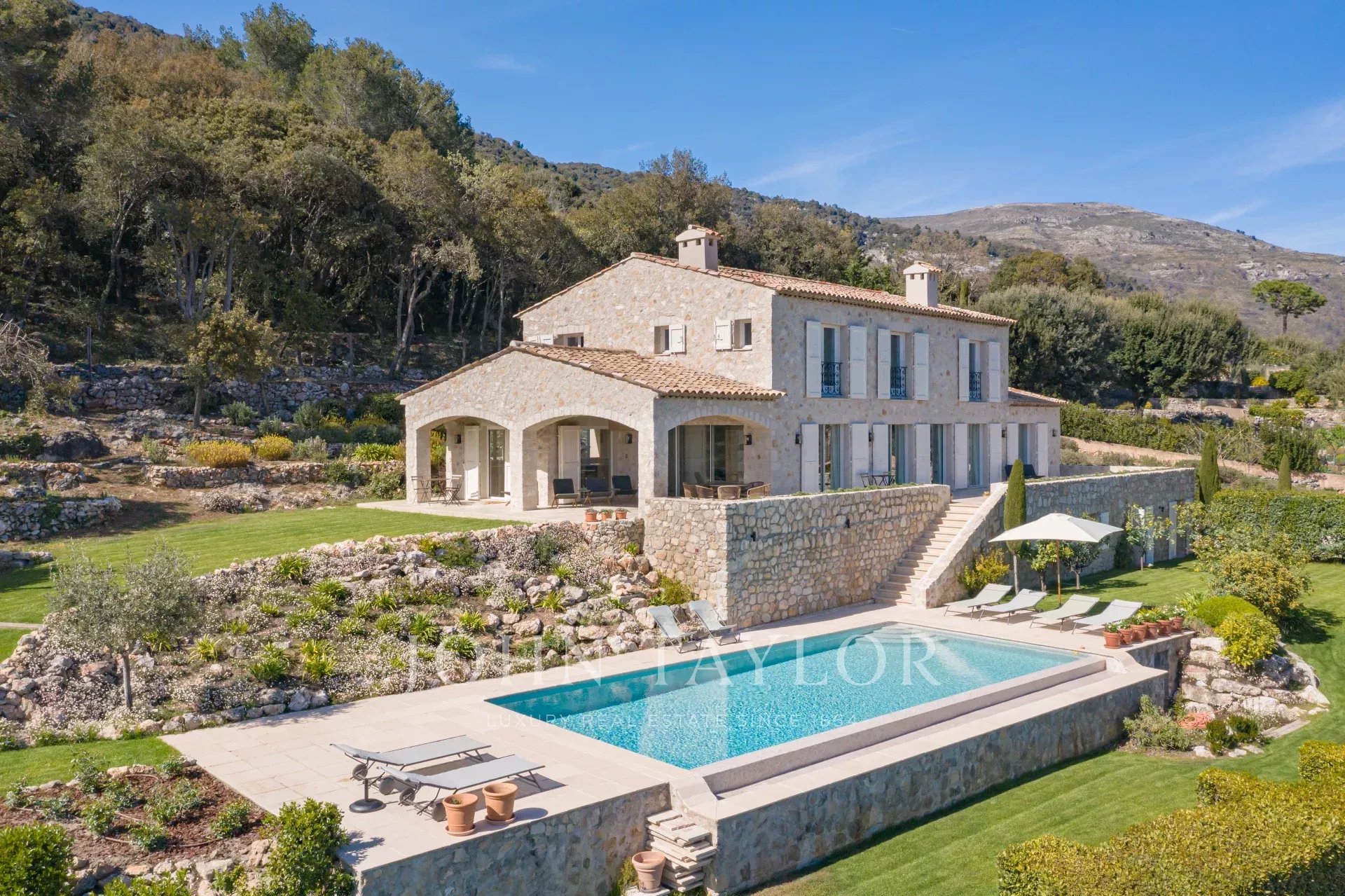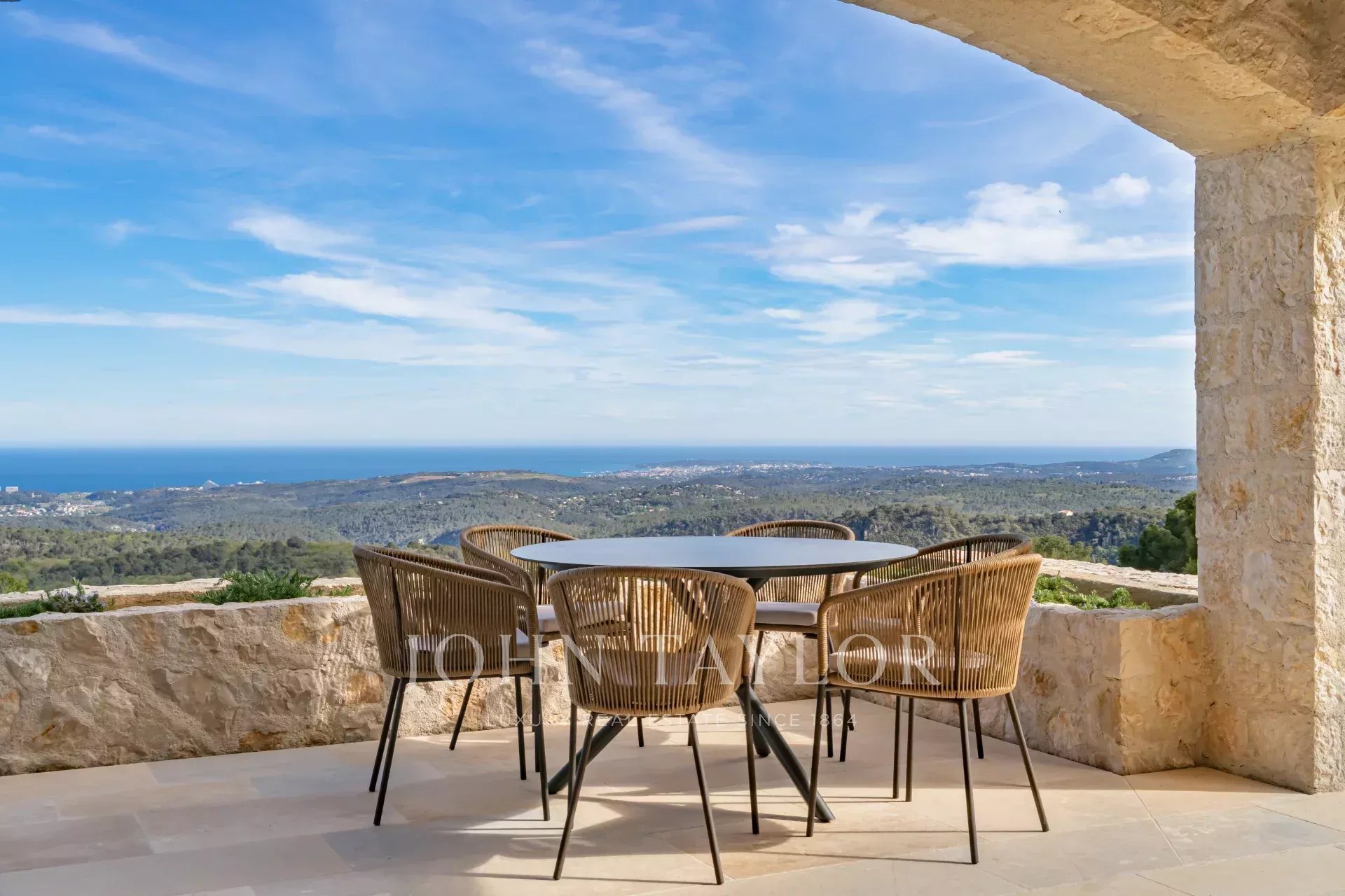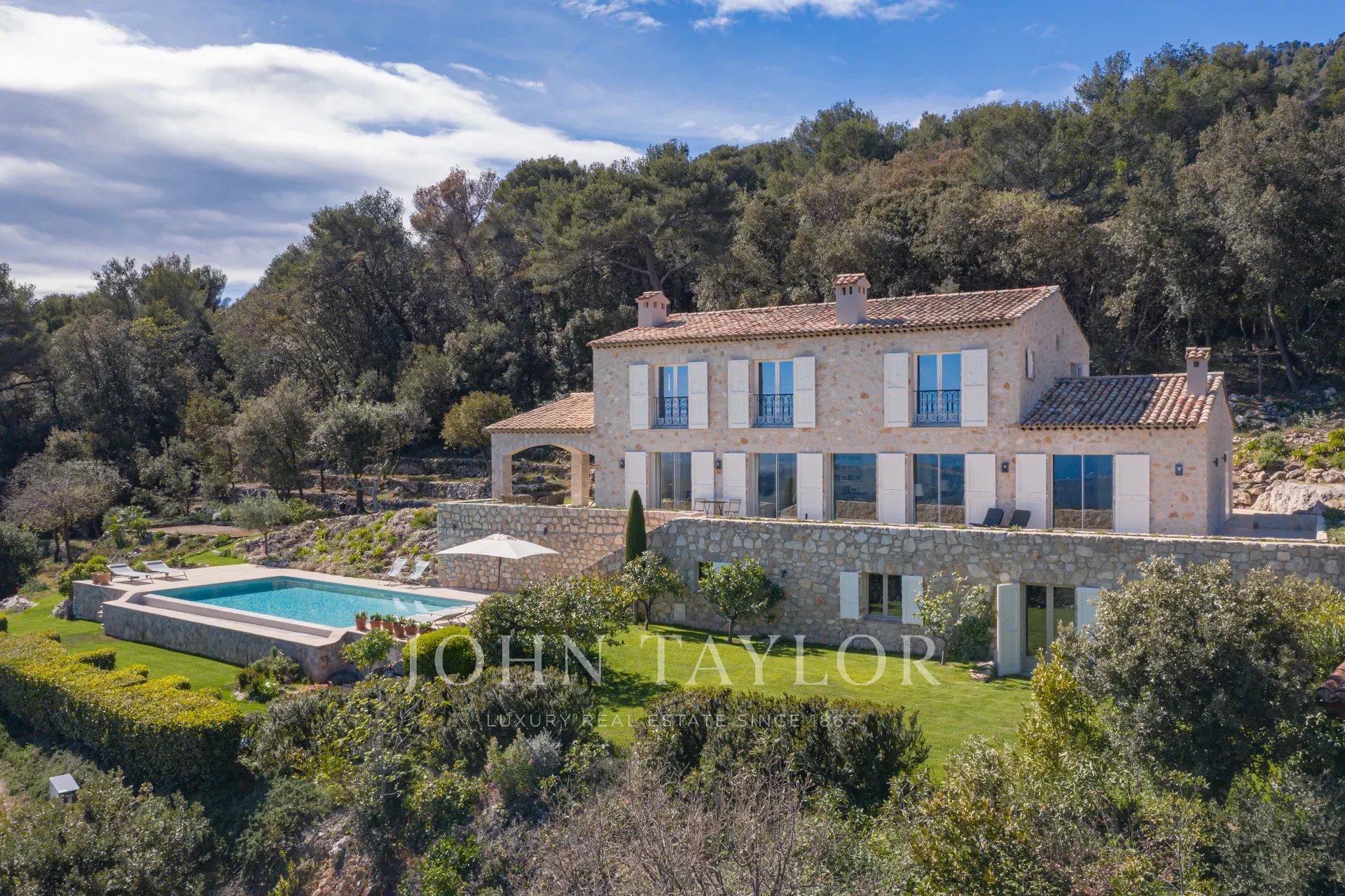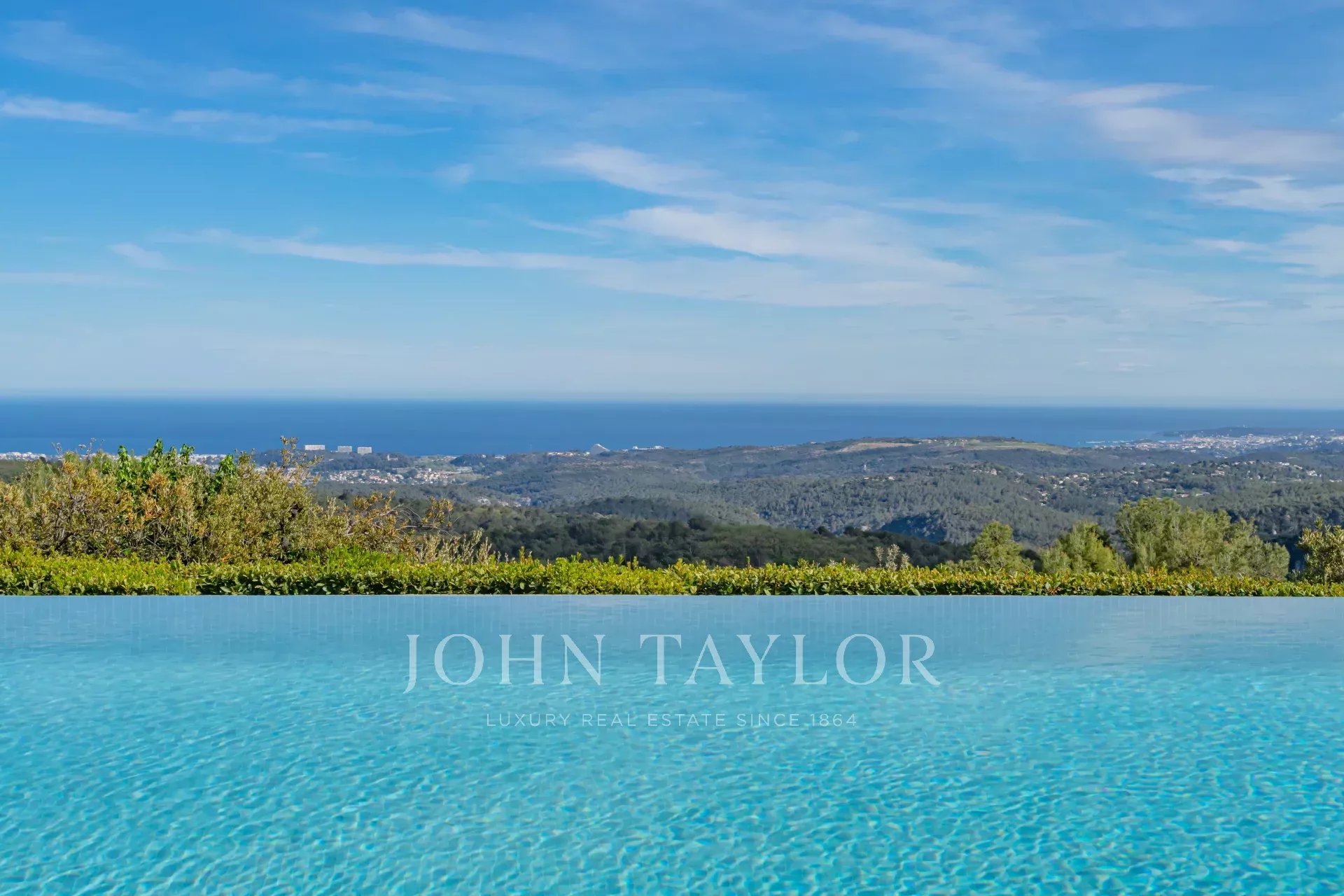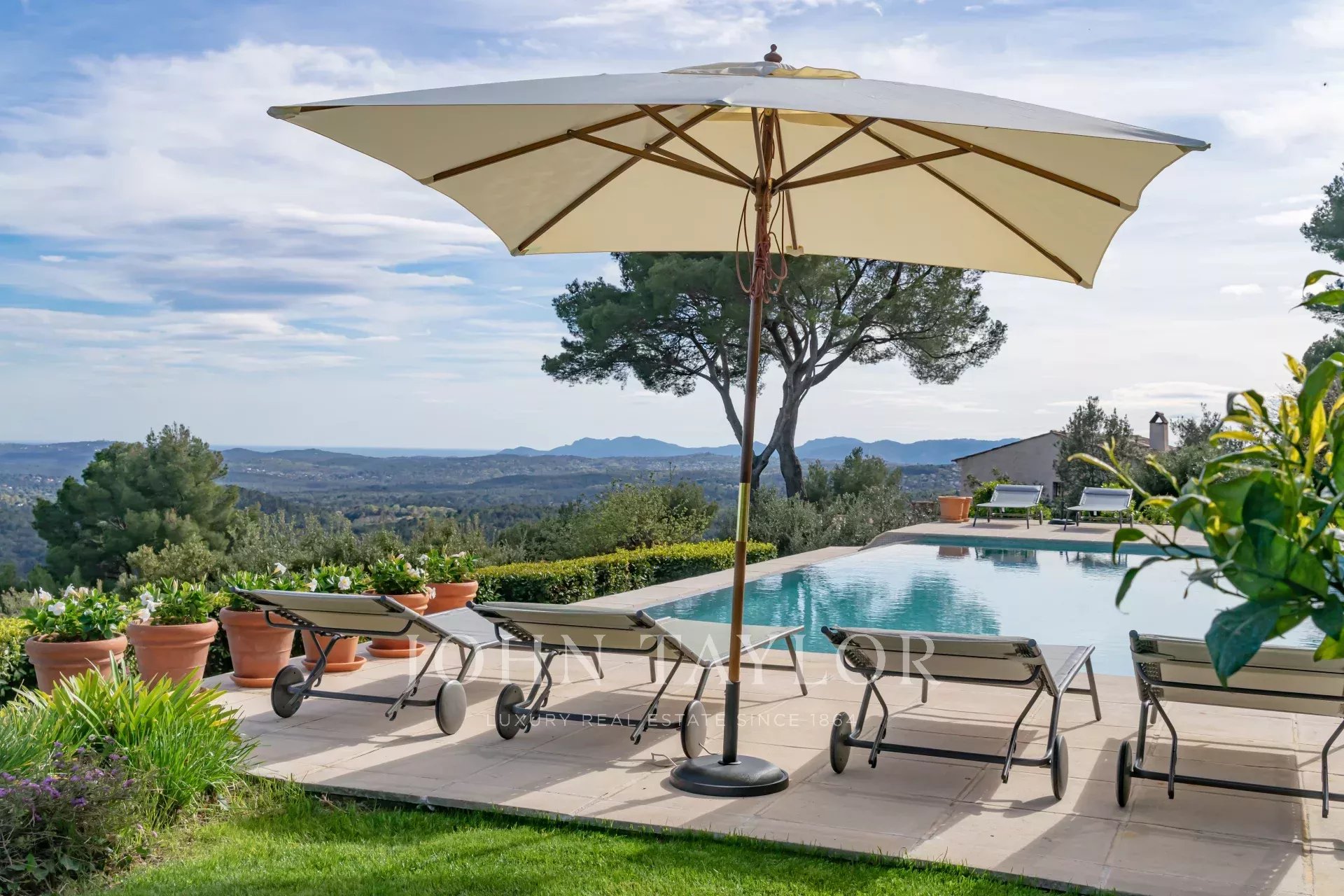 In Tourrettes sur Loup, with magnificent views of the sea and surrounding countryside, beautiful recently-built property offering 320 m² of living space on 4,000 m² of land with infinity pool.