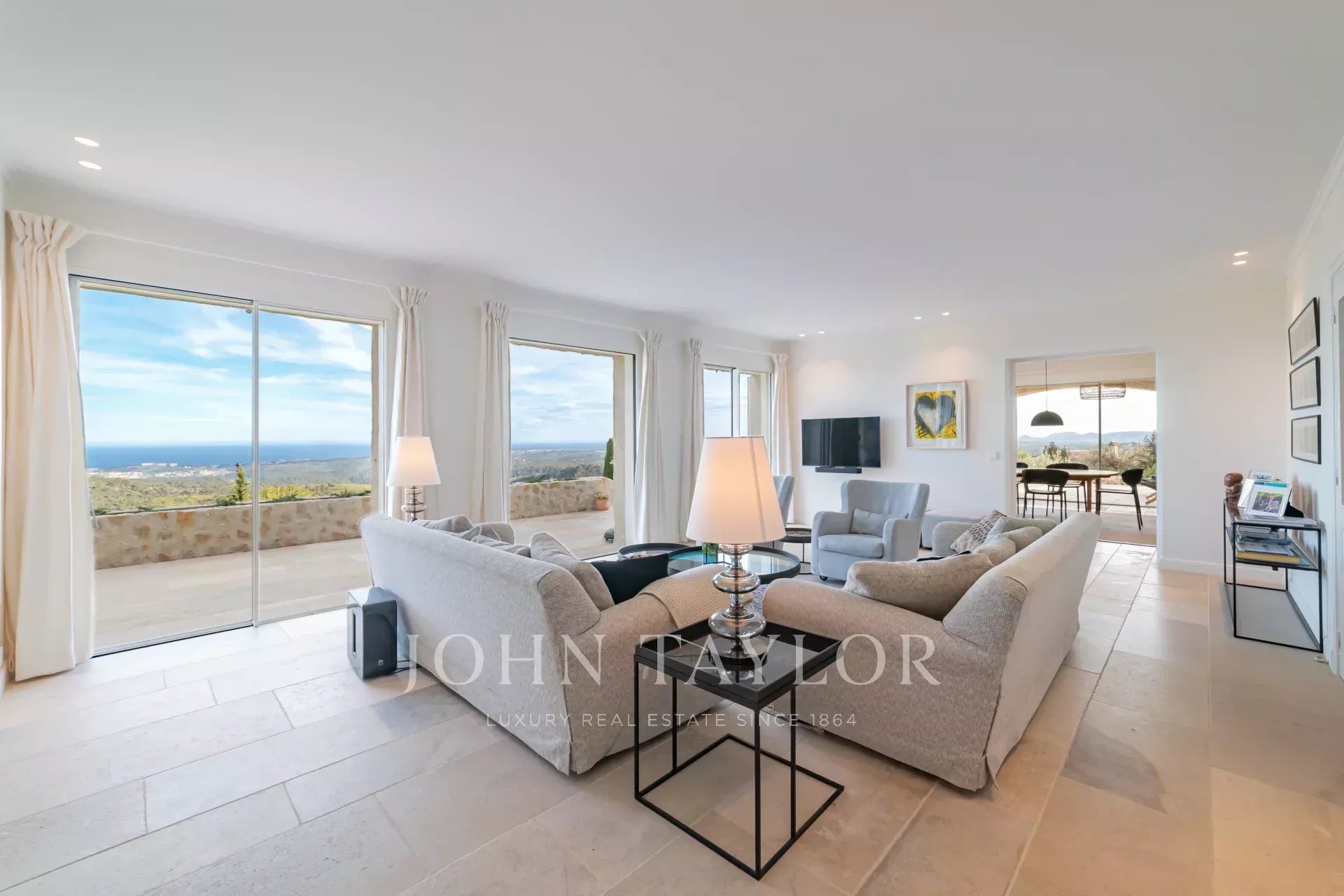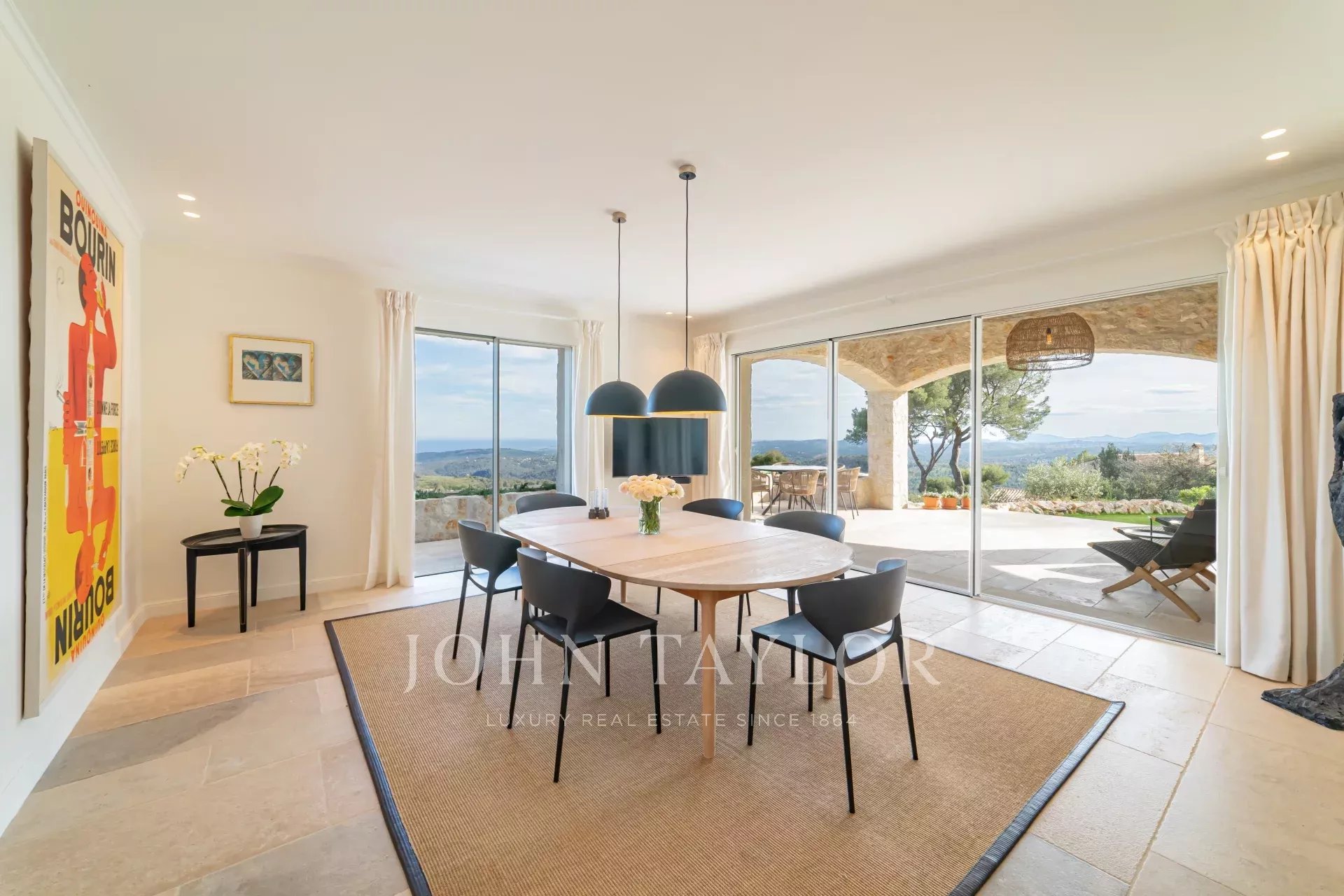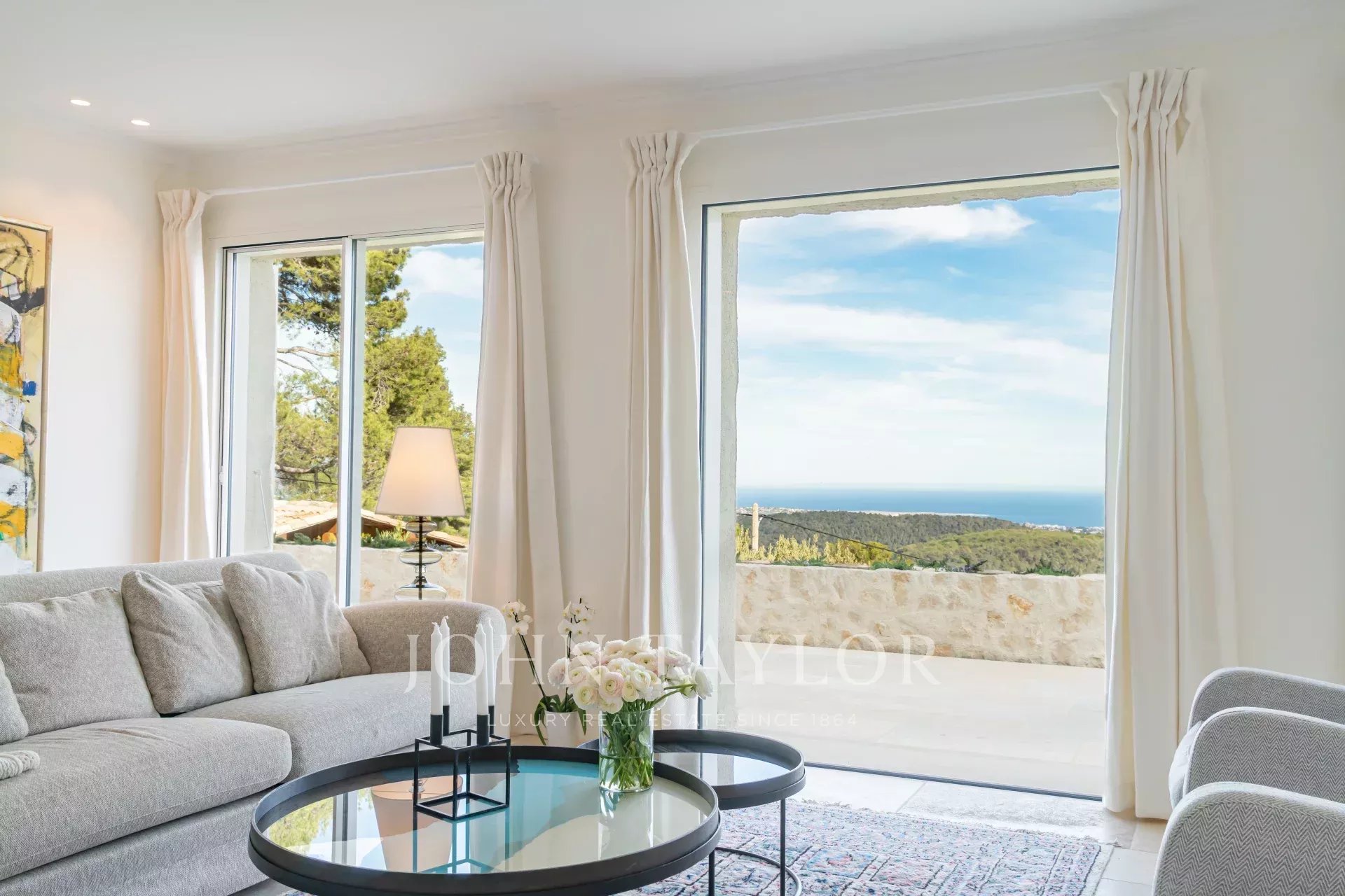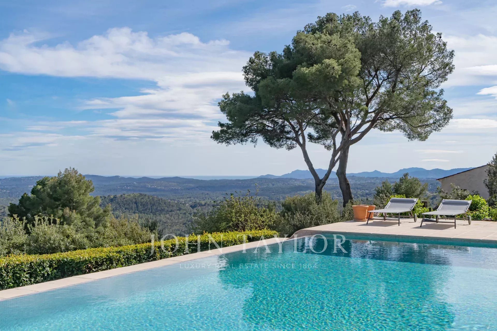 In Tourrettes sur Loup, with magnificent views of the sea and surrounding countryside, beautiful recently-built property offering 320 m² of living space on 4,000 m² of land with infinity pool.