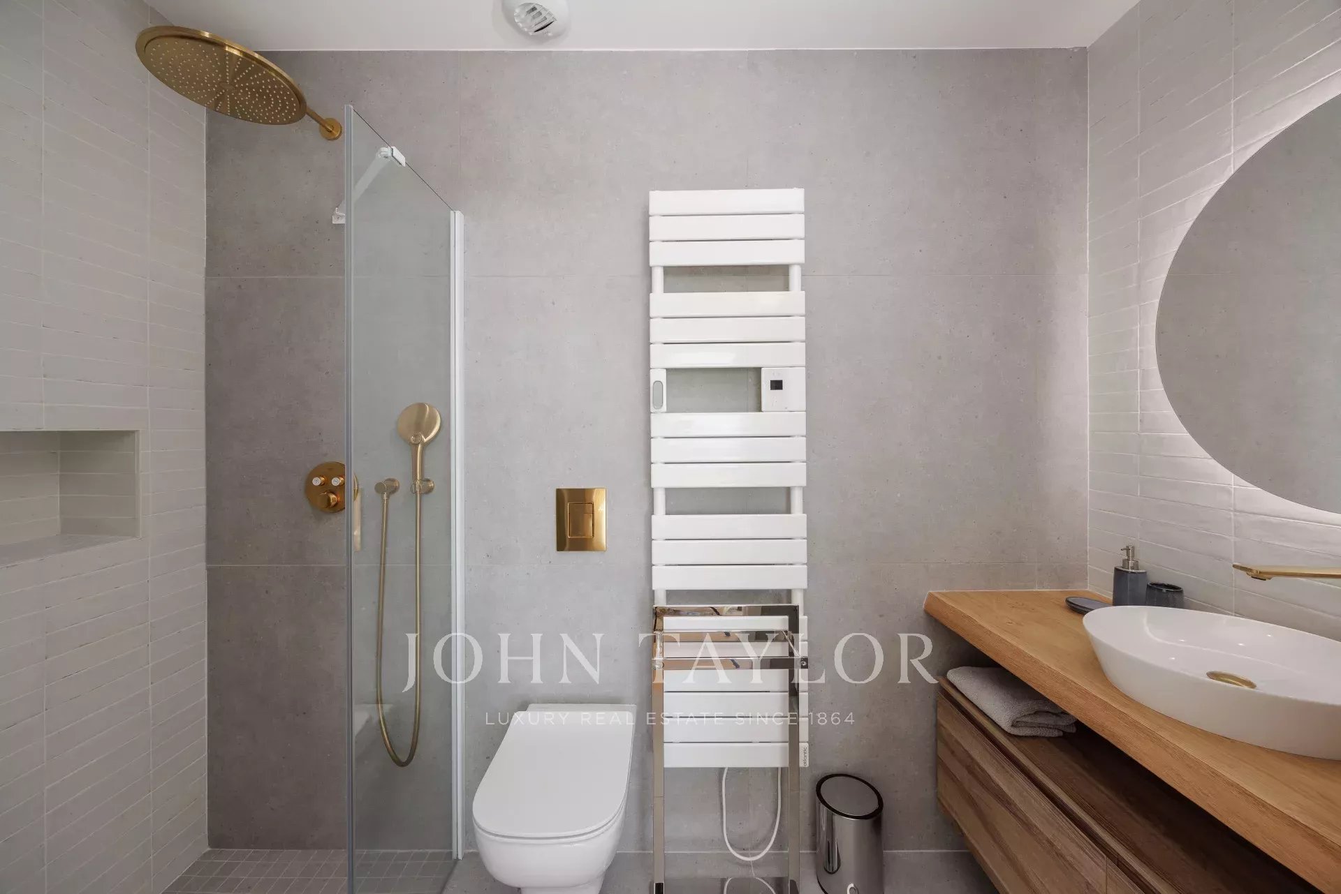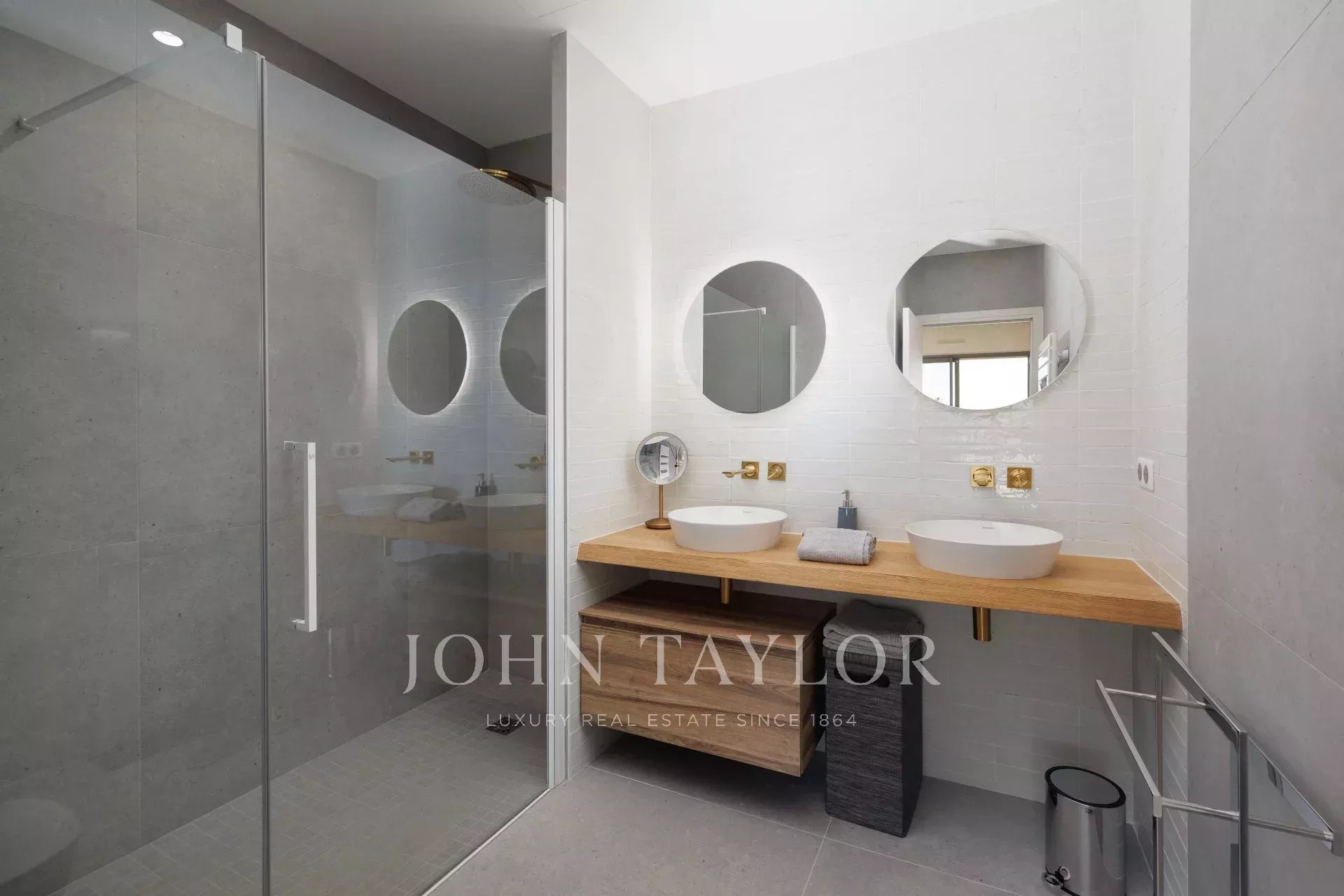 With a surface area of 152 m², this bright, modern villa is ideal for a stay with family or friends in the hinterland of Nice. On the garden level, a large, fully-equipped kitchen opens onto a spacious, convivial living room with direct access to a furnished terrace. There are three air-conditioned bedrooms, each with private walk-in shower room and dressing room: one on the garden level with access to the terrace, and two upstairs.