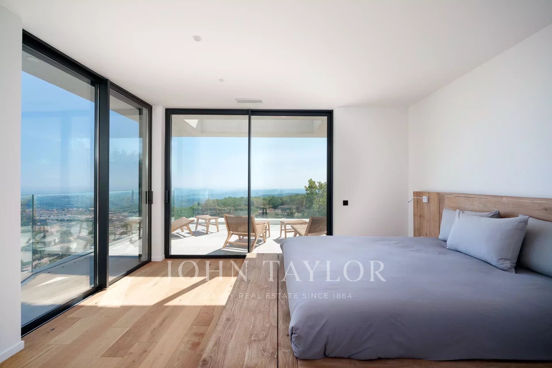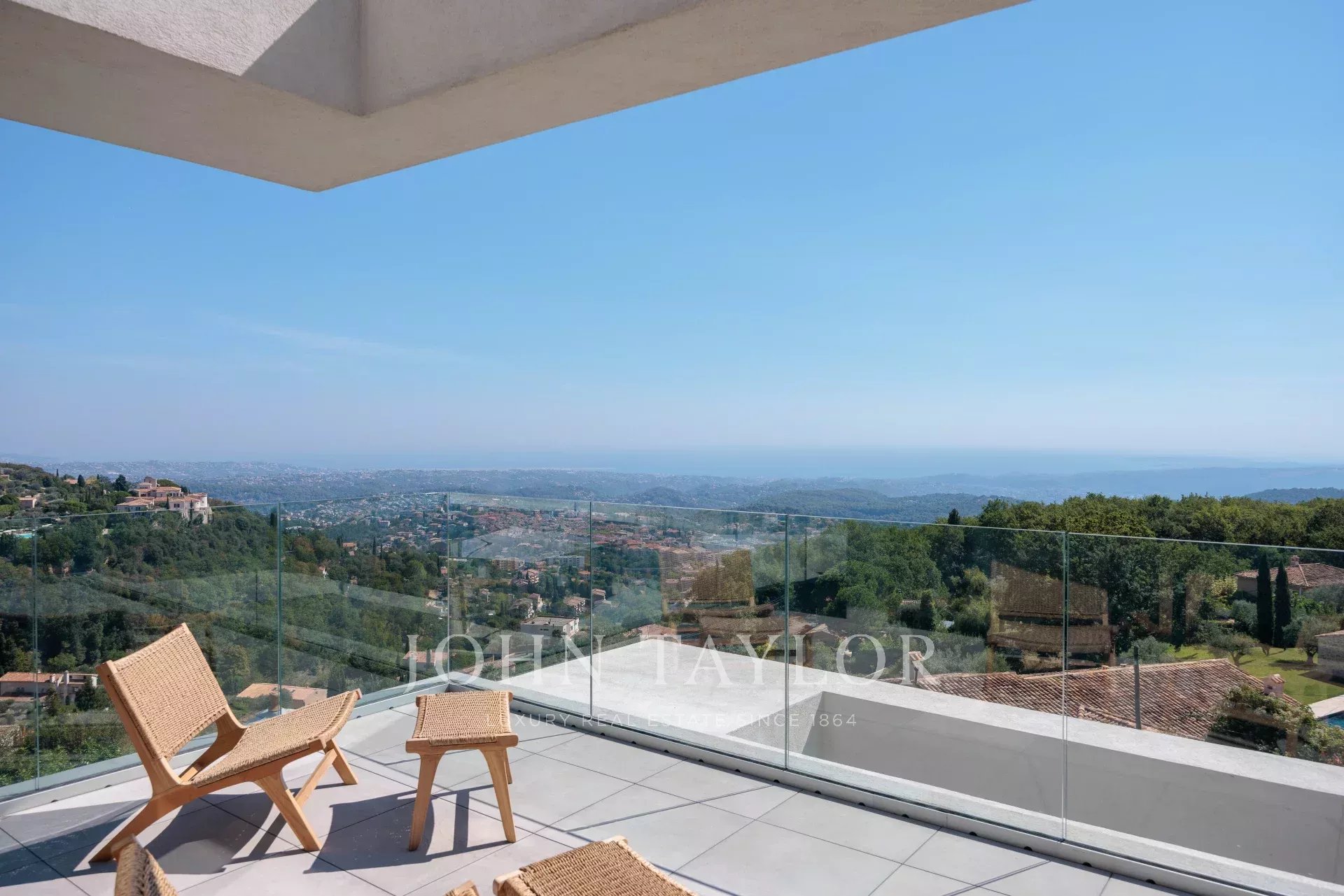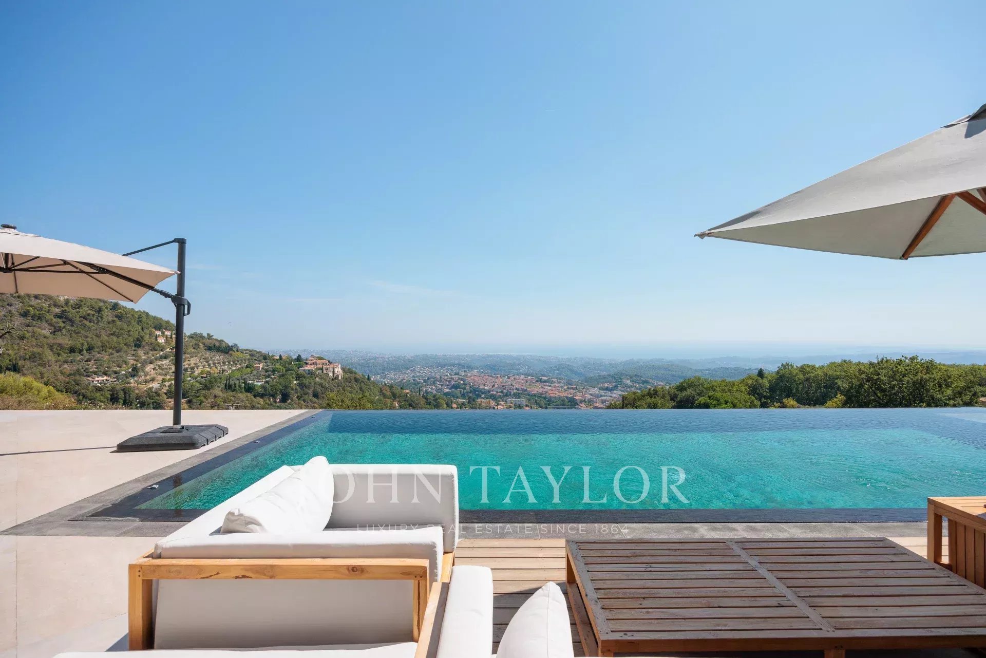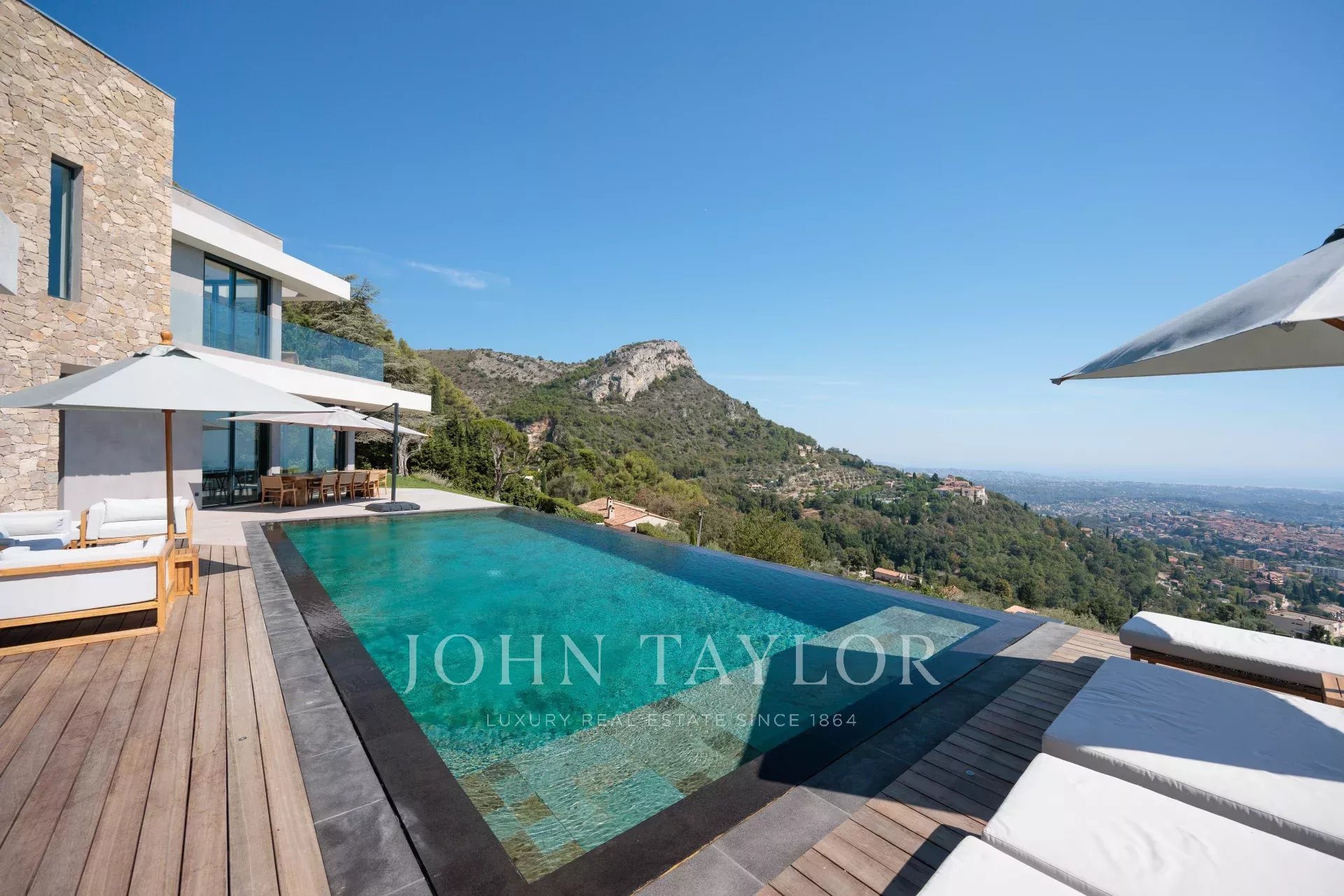 This splendid 400m2 villa, recently built on a 4000m2 plot, is ideally perched on the heights of Vence. Every room in the house and its vast terrace offer views of the sea (Cap d'Antibes, Baie des Anges, Cap Ferrat) and the surrounding mountains (Baous, Esterel).