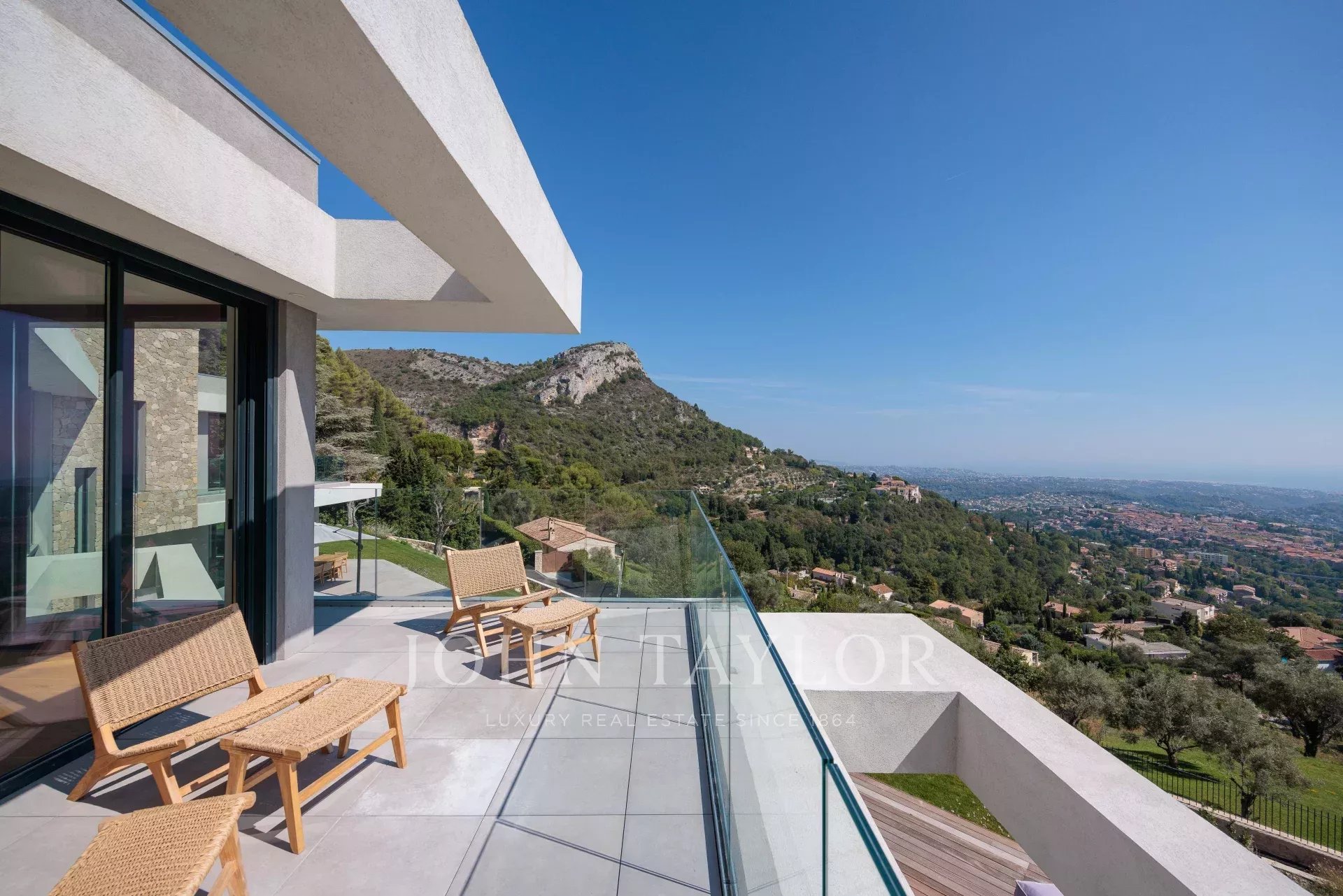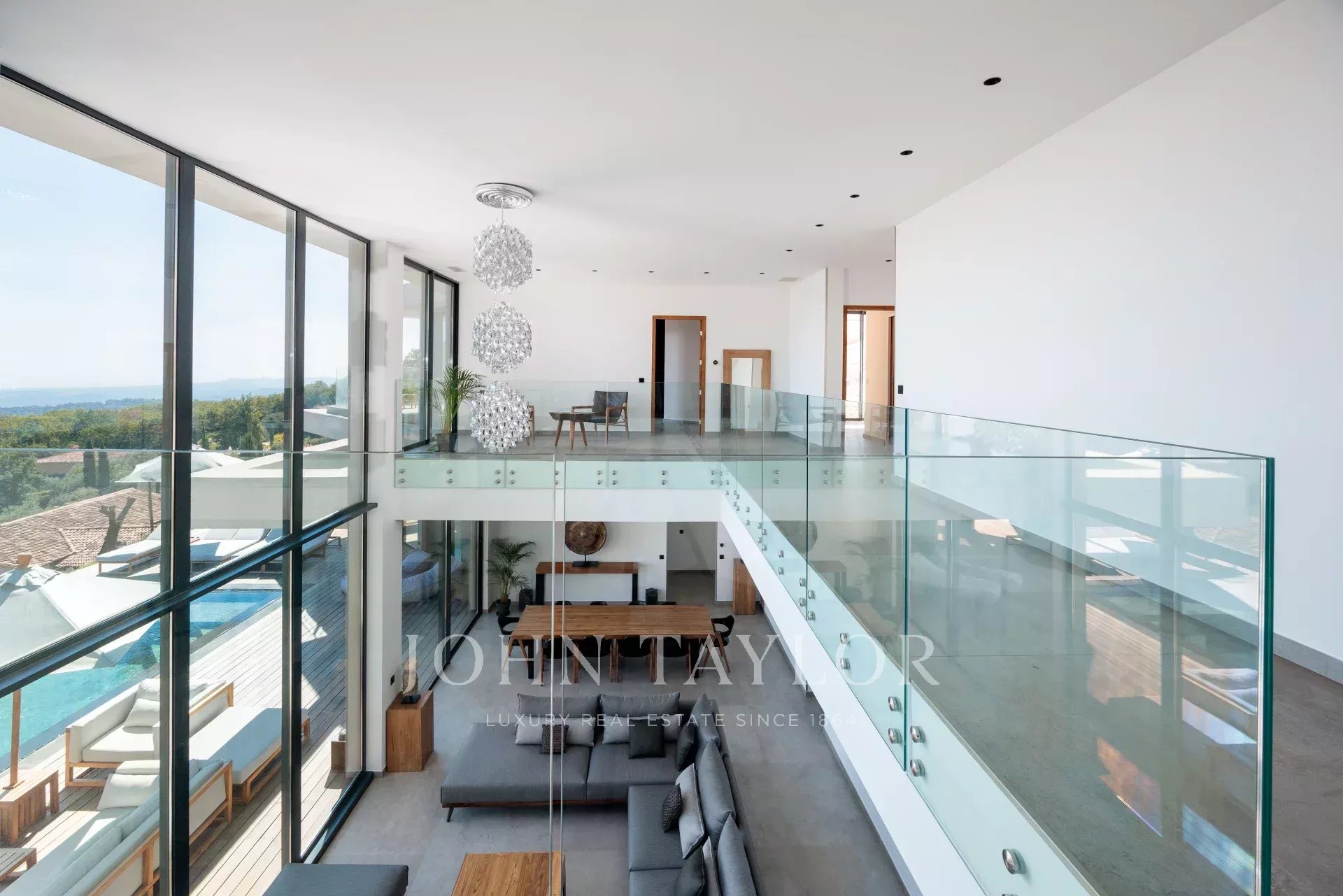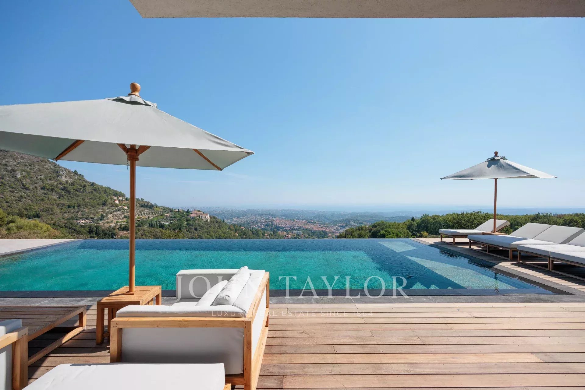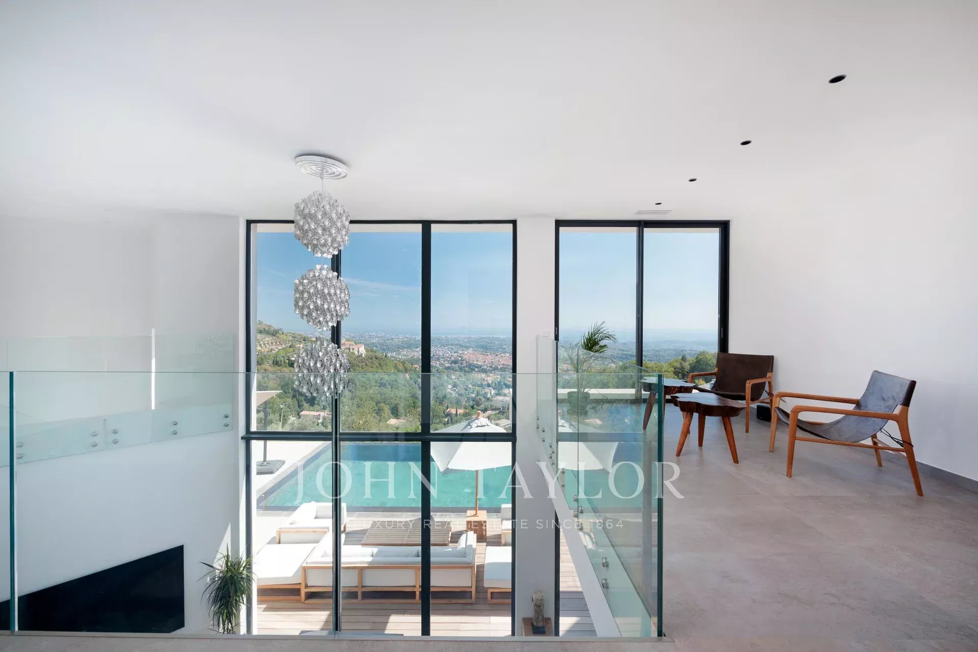 This splendid 400m2 villa, recently built on a 4000m2 plot, is ideally perched on the heights of Vence. Every room in the house and its vast terrace offer views of the sea (Cap d'Antibes, Baie des Anges, Cap Ferrat) and the surrounding mountains (Baous, Esterel).
