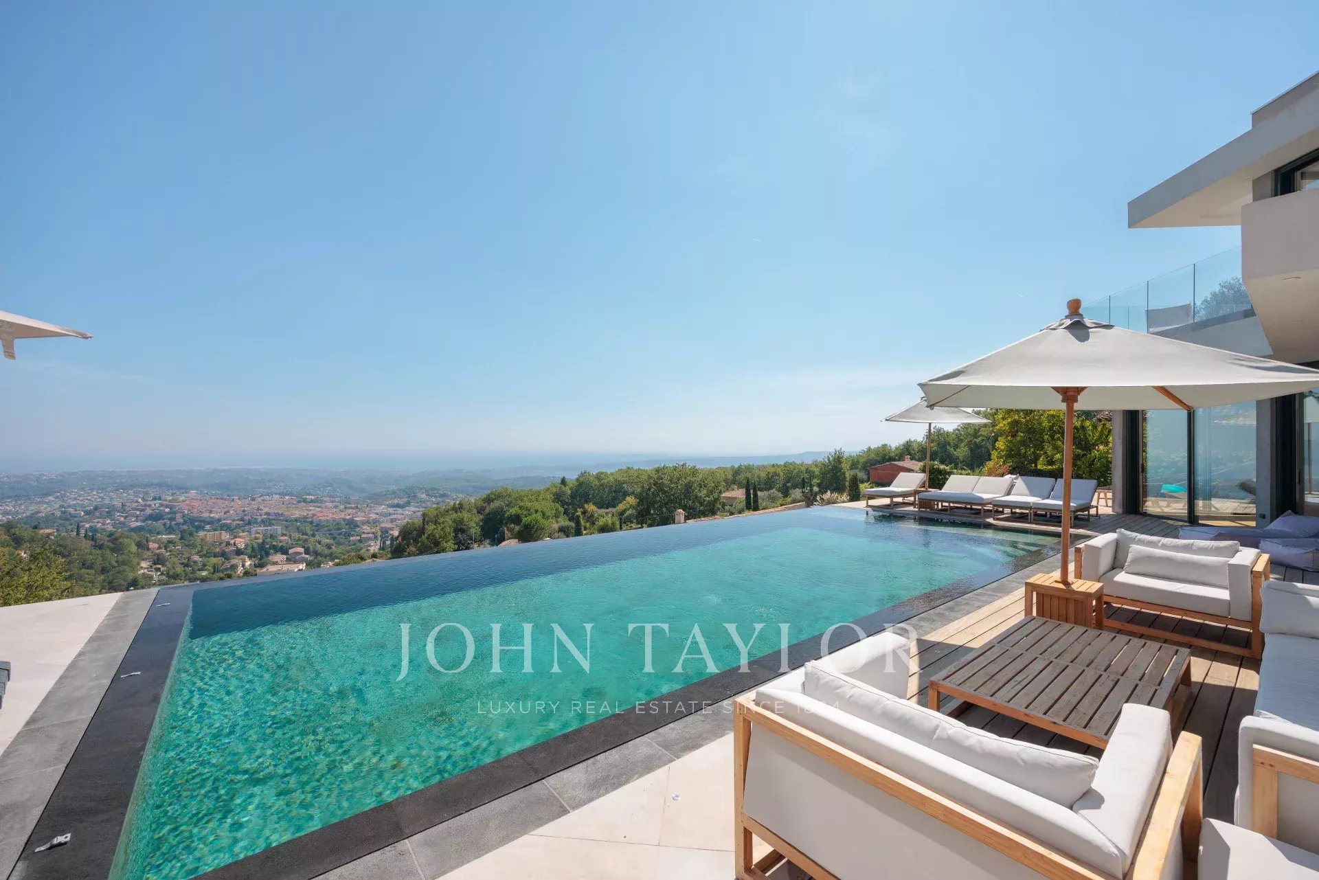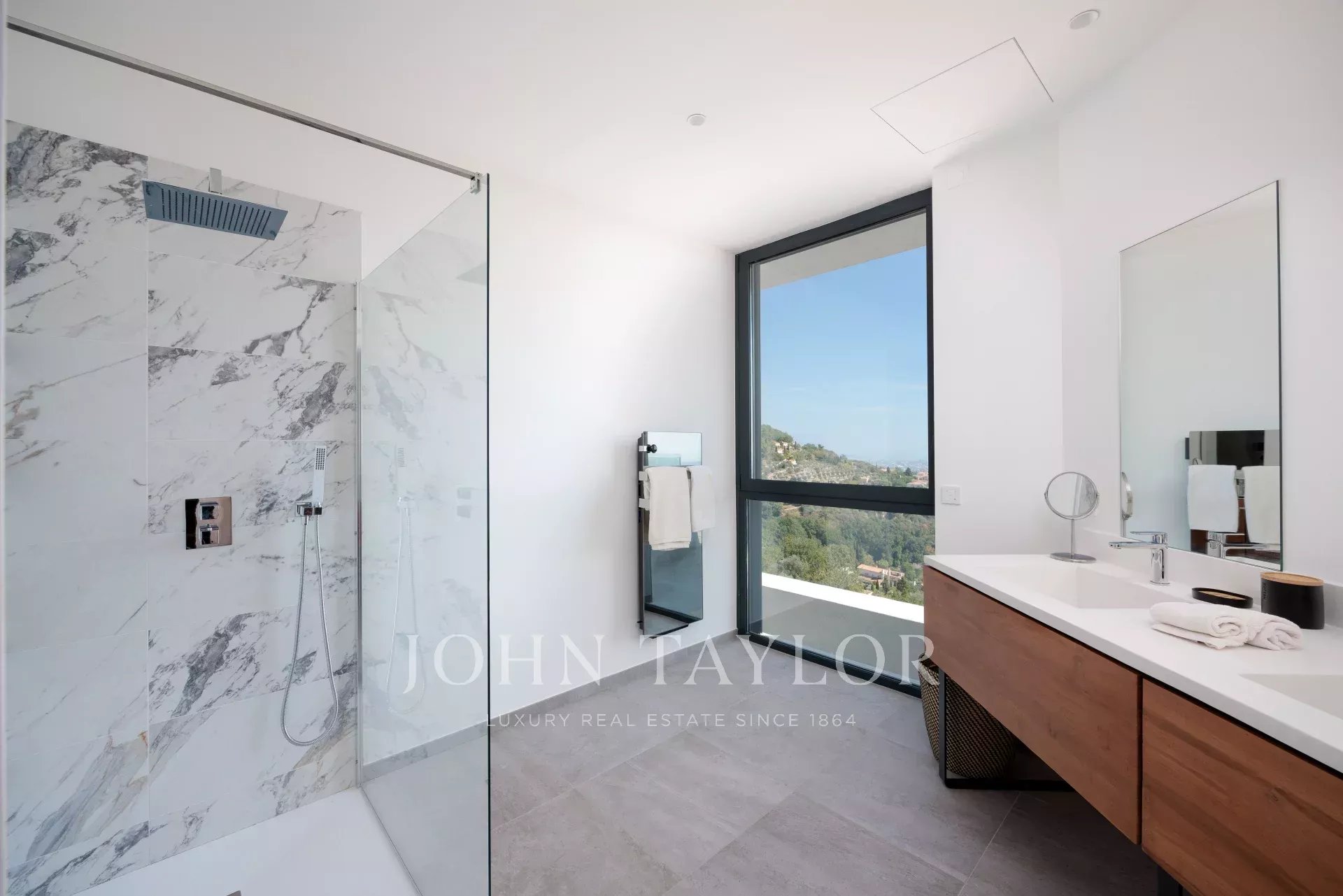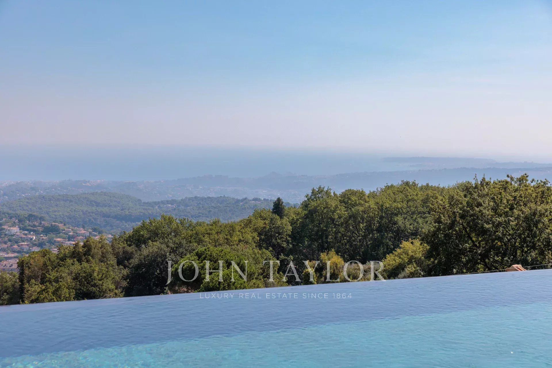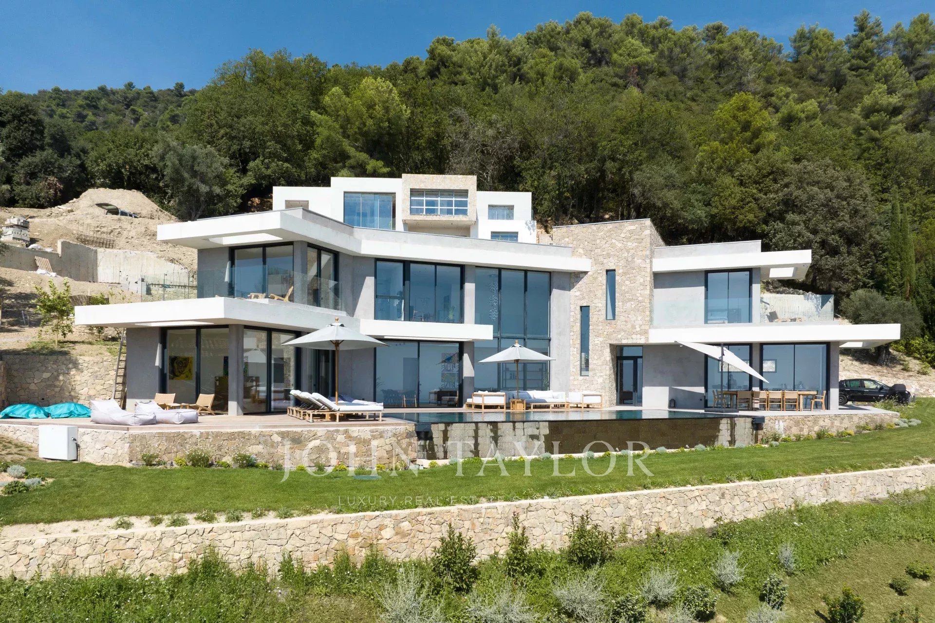 This splendid 400m2 villa, recently built on a 4000m2 plot, is ideally perched on the heights of Vence. Every room in the house and its vast terrace offer views of the sea (Cap d'Antibes, Baie des Anges, Cap Ferrat) and the surrounding mountains (Baous, Esterel).
