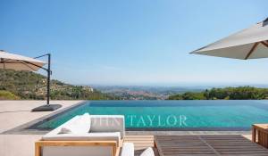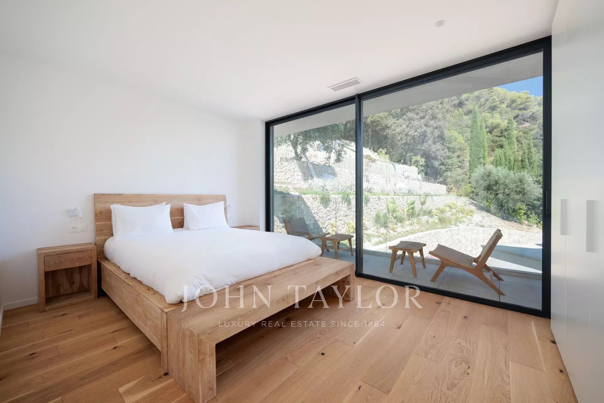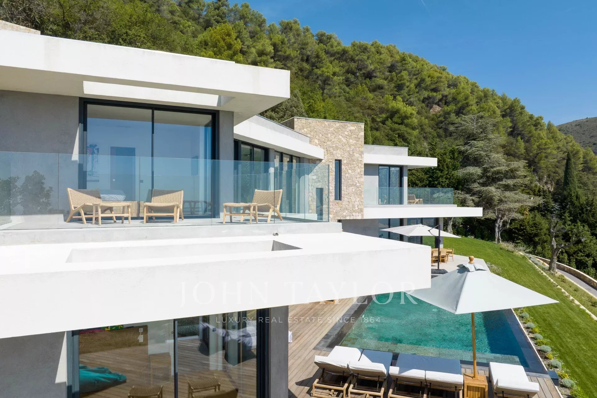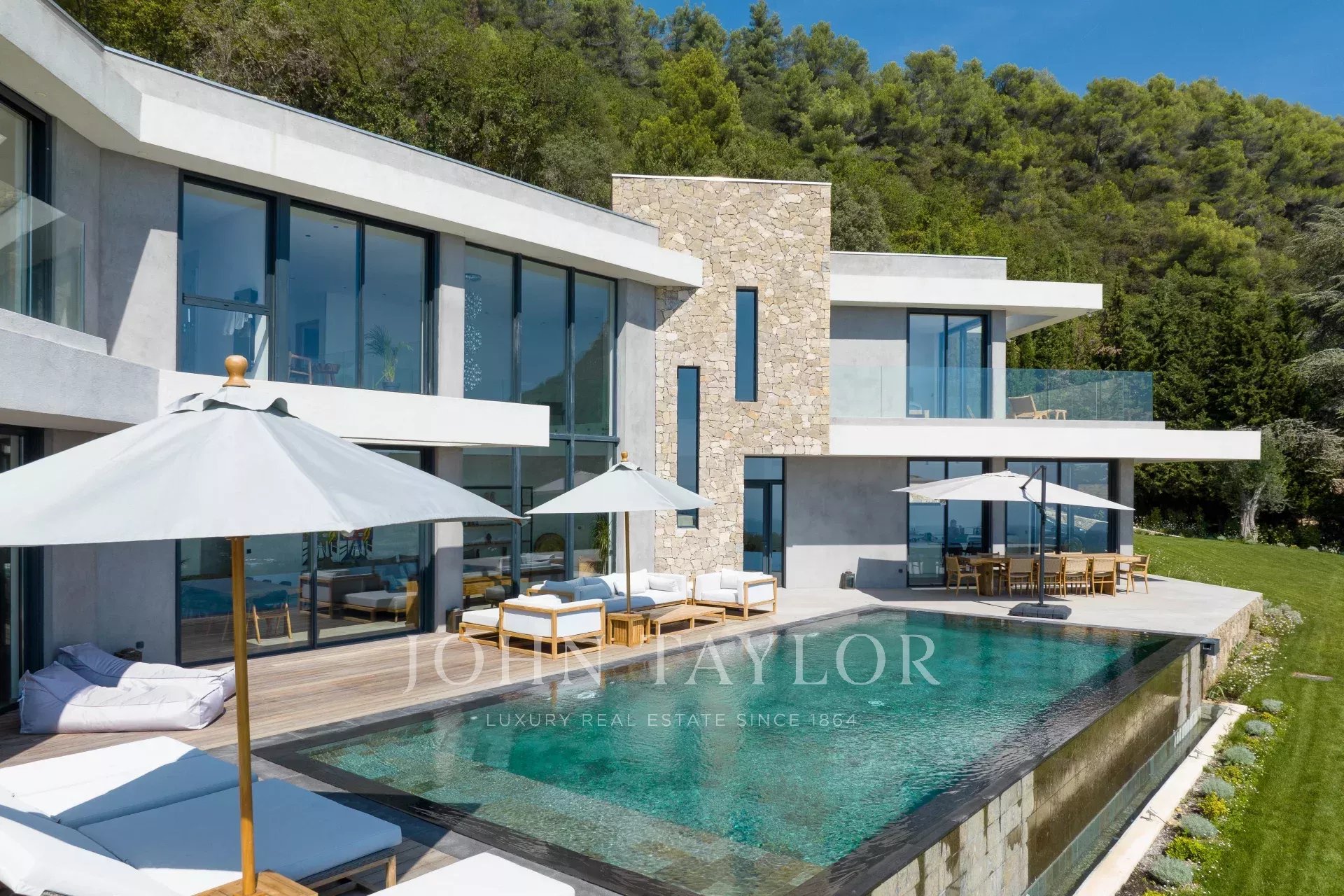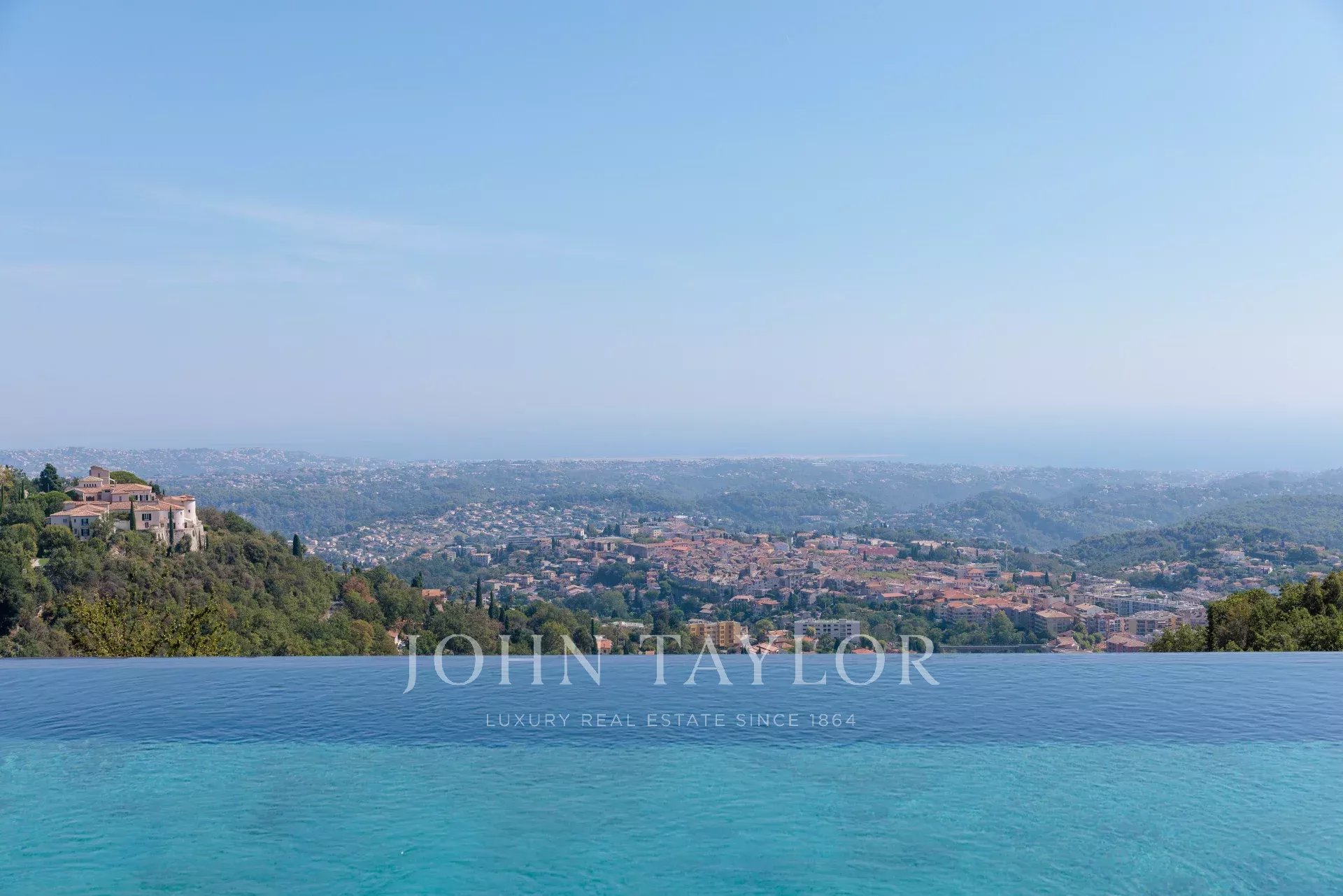 This splendid 400m2 villa, recently built on a 4000m2 plot, is ideally perched on the heights of Vence. Every room in the house and its vast terrace offer views of the sea (Cap d'Antibes, Baie des Anges, Cap Ferrat) and the surrounding mountains (Baous, Esterel).