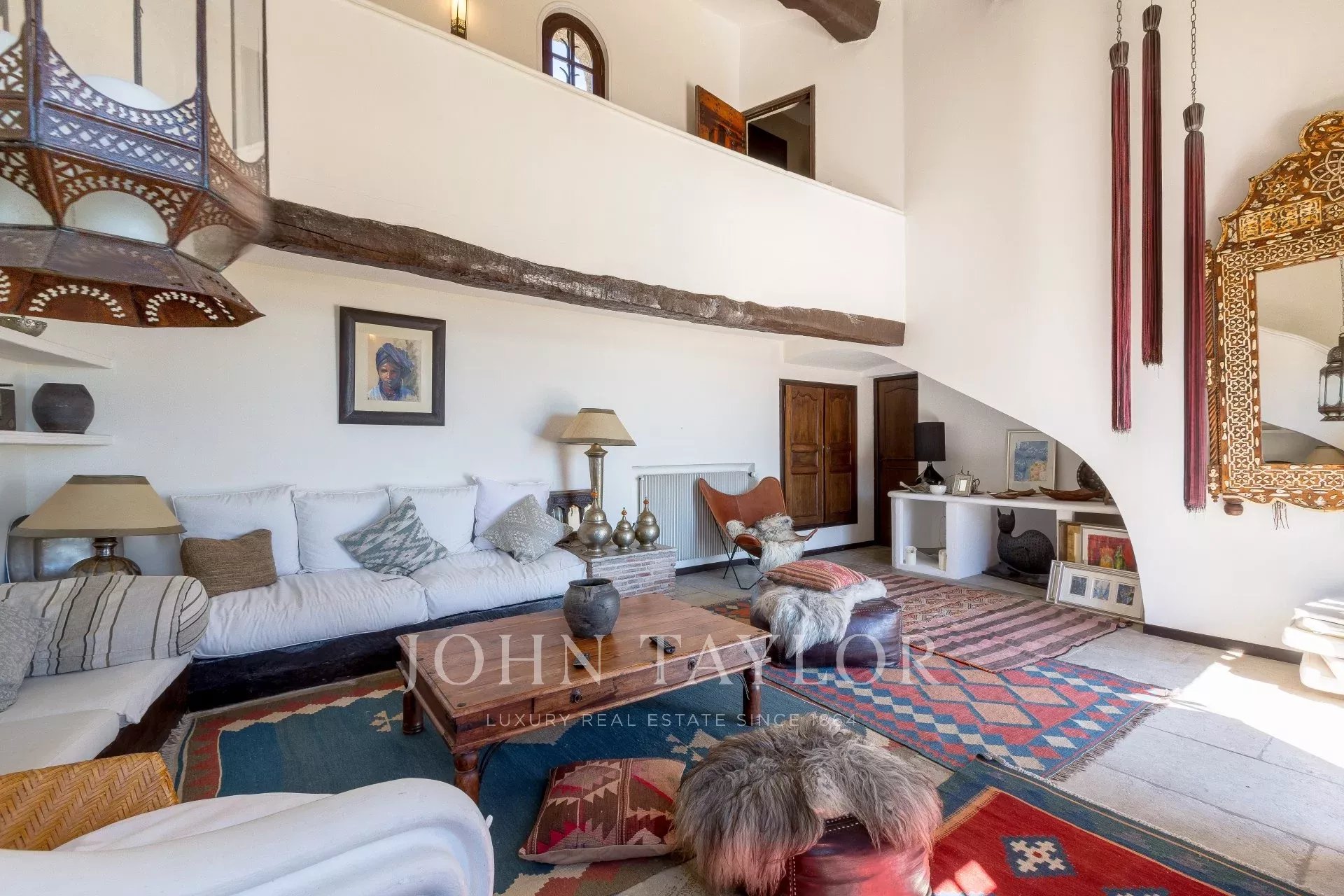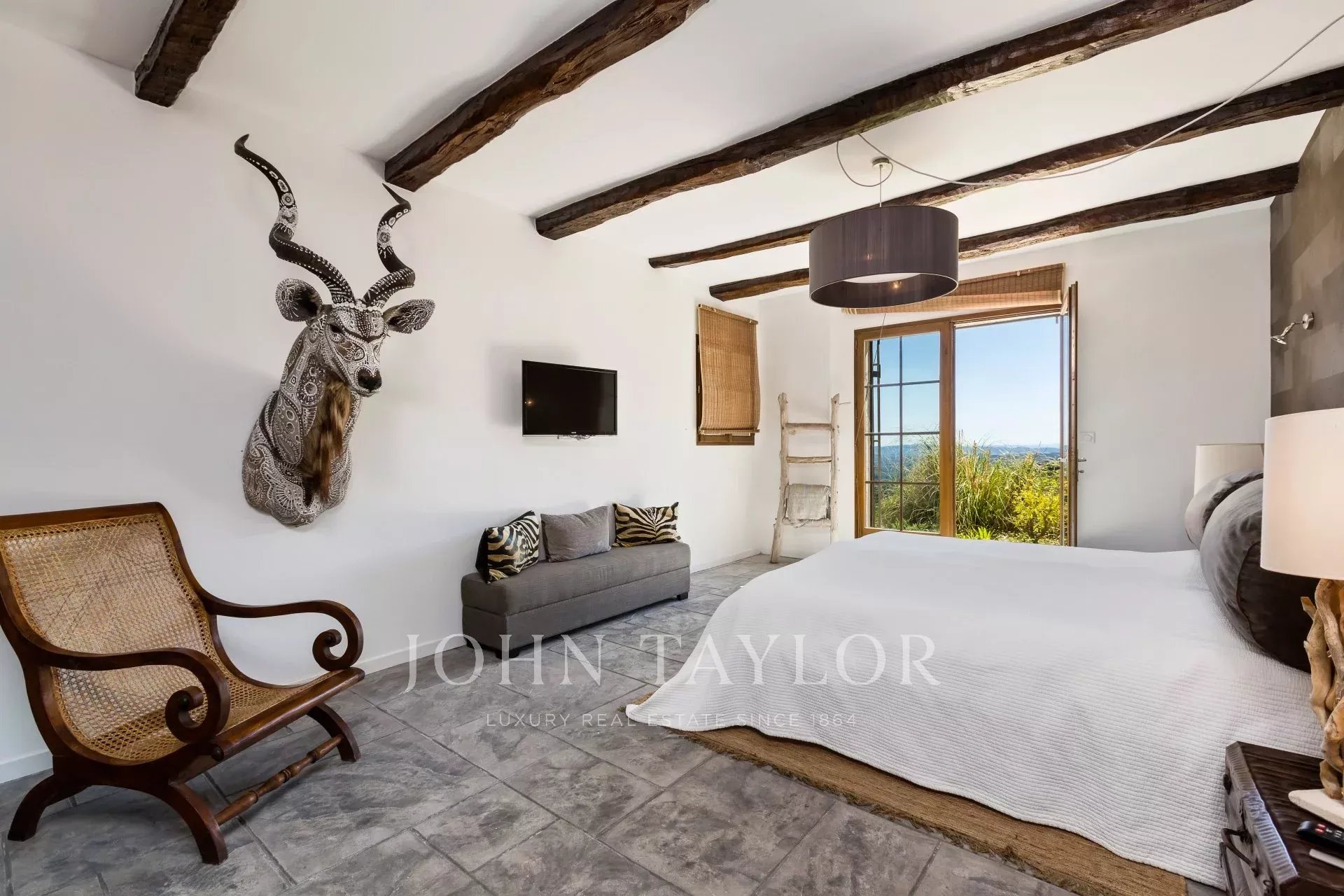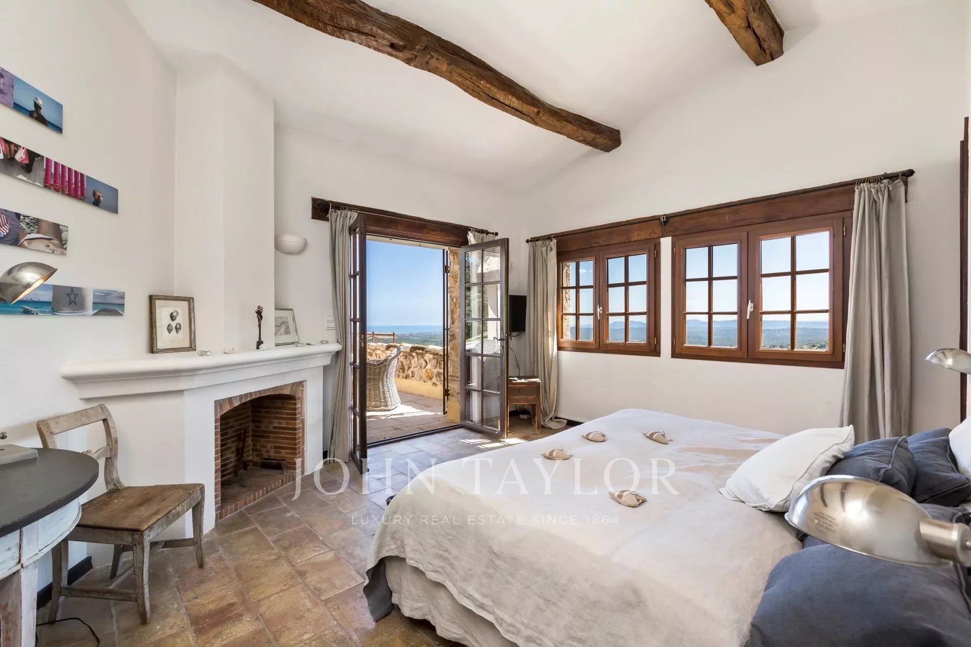 Outside, the stone pool house with its pizza oven, fireplace and large solid wood table opens onto the infinity pool and its enchanting sea view, which can be admired while swimming. Nearby, there's a splendid Moroccan salon for relaxing and a gym.