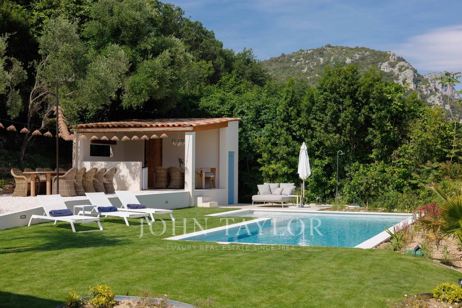 - Swimming pool with convivial pool house, equipped with summer kitchen, shaded dining area and charcoal barbecue