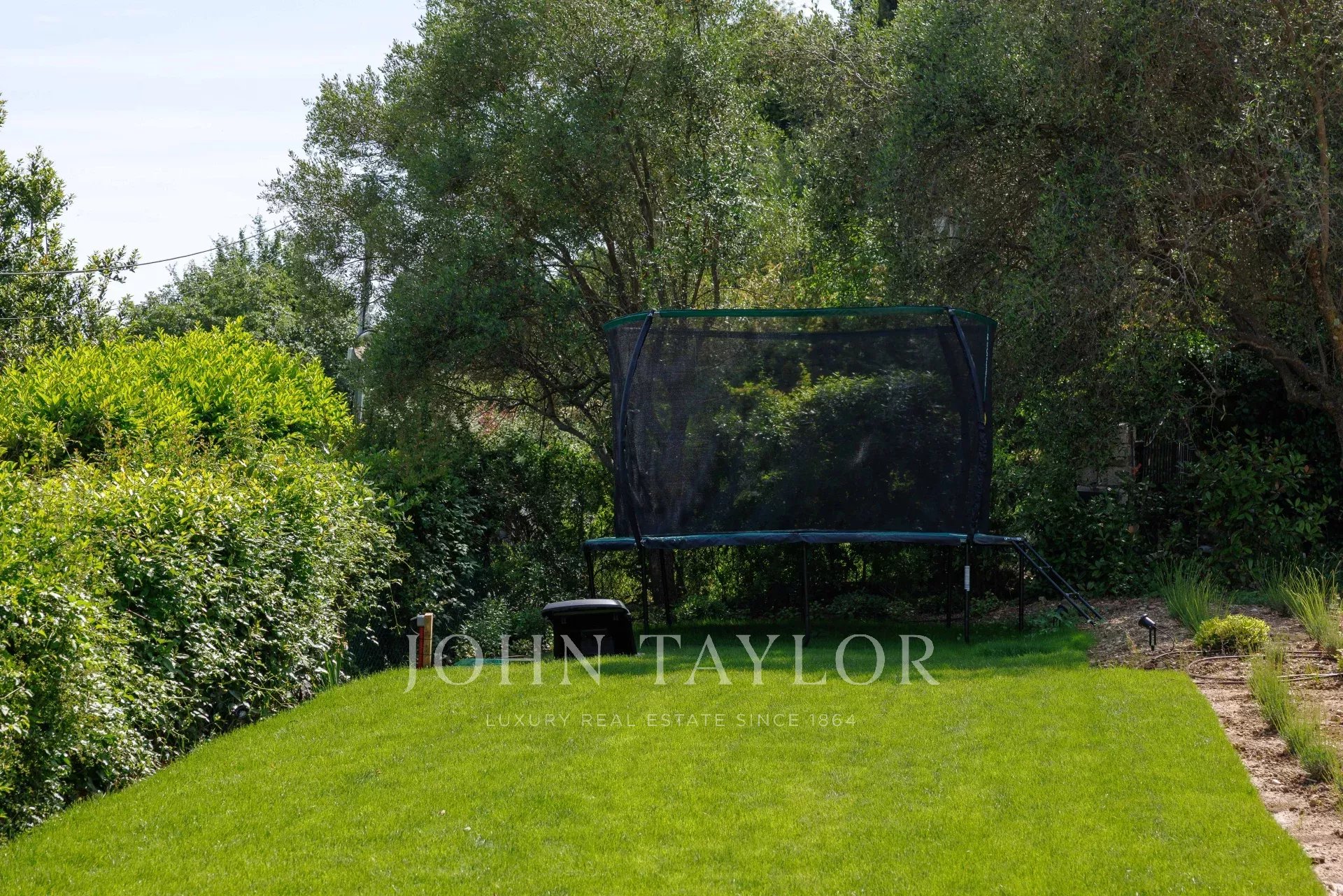 - Children's area with trampoline, swing and playground