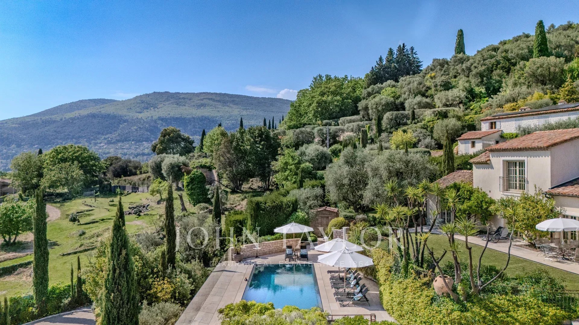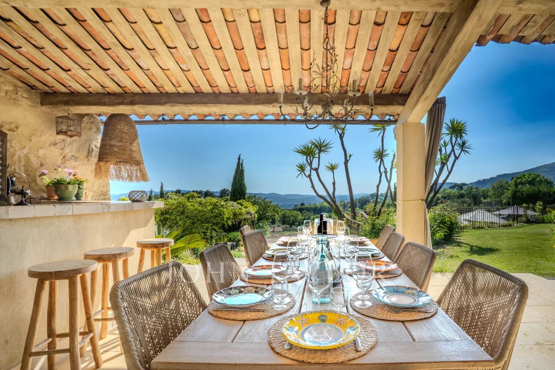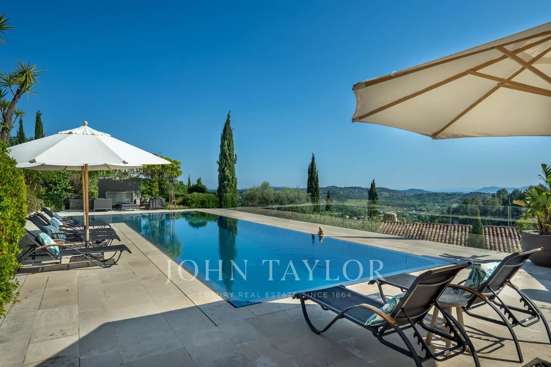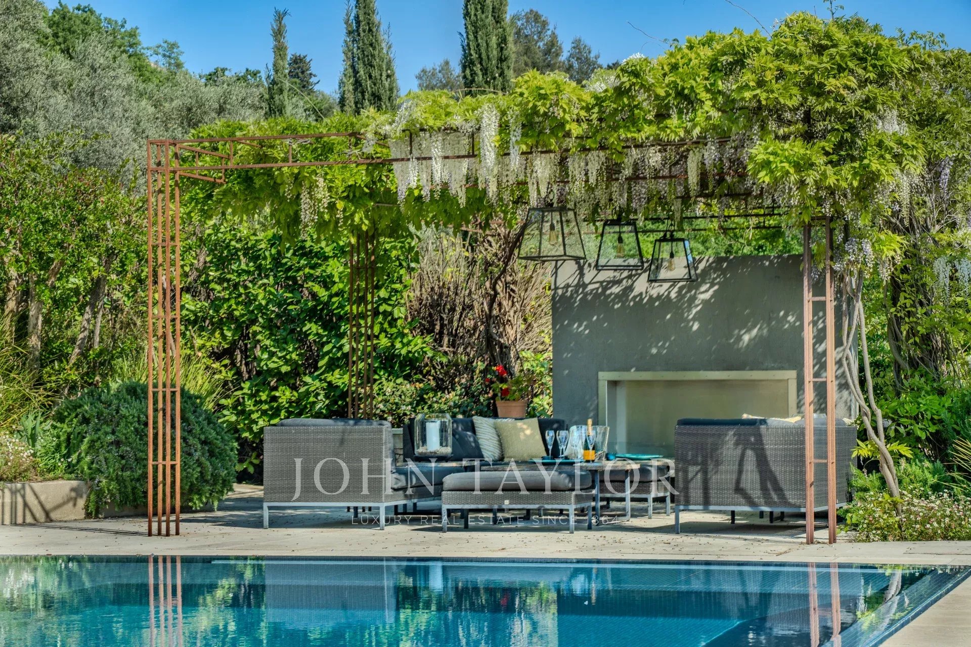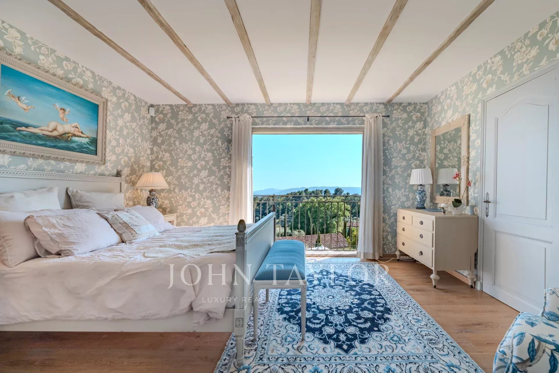 Situated in a dominant position in Châteauneuf-Grasse, this superb family bastide offers breathtaking panoramic views and an idyllic living environment.