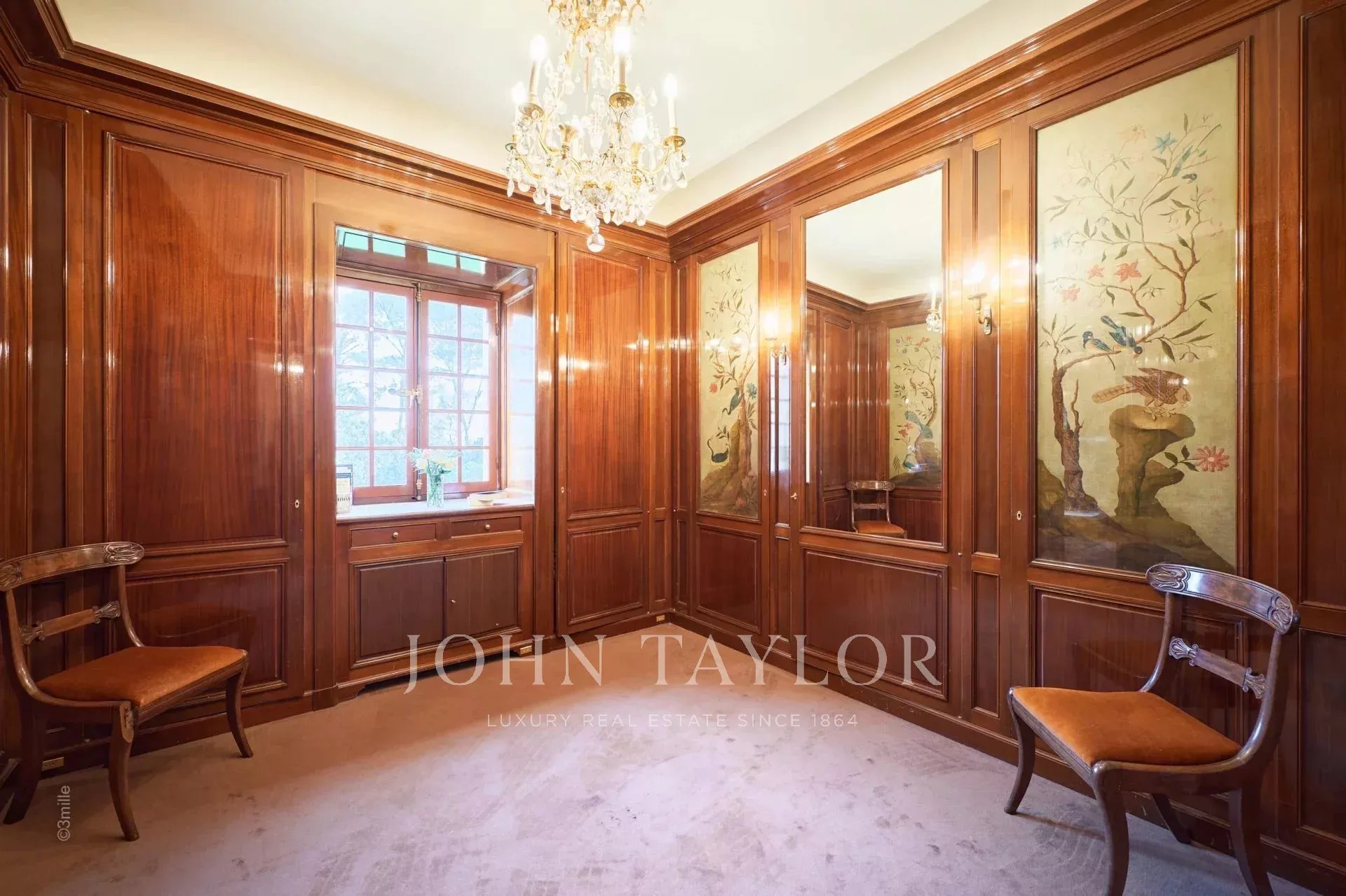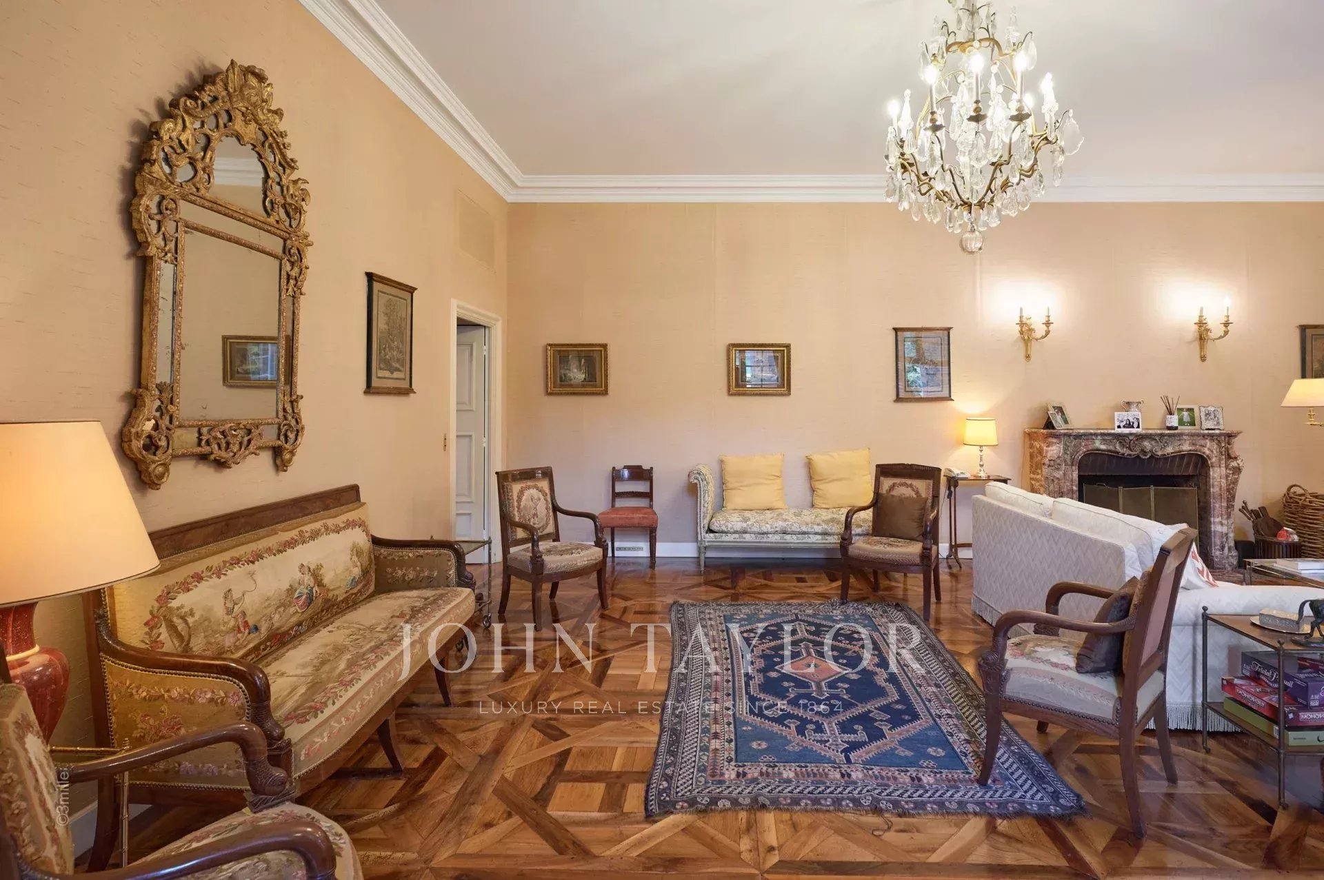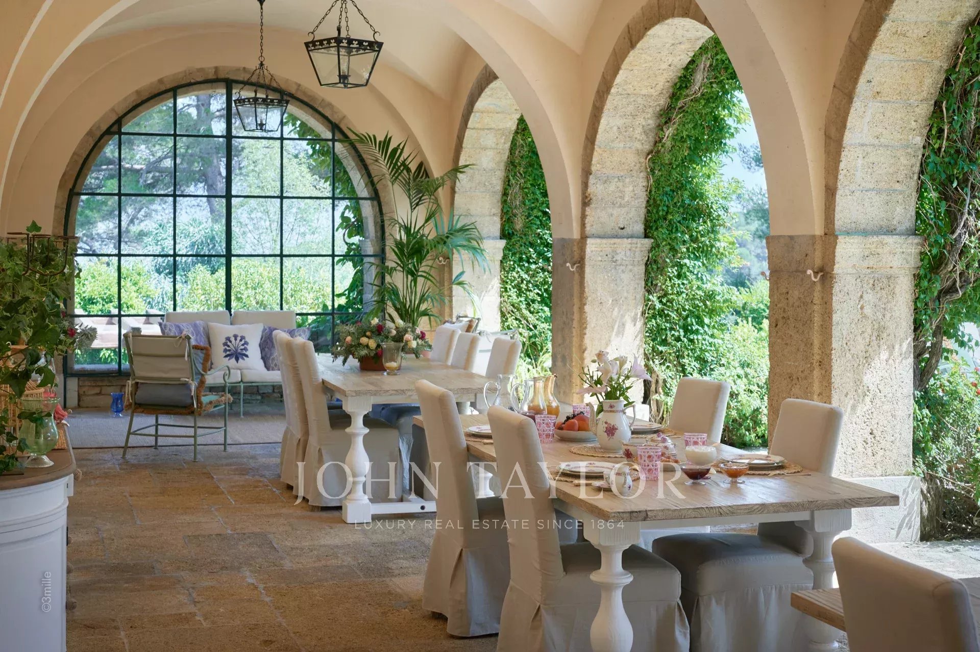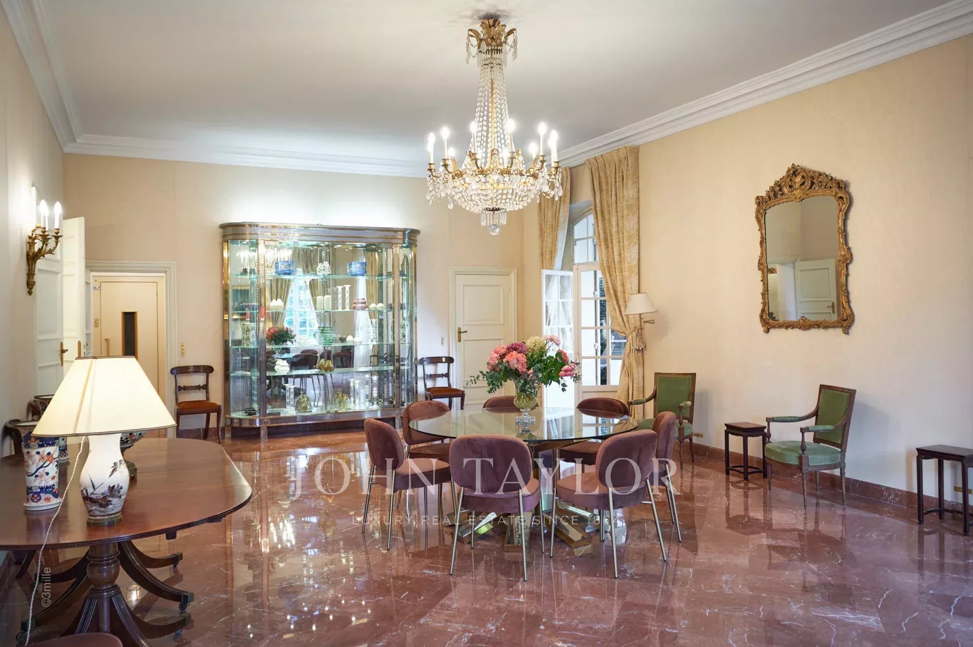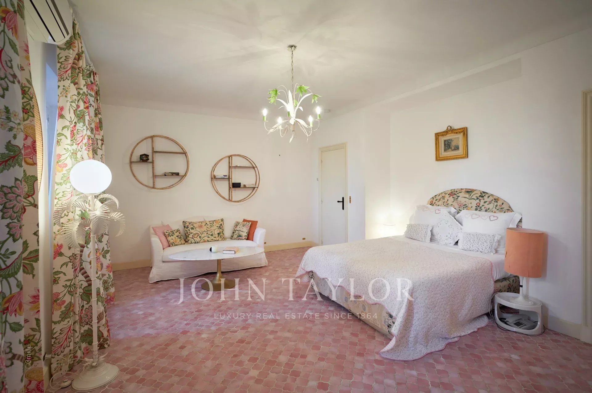 Atop its private hill, with uninterrupted views all the way to the sea, this sumptuous Chateau, built of ashlar in 1920, was the setting for JFK's childhood vacations; JFK's summer vacations as a child, when his father, Joseph Kennedy, served as British Ambassador to London between 1938 and 1940. Ideally situated between the villages of Valbonne and Mougins, 20 minutes from Cannes and its beaches. The property is surrounded by eighteen hectares of parkland.