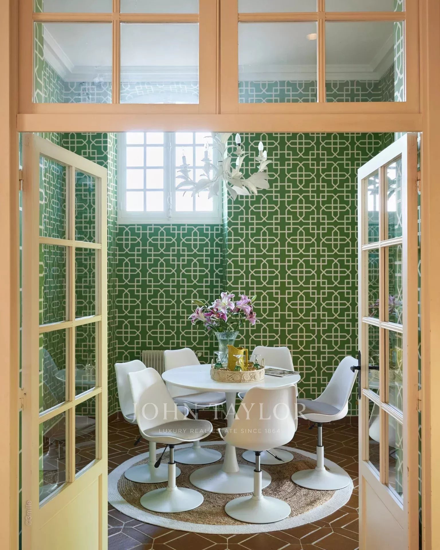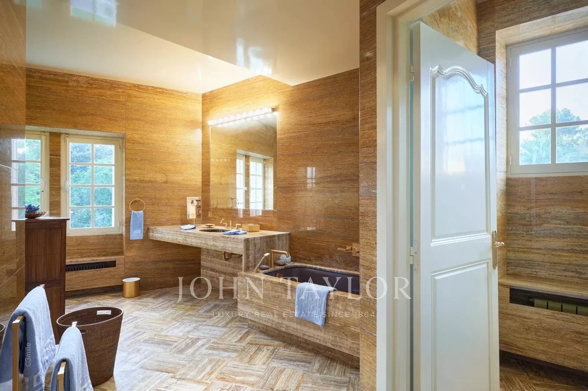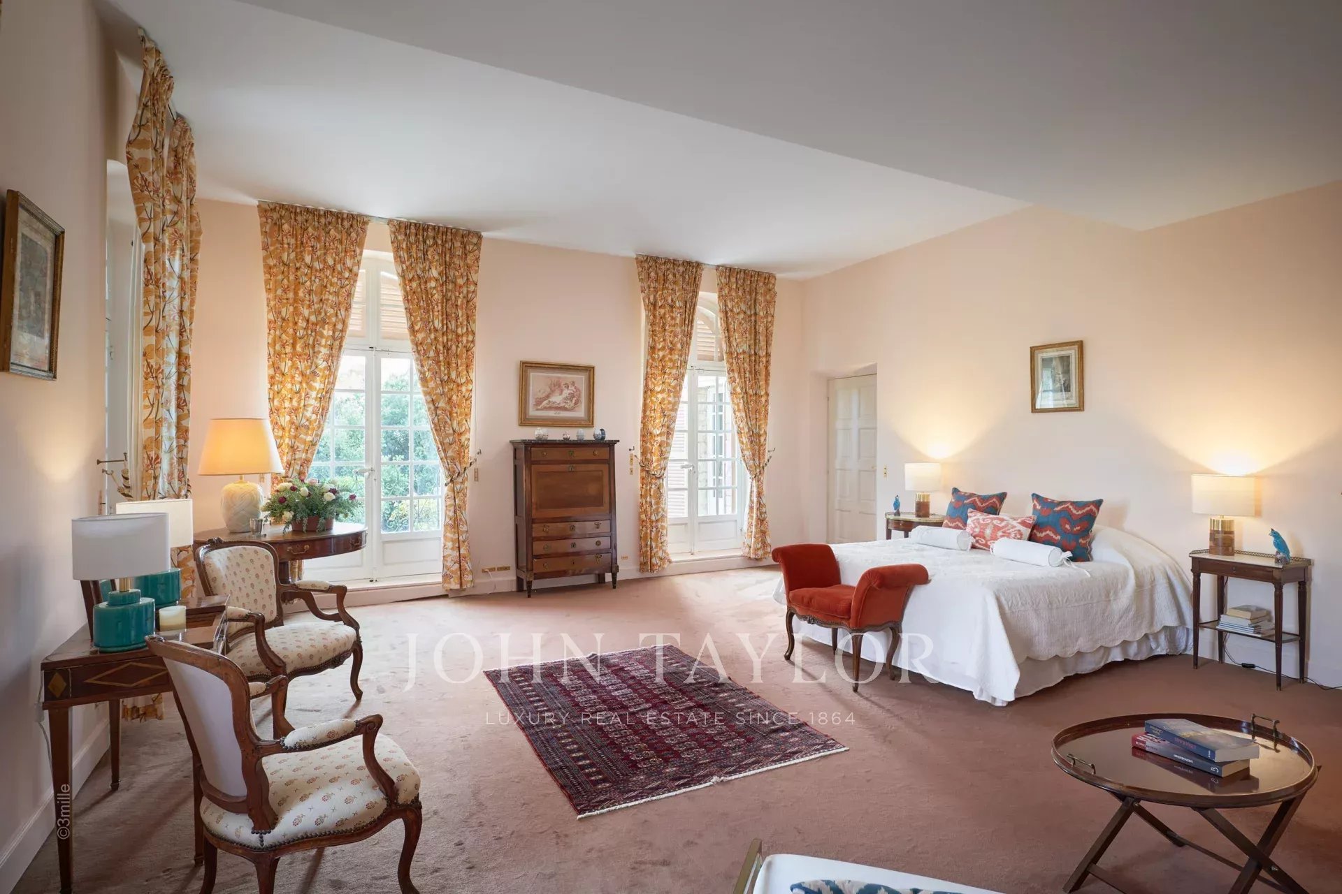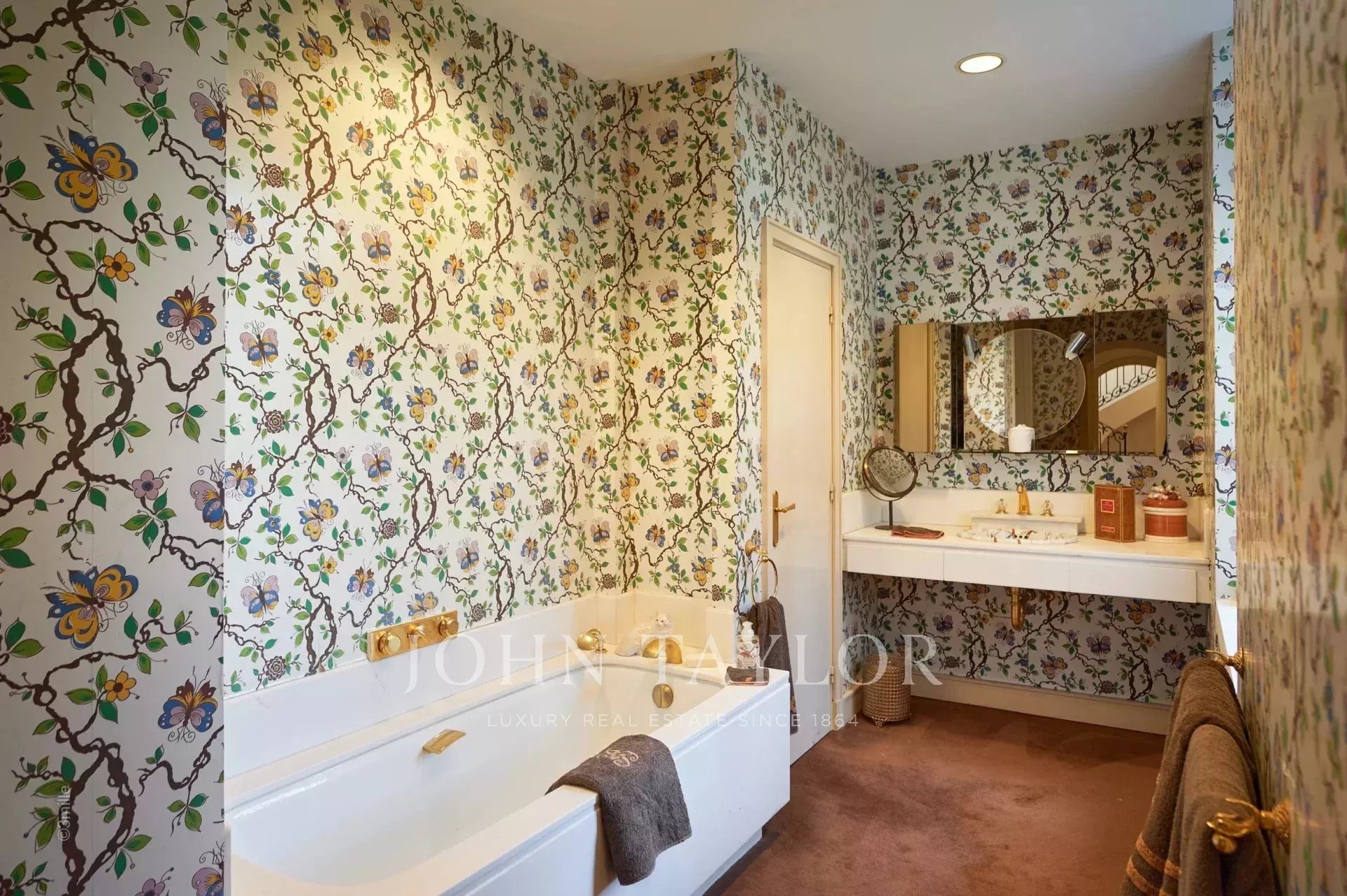 Atop its private hill, with uninterrupted views all the way to the sea, this sumptuous Chateau, built of ashlar in 1920, was the setting for JFK's childhood vacations; JFK's summer vacations as a child, when his father, Joseph Kennedy, served as British Ambassador to London between 1938 and 1940. Ideally situated between the villages of Valbonne and Mougins, 20 minutes from Cannes and its beaches. The property is surrounded by eighteen hectares of parkland.