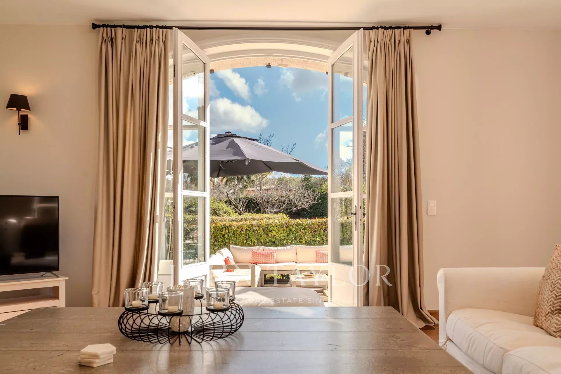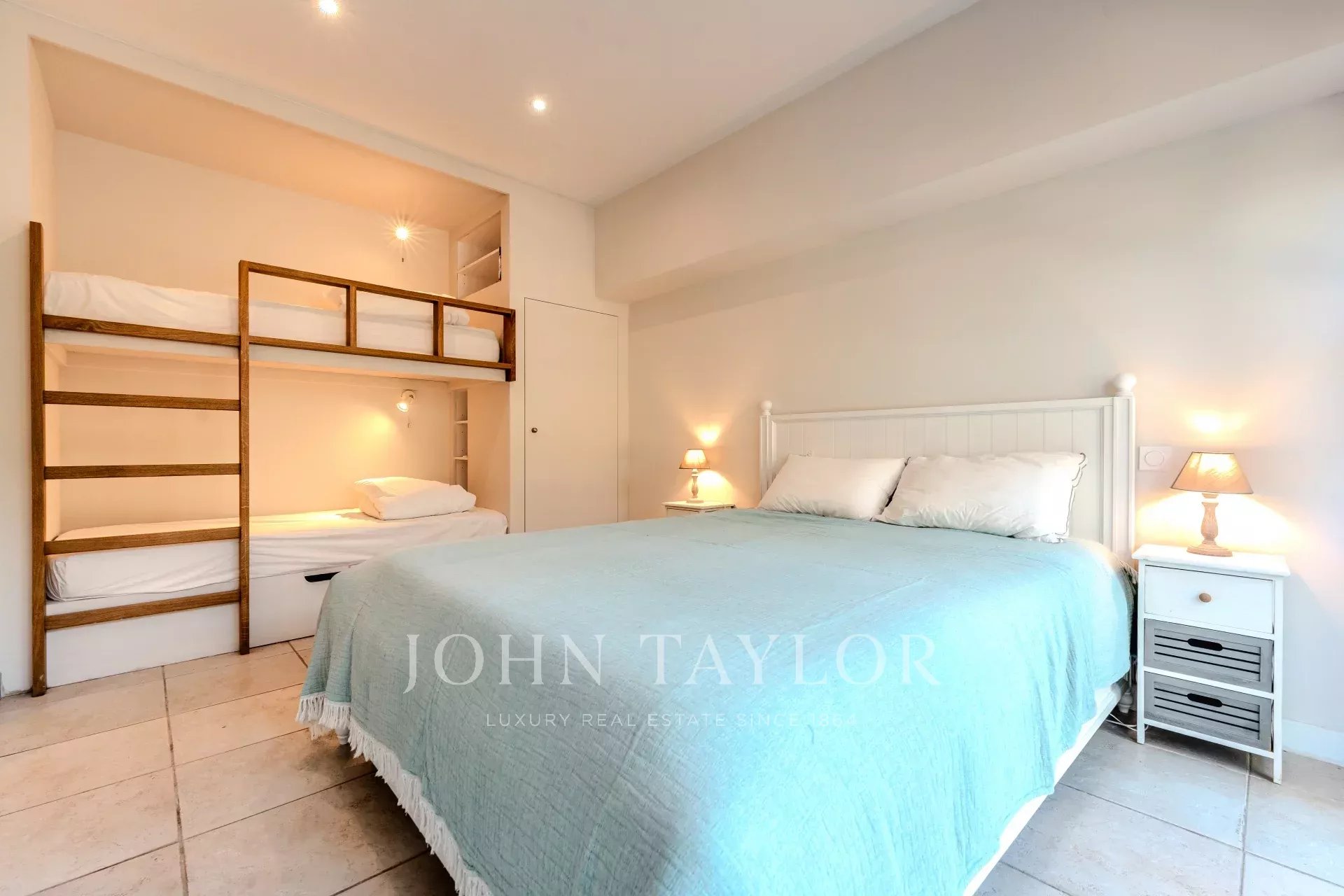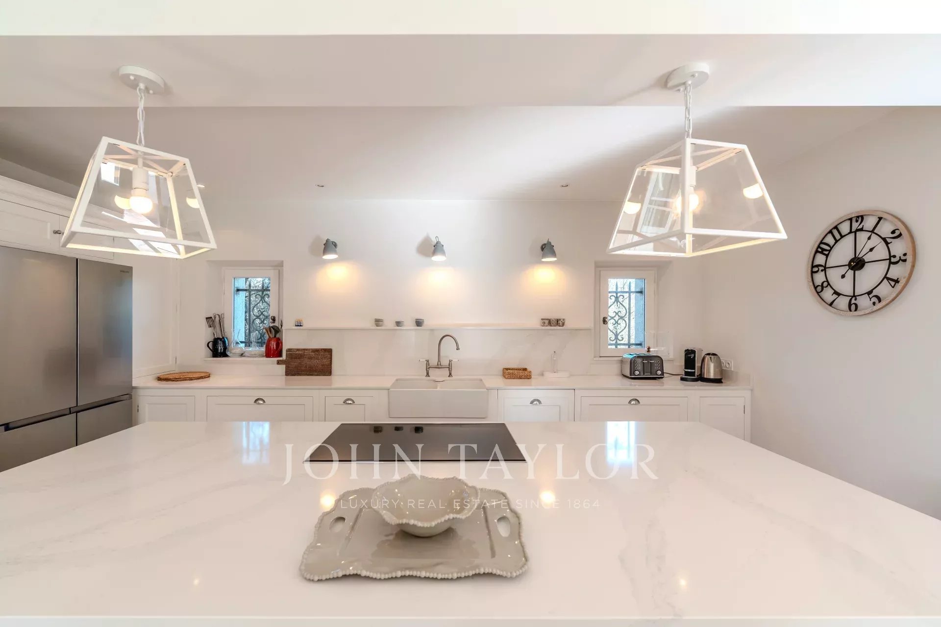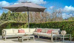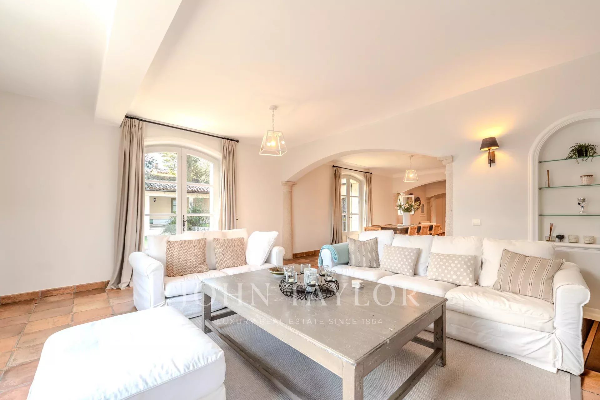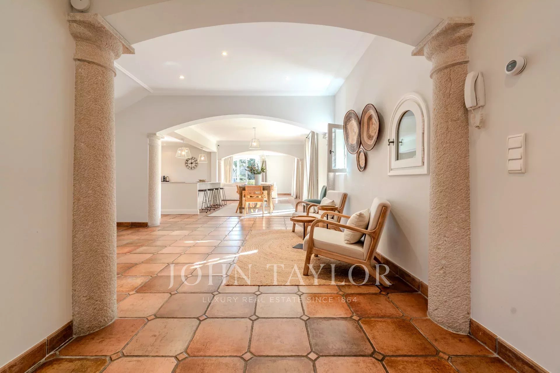 The villa features a magnificent fitted kitchen with a central island and opens onto a spacious living room, creating an ideal setting for family gatherings and entertaining guests.