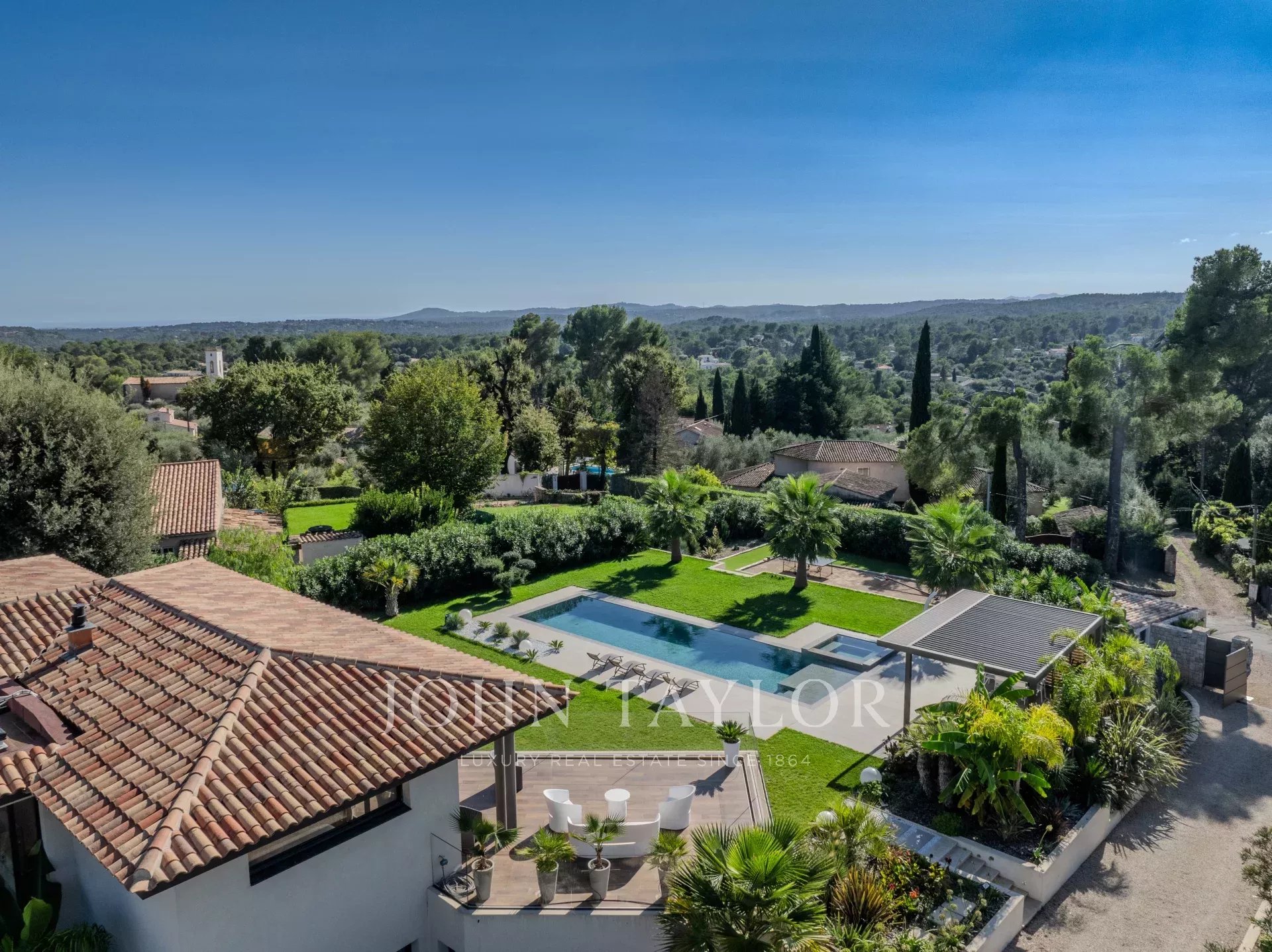 Discover this superb 276 m² family villa in Roquefort-les-Pins, nestled in a peaceful, leafy setting with beautiful, unobstructed views.
